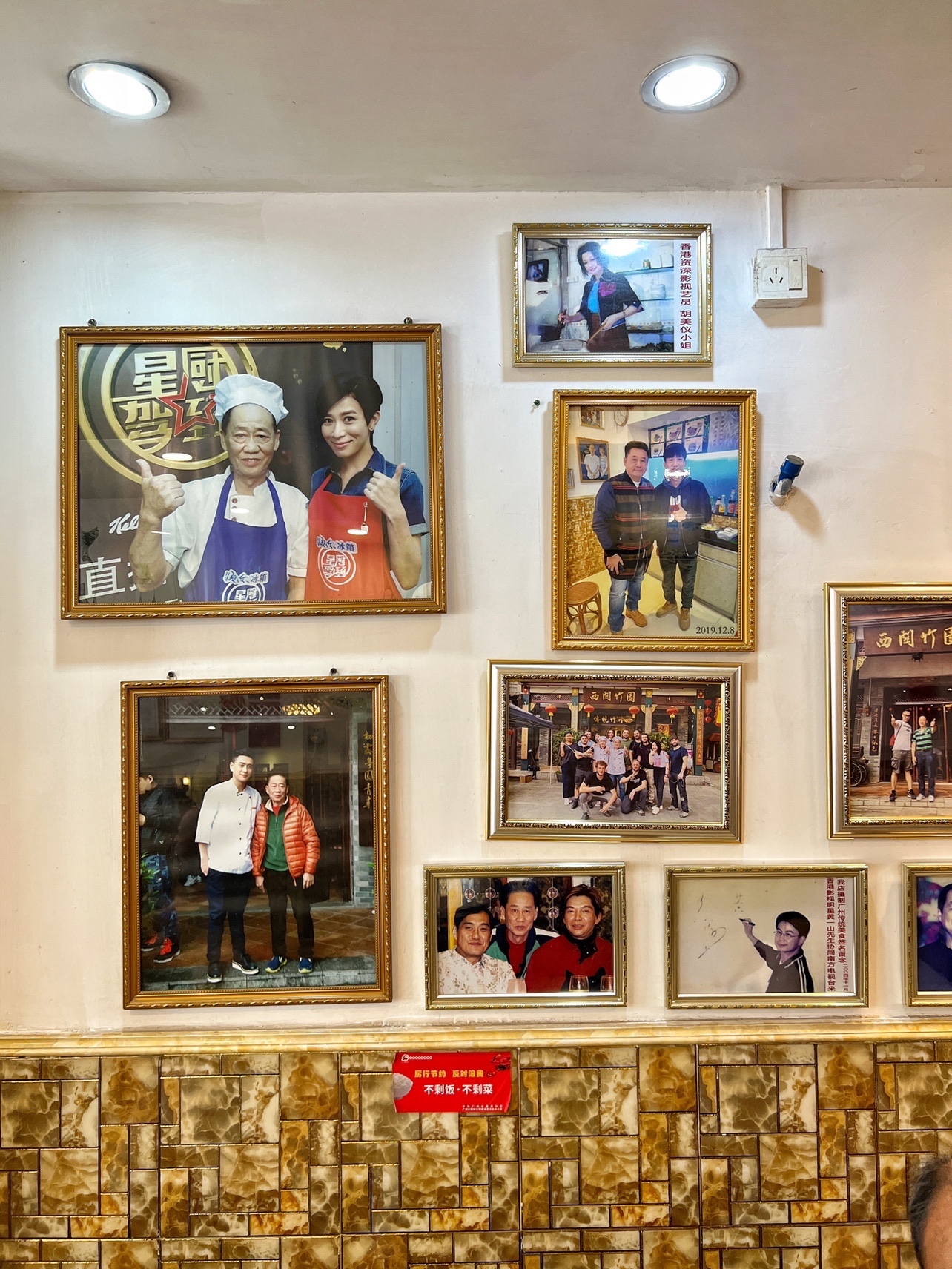 来到都几多老广过来吃,也有专门来打卡的游客,去买永兴烧腊,顺便过来吃面的,听着老广话当年,这家竹升面确实有点历史了[强]墙上也挂满了第三代传人和明星们的合照,听说现在已经是第四代人掌舵了