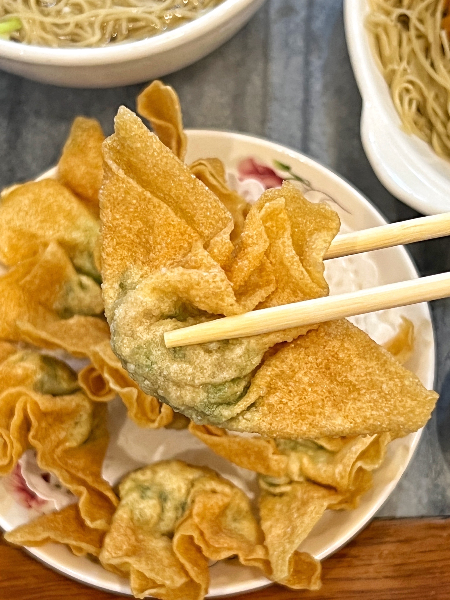 但炸云吞来说,个人会更喜欢吴财记的,会更酥
