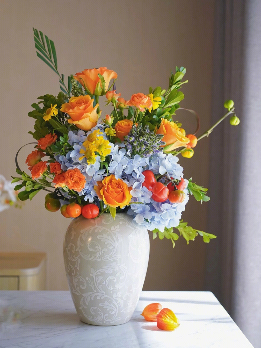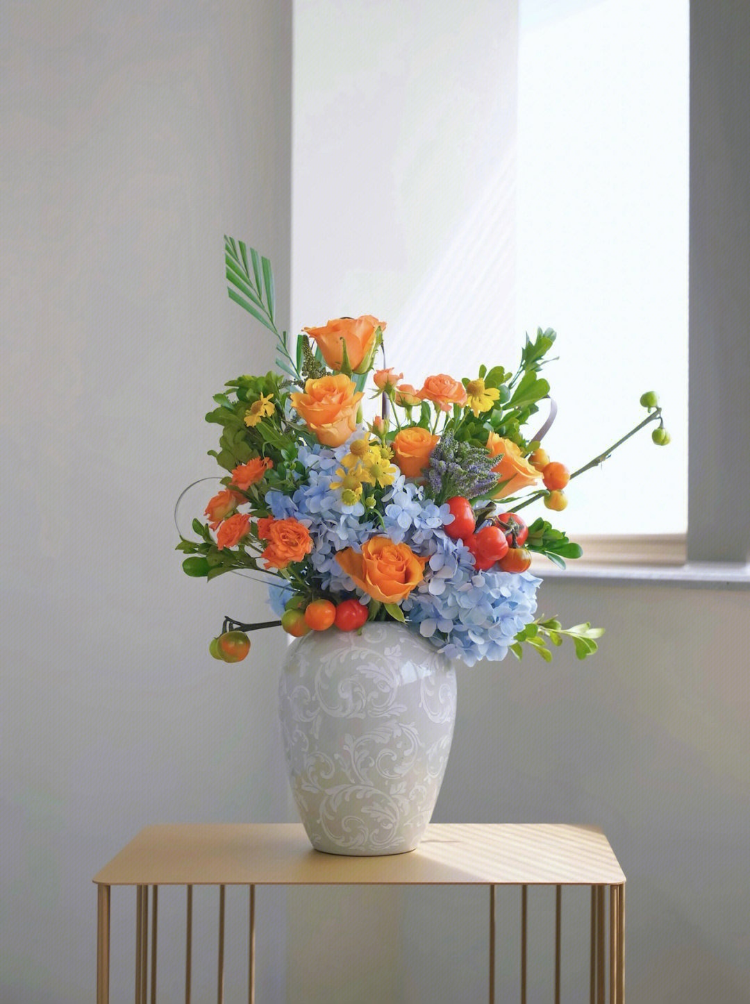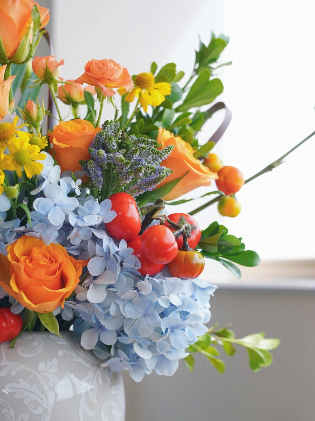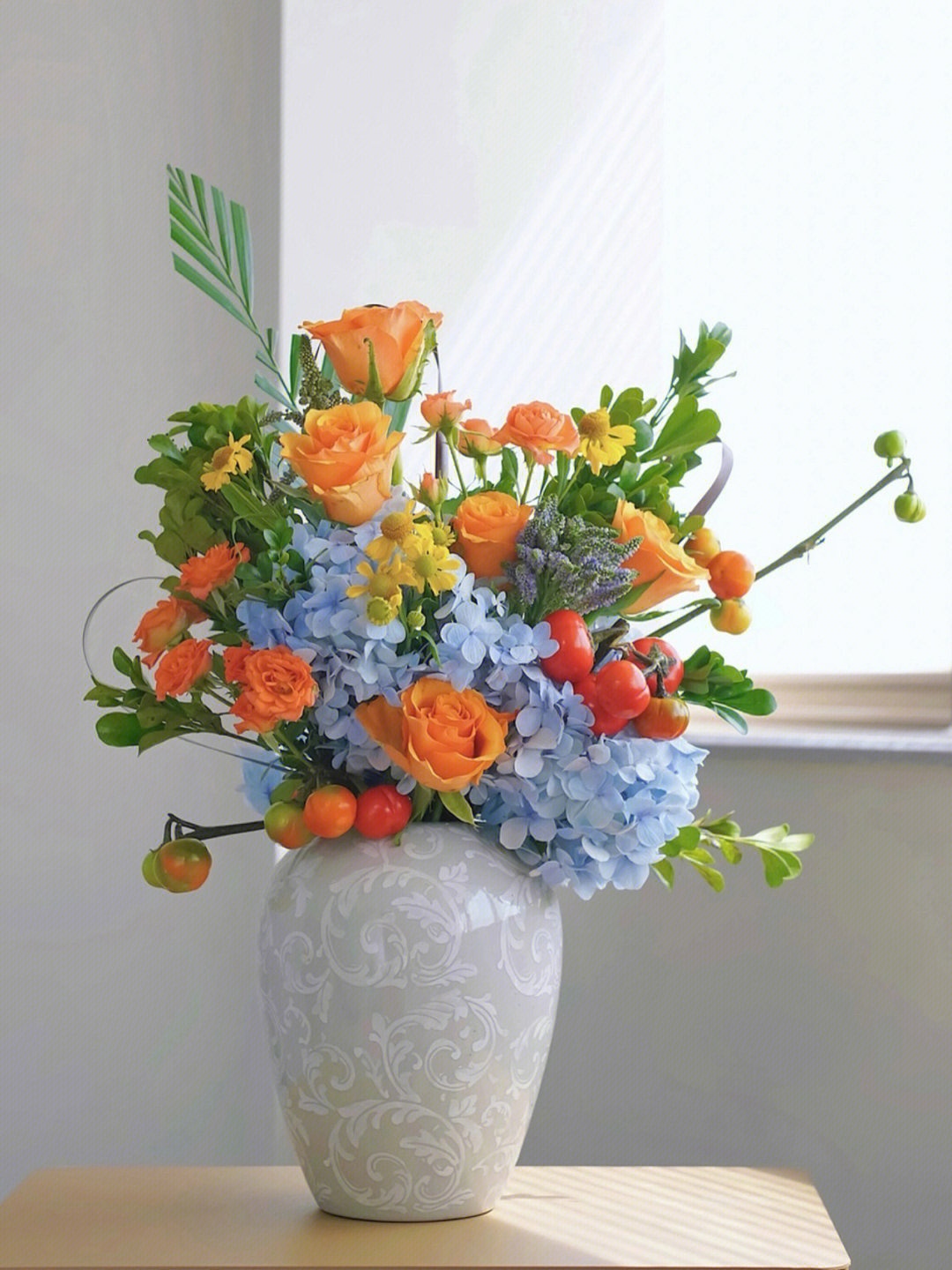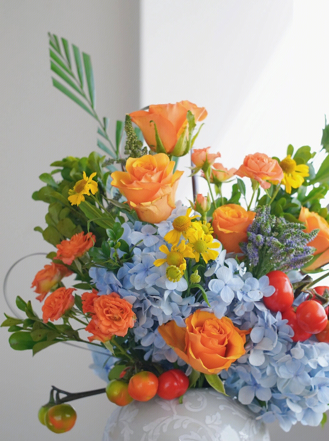 玫瑰、油画小菊、绣球、剑兰