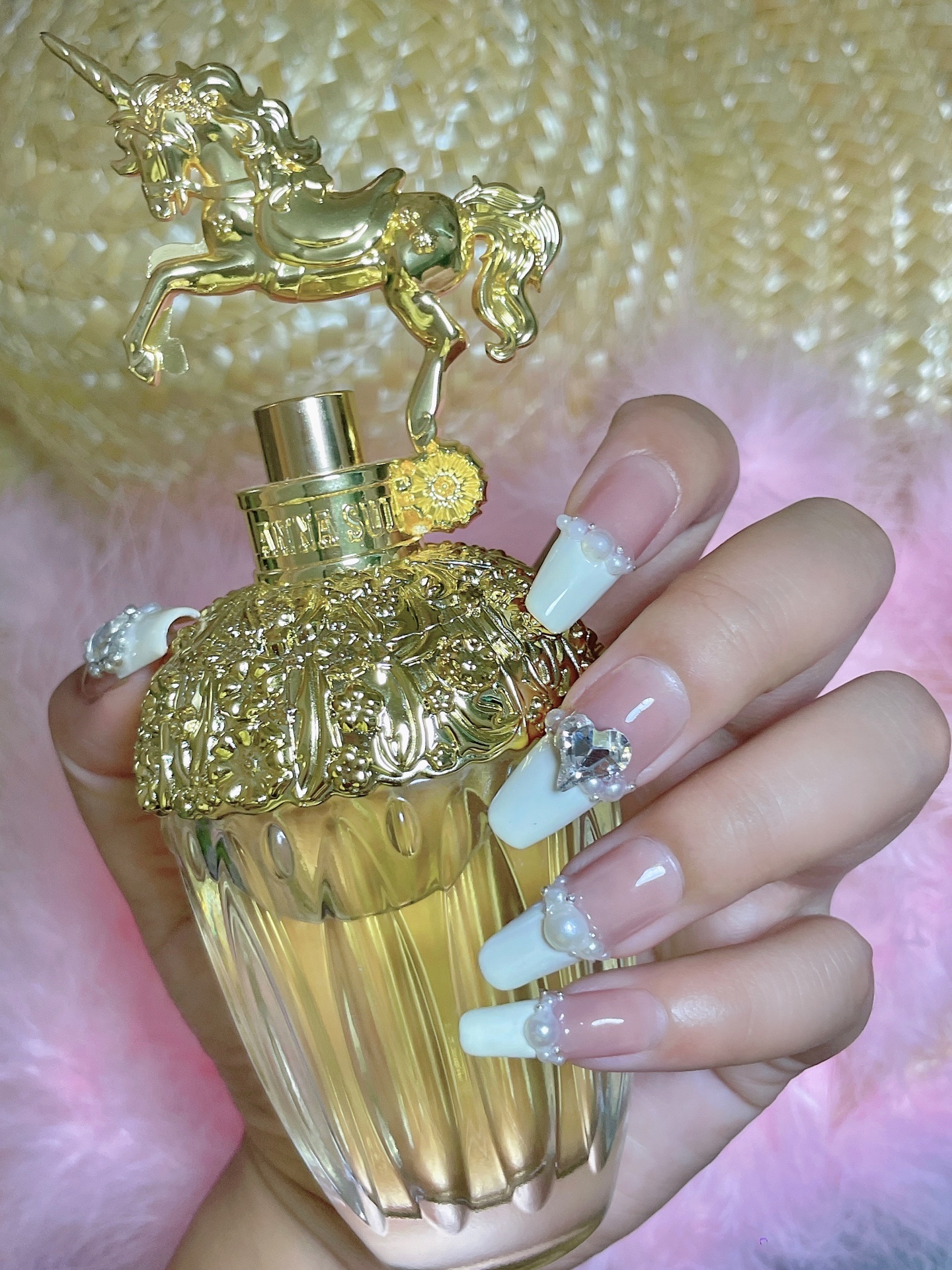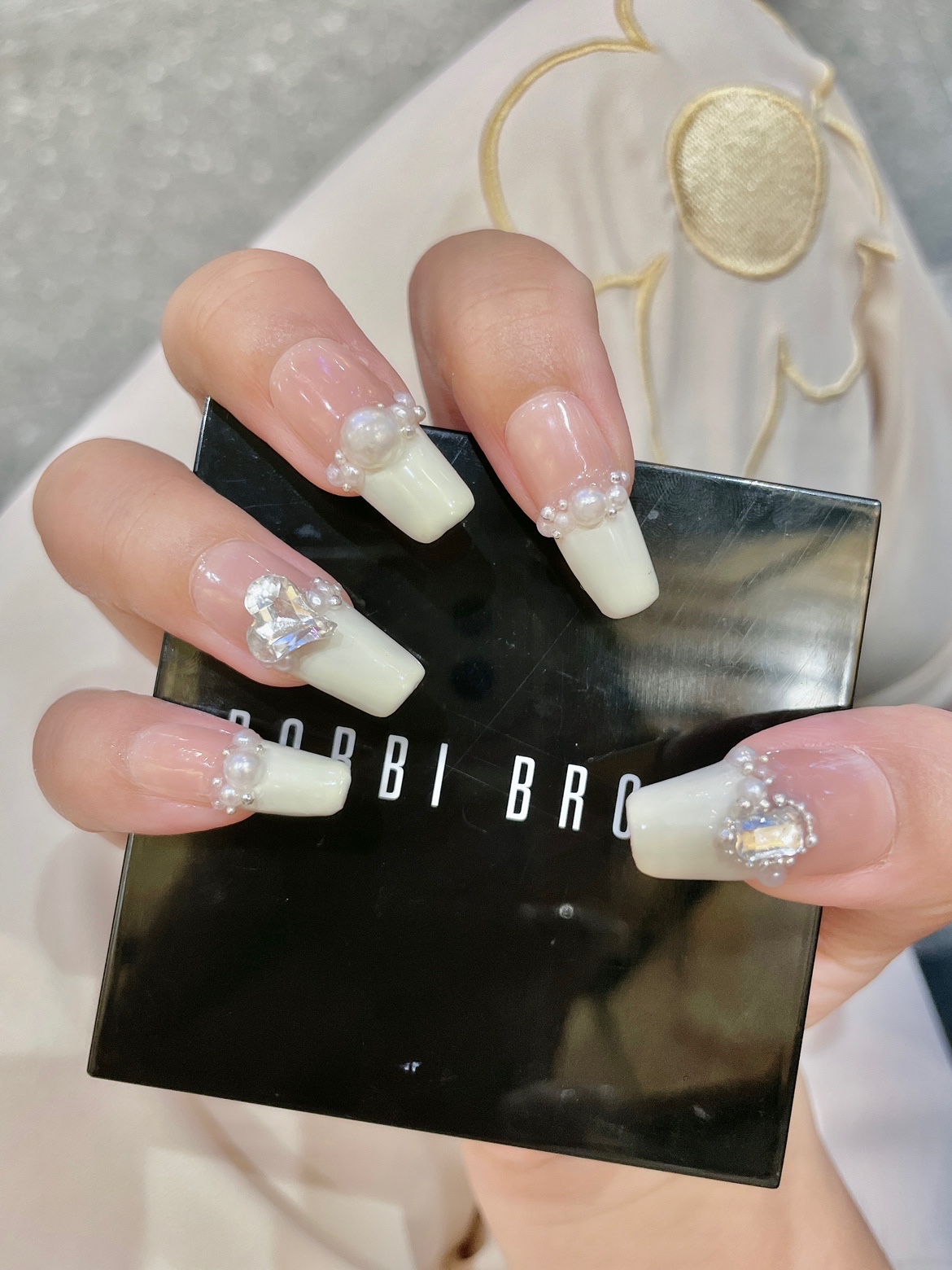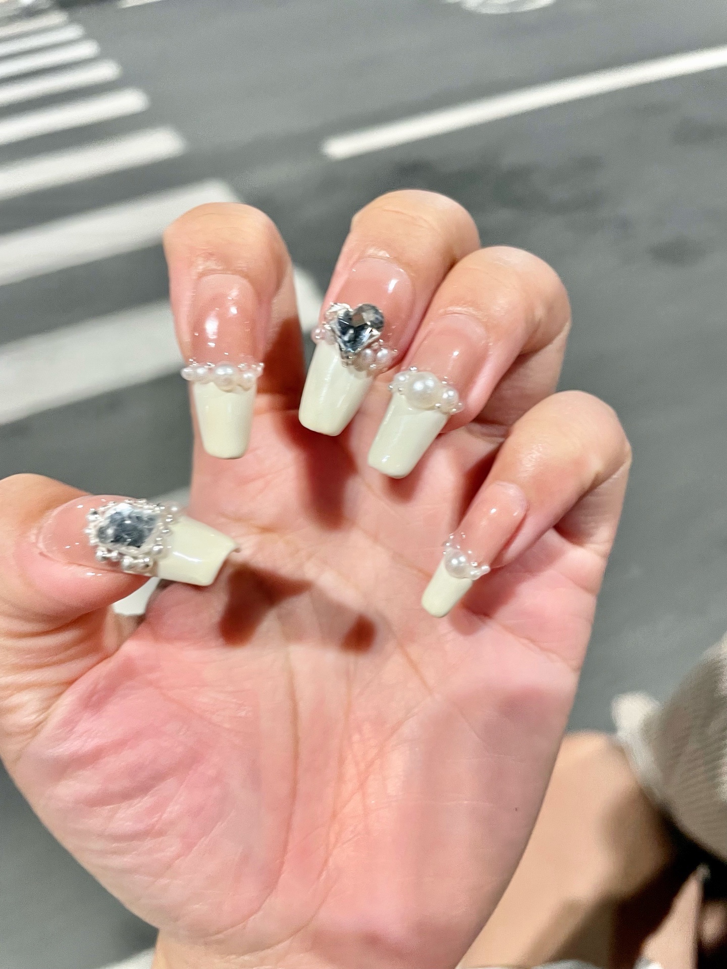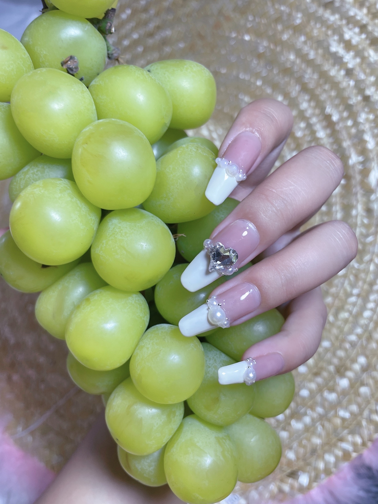 裸色打底➕米白色,贴上珍珠小钻小钢珠