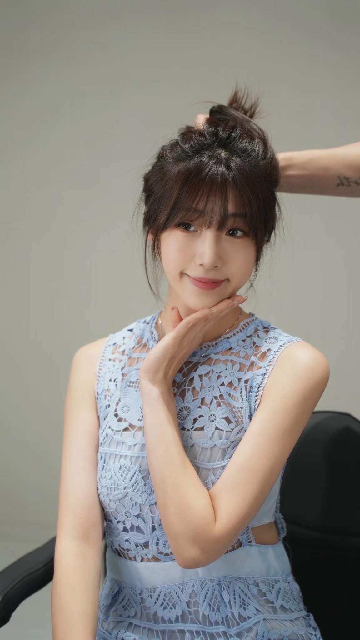 除了刘海本身,还要看整体效果,简单来说就是,扎发后整体的弧度感