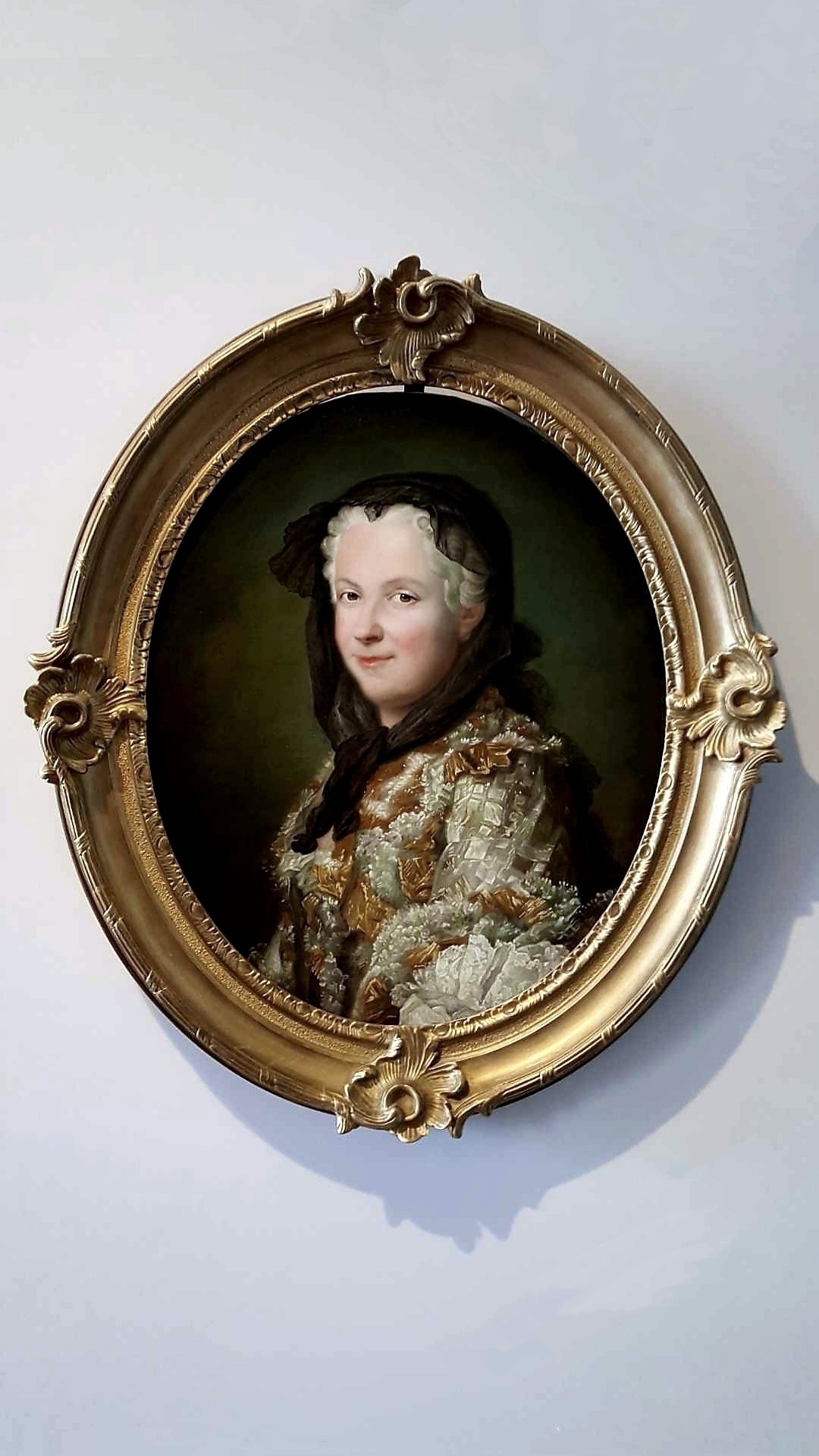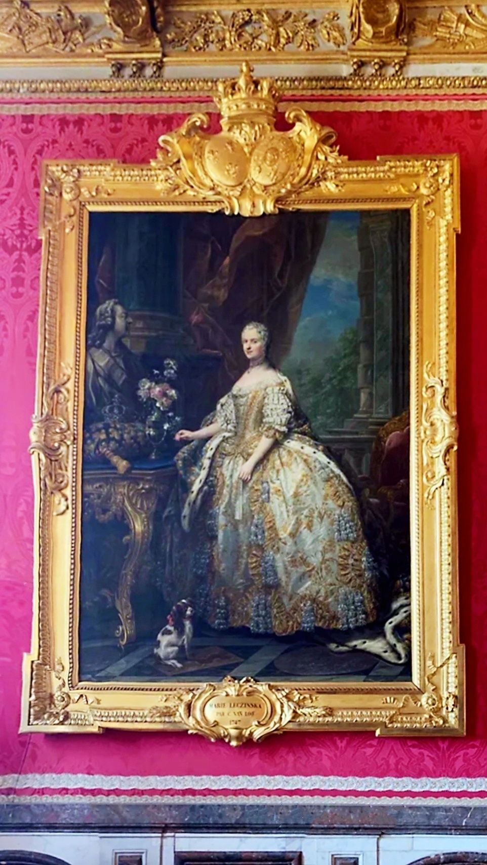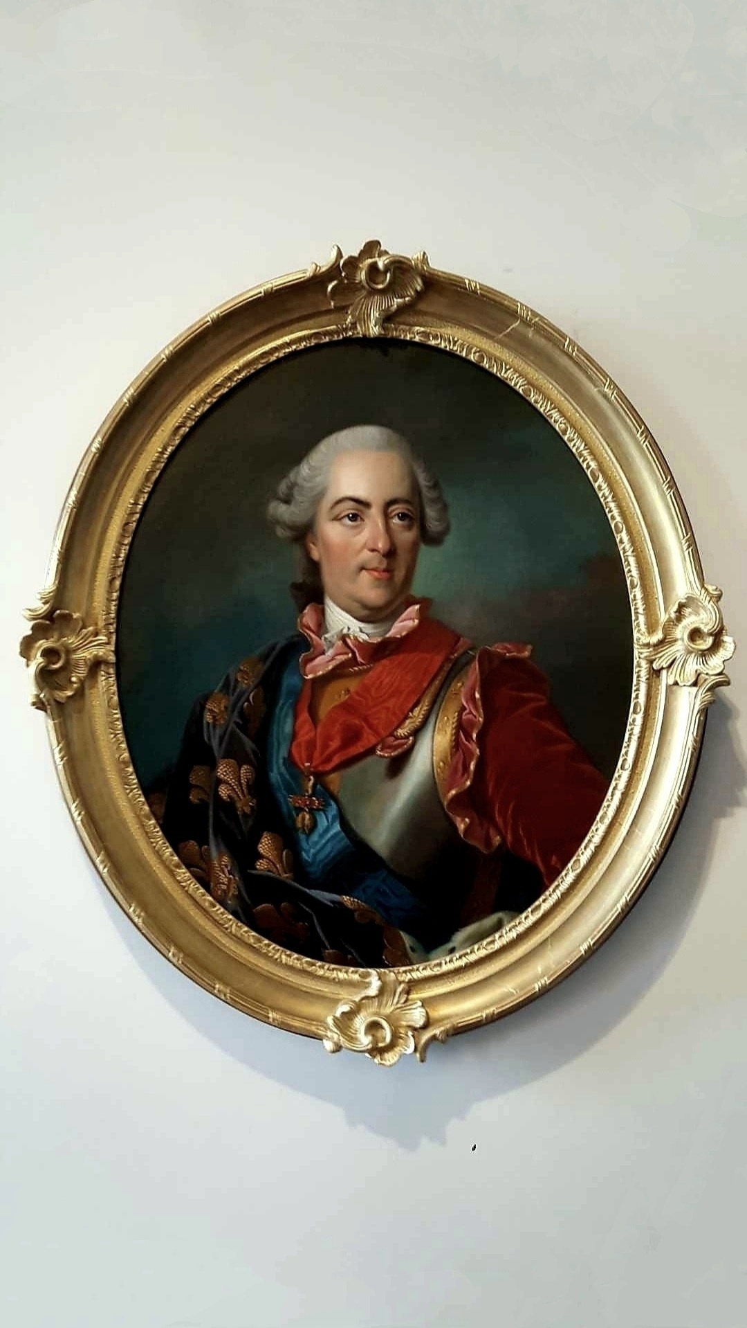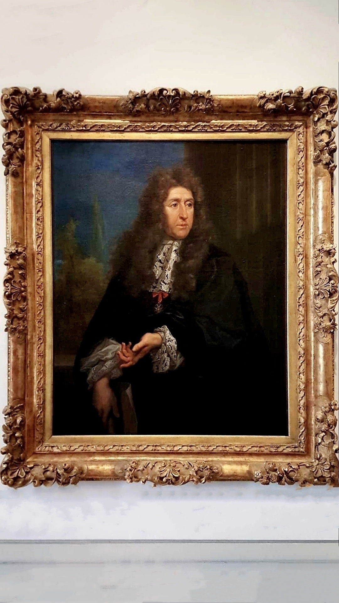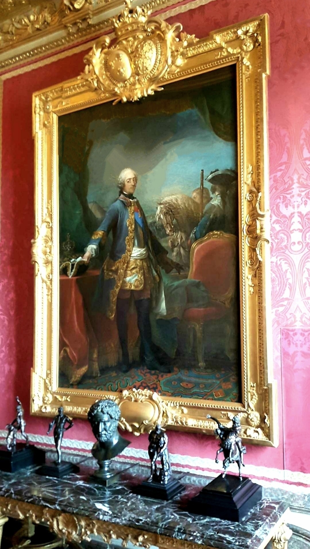 凡尔赛宫十七世纪厅为肖像油画展厅,可能那时没有相机的缘故,路易家族请了很多的著名画家为其作画。看看最后两张图片,虽说是当年画的是1664~1668年凡尔赛宫地全景,我把手机推上去再看,是不是这幅油画就跟航拍出来似的。