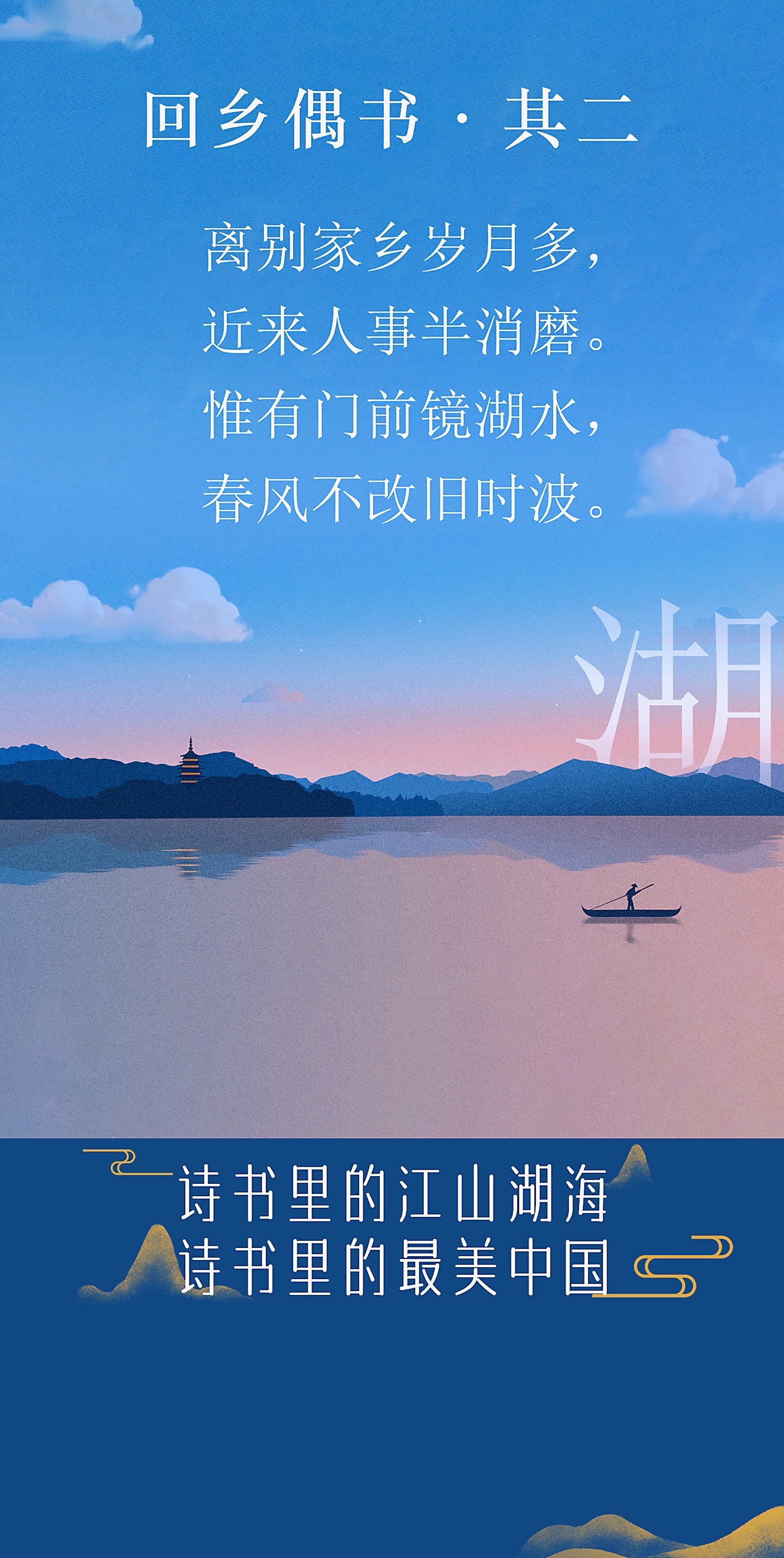 贺老亦高兴亦感伤,写下了传诵千年的《咏柳》《回乡偶书》(二首)等佳作。家乡的湖,也成为每个游子心中最美的湖。