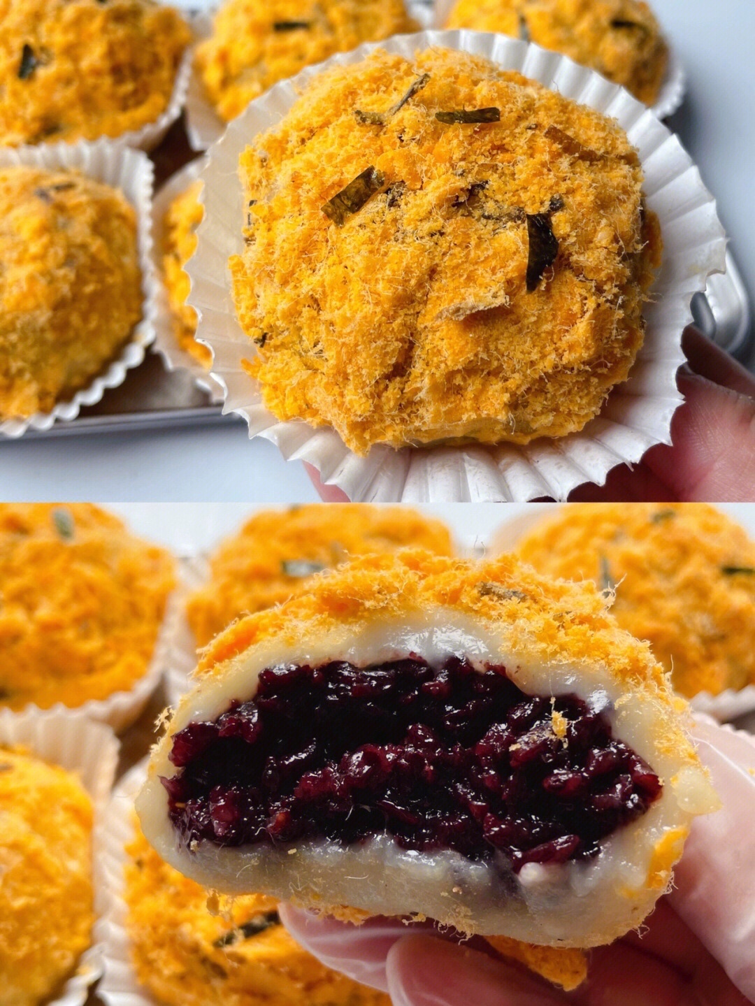 紫米肉松麻薯团,糯叽叽的、做法超简单