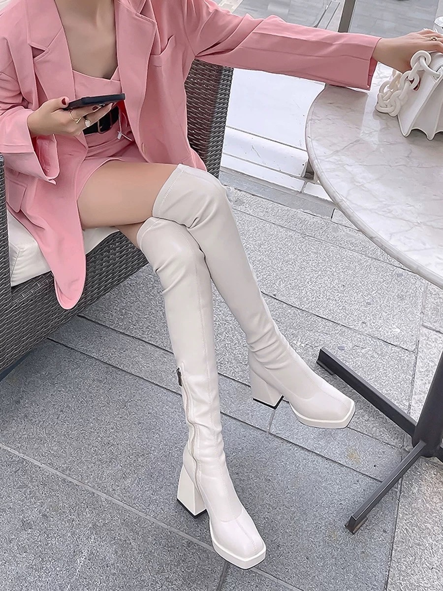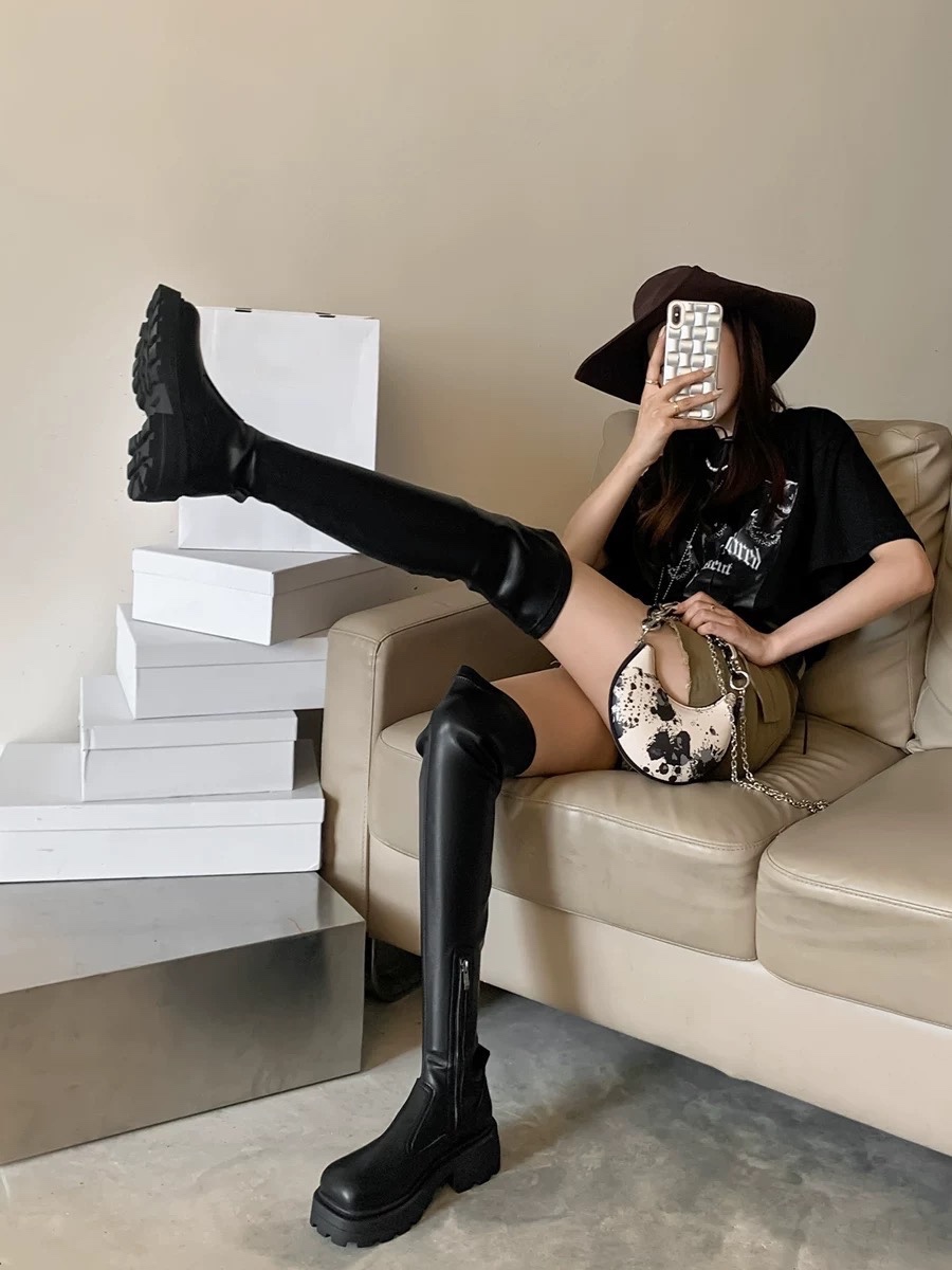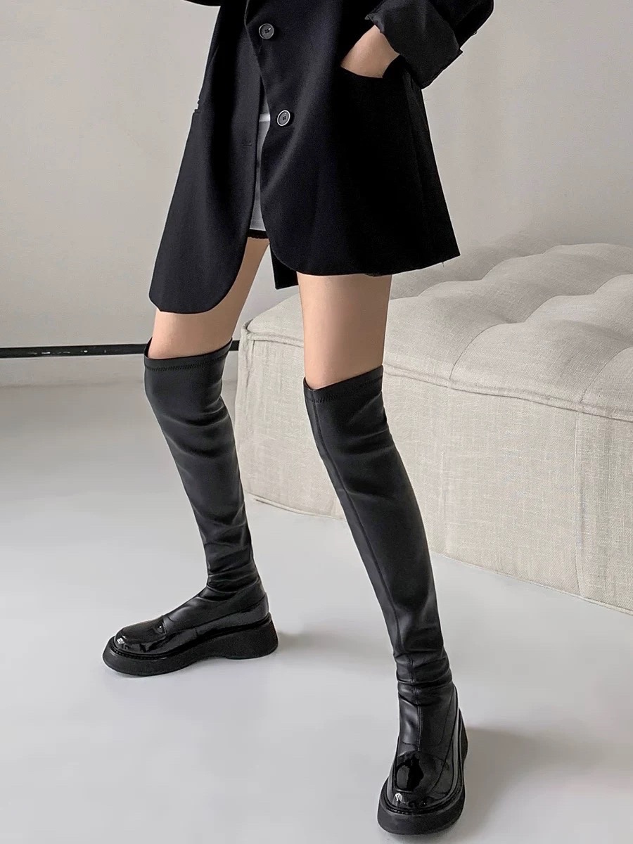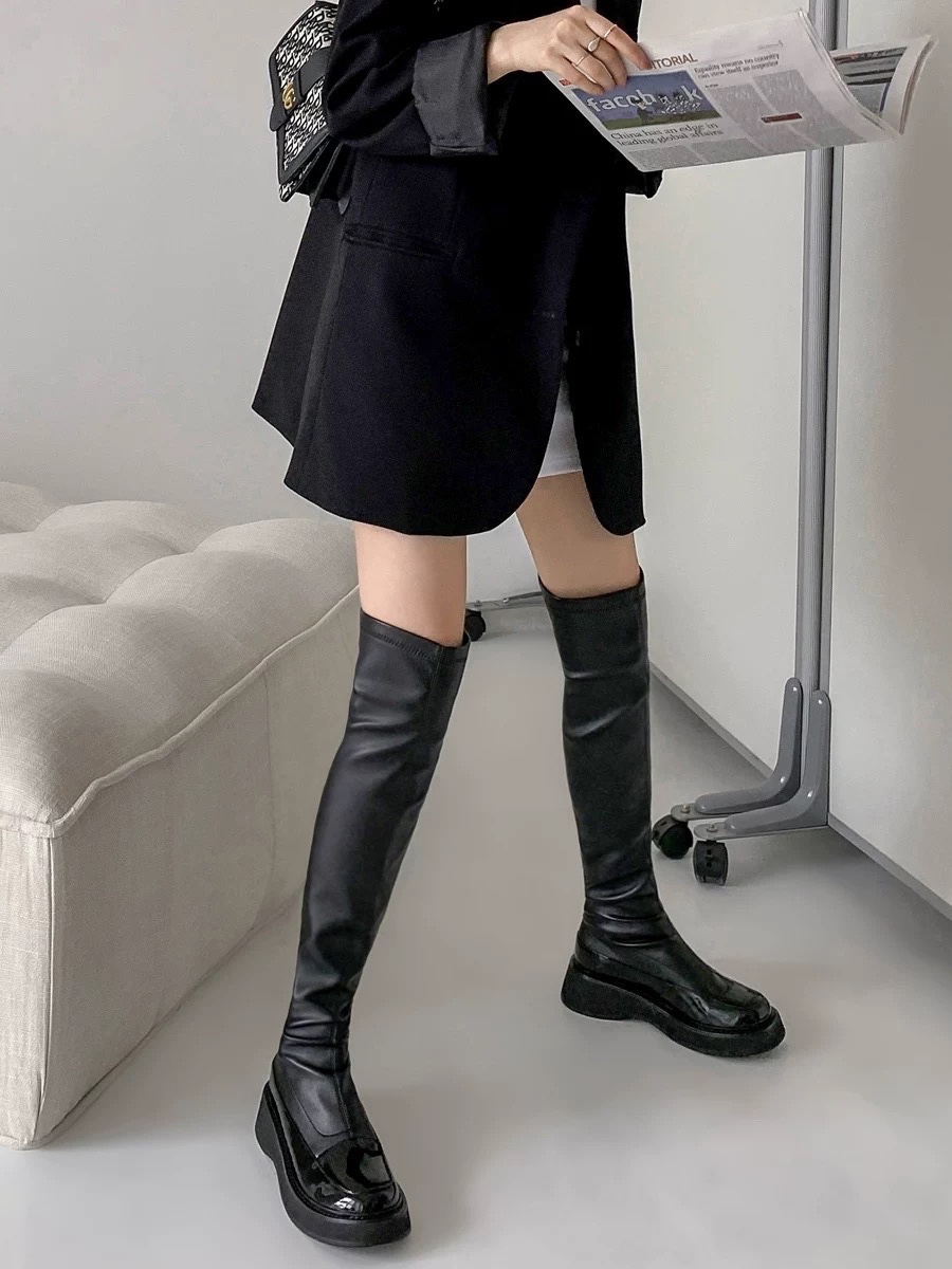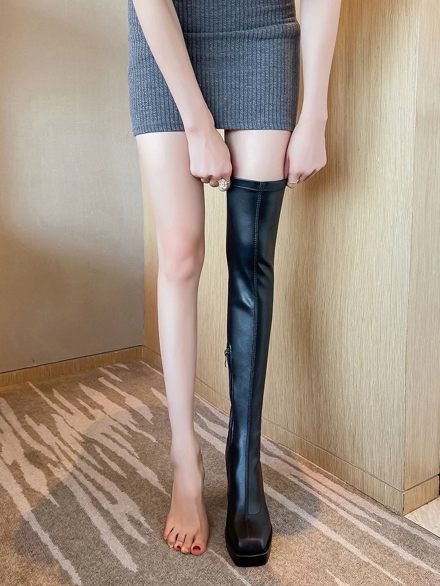 #双宋夫人 网红爆款长靴女2022年新款显瘦厚底过膝长筒靴弹力皮靴子