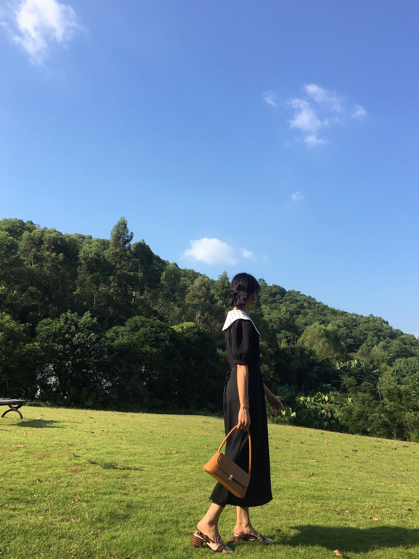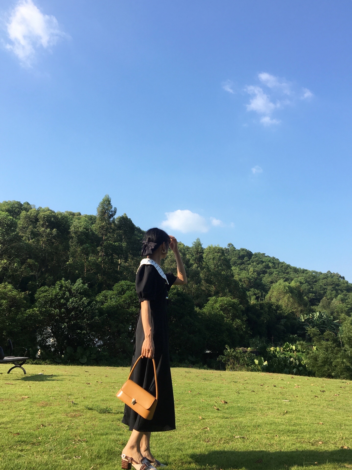 蓝色的天空,墨绿的森林,黄绿的草地,