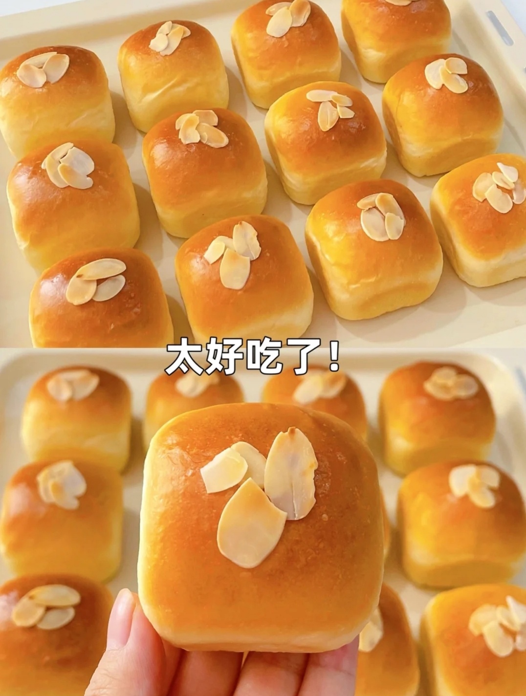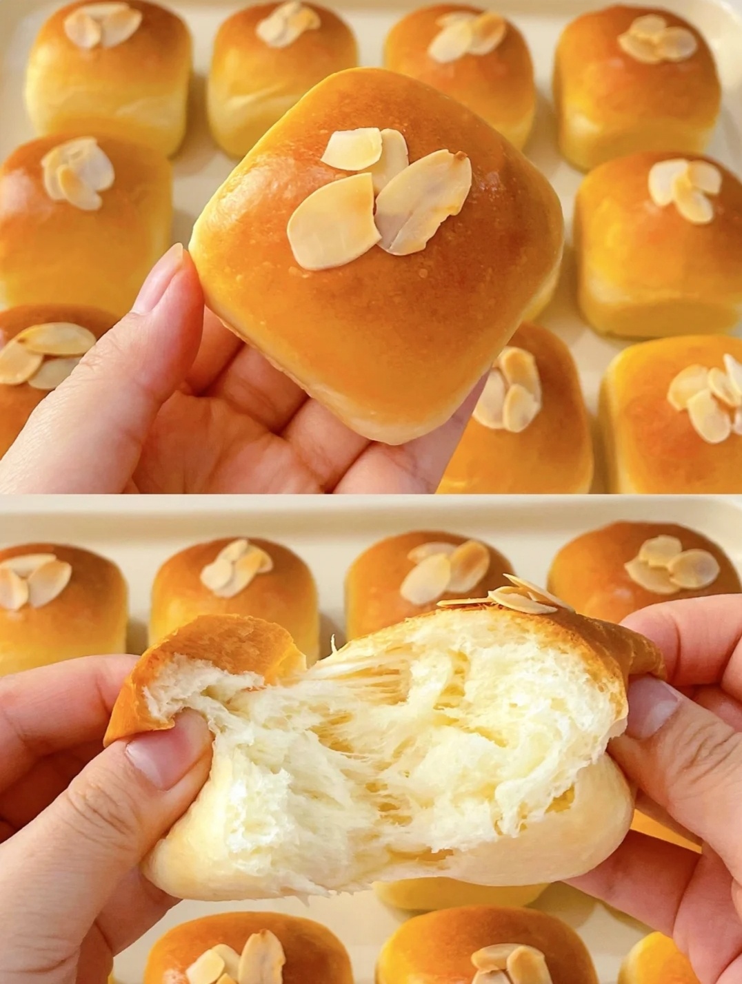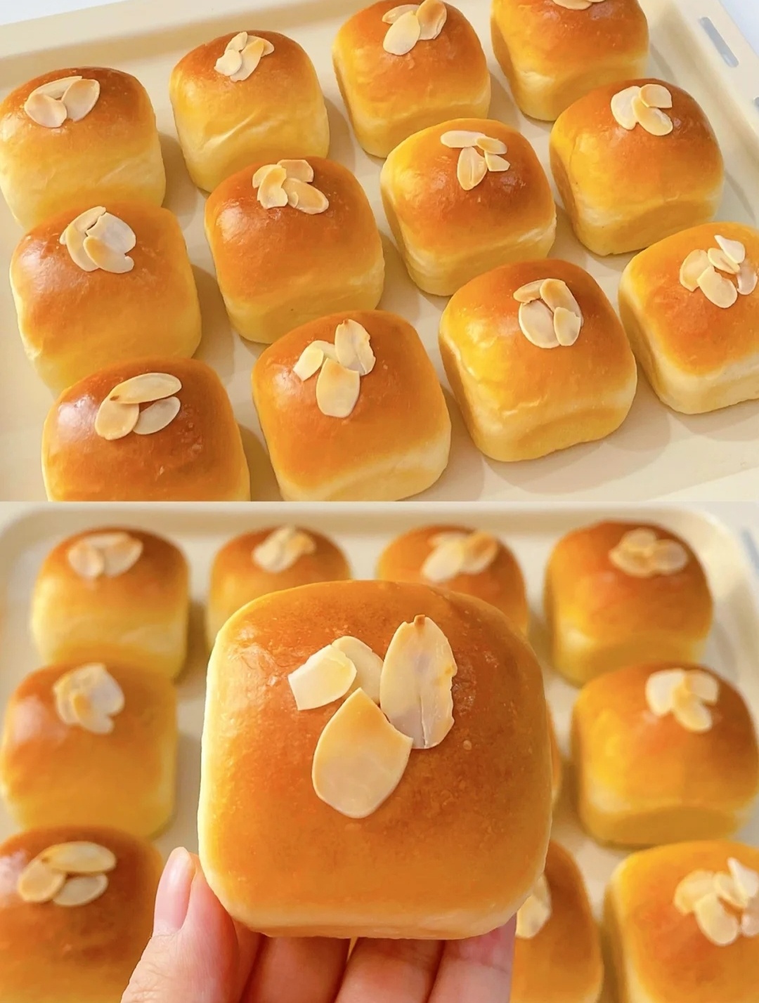 材料:高筋面粉260克,牛奶120克,鸡蛋1个,耐高糖酵母3克,糖35克,盐2克,黄油30克,杏仁适量