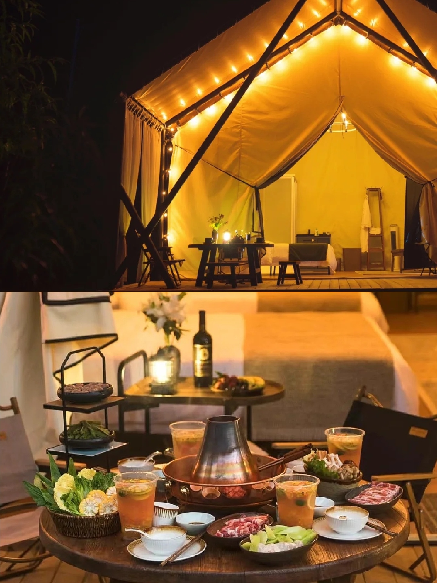 逃离城市,隐入山湖🏞️,营地采用一价全包式服务,露营细节放心交给管家,有问题随时呼叫必回应💯,还会有一些不定时的活动,如电音露营派对、周末Chill自然野醺🥳🥳;30多顶不同风格且设备齐全的帐篷:日系春帐、金字塔帐篷及亲子蒙古包帐篷等,想要一个悠静而放松的露营炒鸡推荐这里,呼吸新鲜空气、放空思绪和烦恼☺️☺️