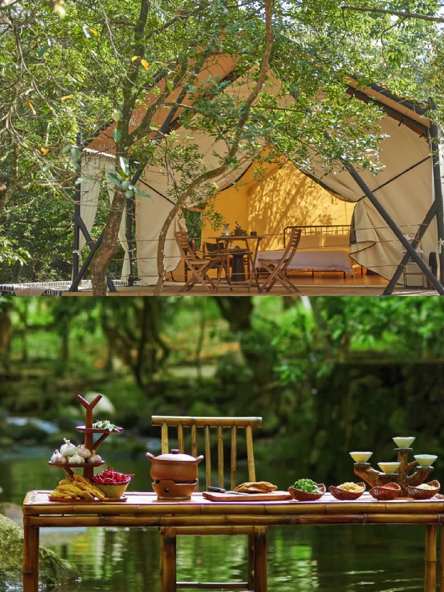 位于罗浮山脚下的露营地🏞️,清晨与傍晚的山雾弥漫,仿佛置身于仙境之中,35/45㎡超大面积帐篷🉑、配备独立空调和卫生间,适合家庭聚会和朋友出游;在大片草坪上放风筝、踢足球⚽、扔飞盘、带上心爱的小宠物🐩🐱在草地上自由奔腾~ 山中小溪打水仗,溪边下午茶🍵🍰,get山中惬意度假大片~