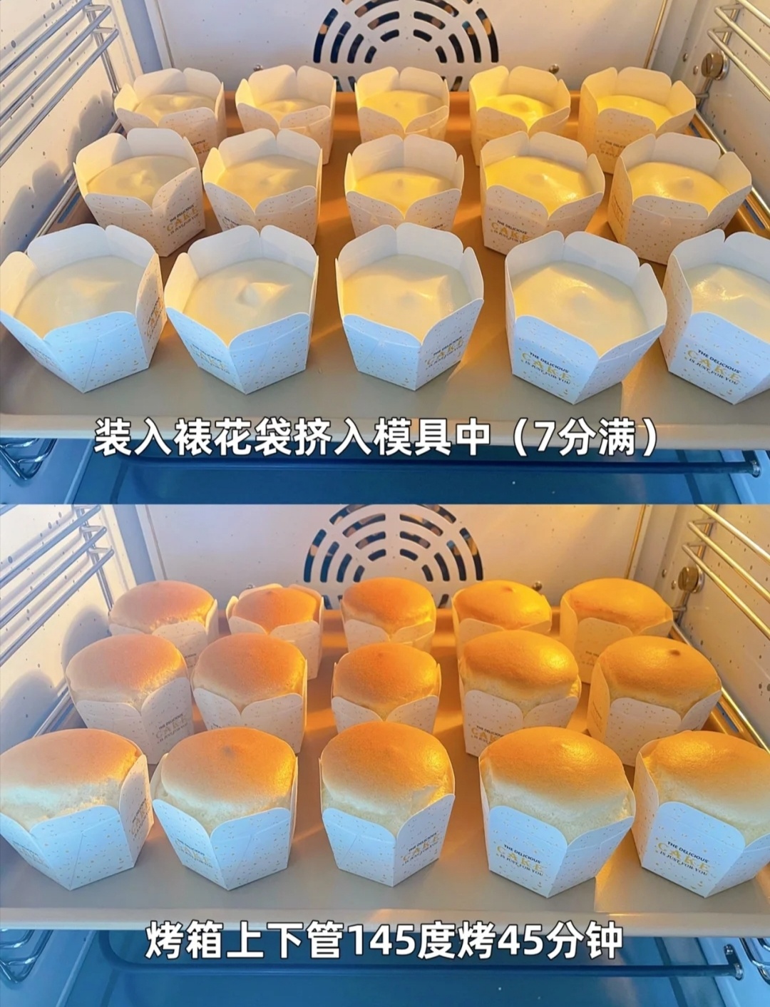 4⃣倒入模具中,烤箱上下管145度烤45分钟