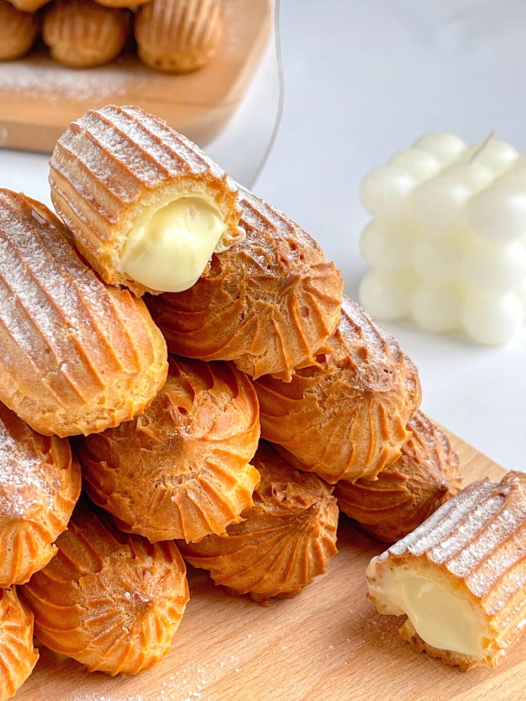 香草卡仕达酱手指泡芙,高颜值甜品泡芙,上桌5分钟就抢光