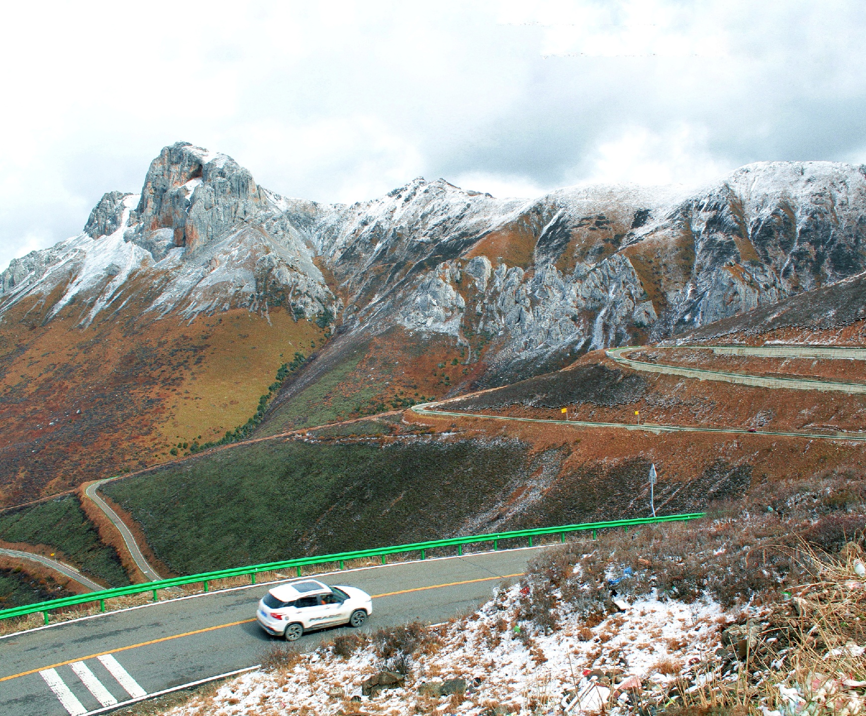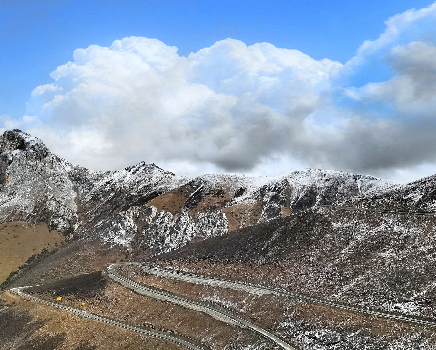 乃龙山,海拨4580米,位于四川甘孜州北部,在藏语是神山的意思。乃龙山高耸入云,光秃秃的山顶寸草不生。四周群山逶迤,山脊平缓,汽车沿着盘山路在山谷中穿行~(1)