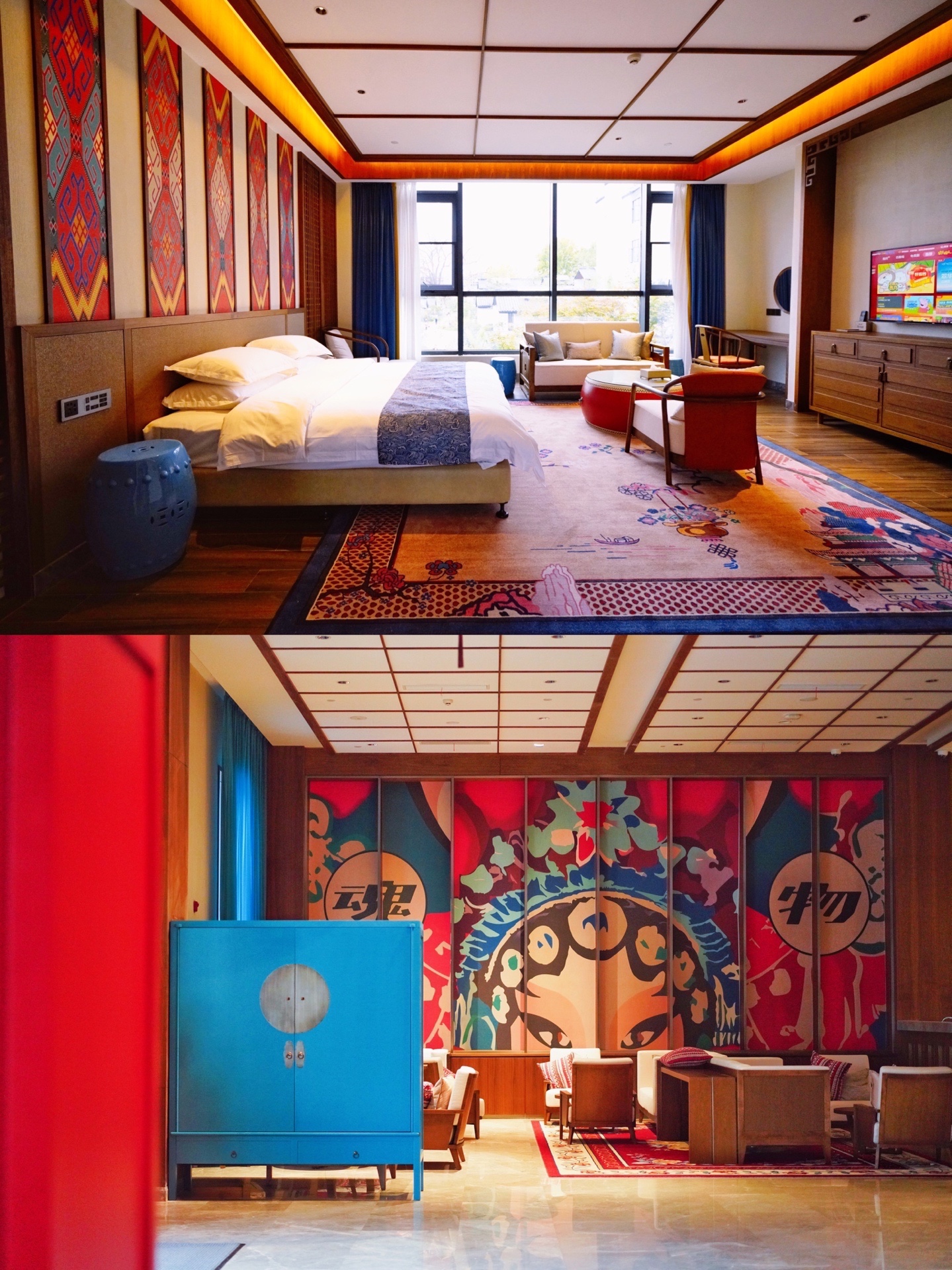 我们住在以徽剧、徽腔、徽艺为主题的无梦精品酒店,观景套房面积超大,带客厅、小厨房餐厅,在房间就能看到湖水、抱玉塔。