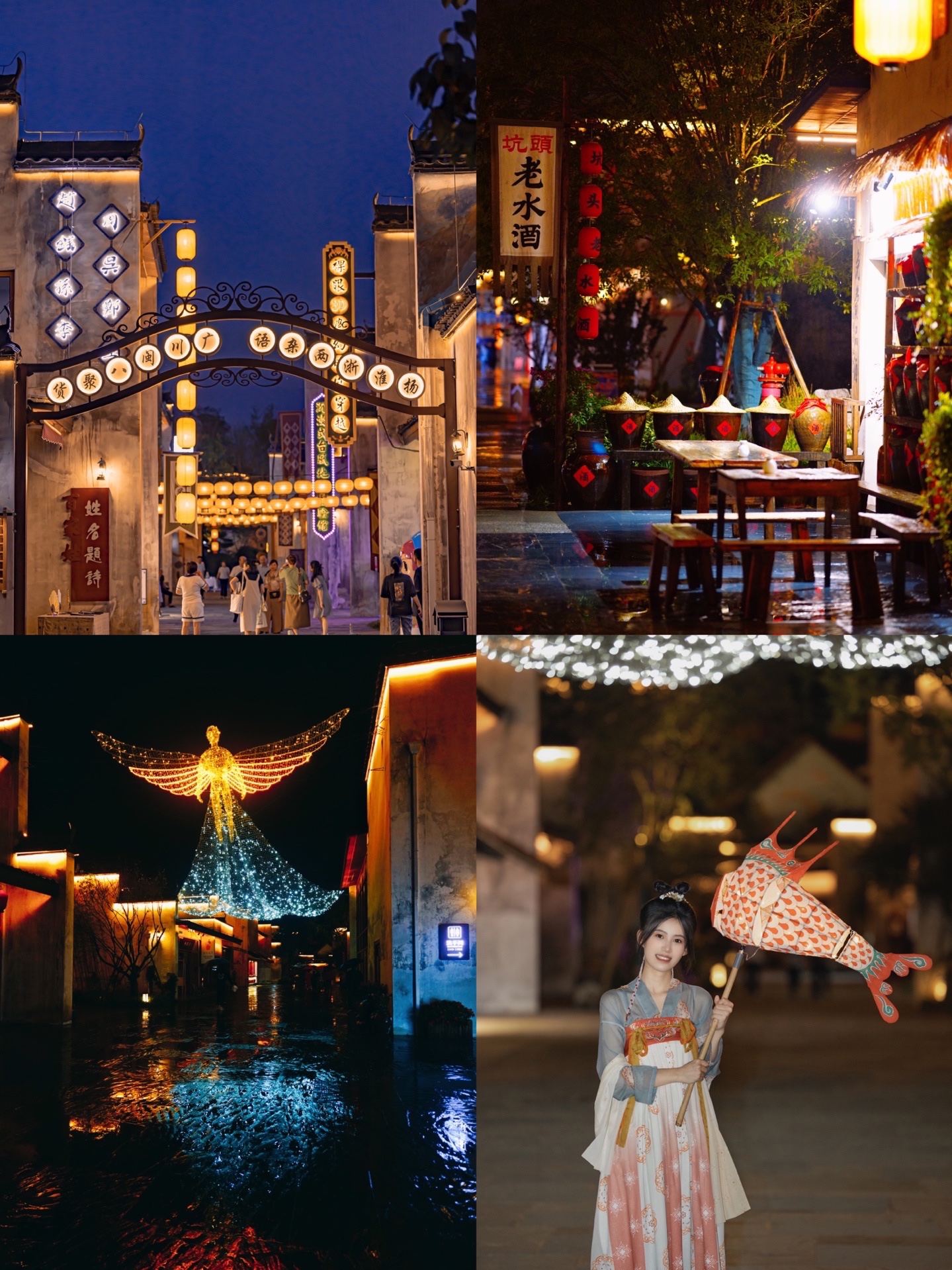⛺除此之外17点后傩舞广场看鱼灯巡游和祭赛神,音乐广场露营、21点抱玉塔有十分钟的灯光秀《天工开婺》,五显堂还有《五显金光》。
