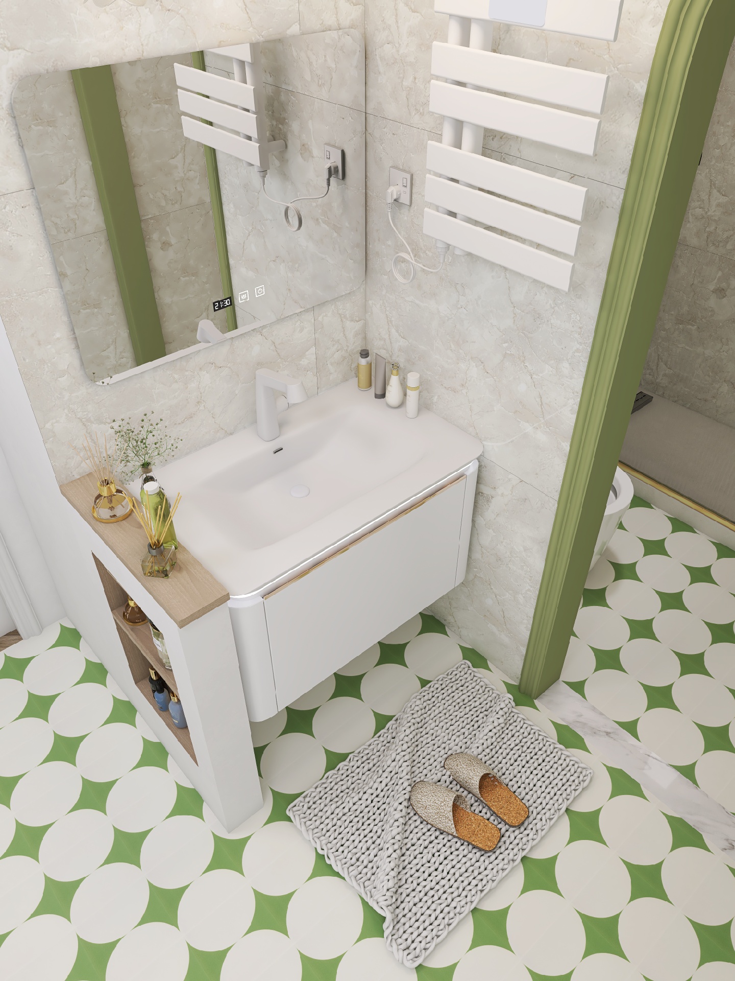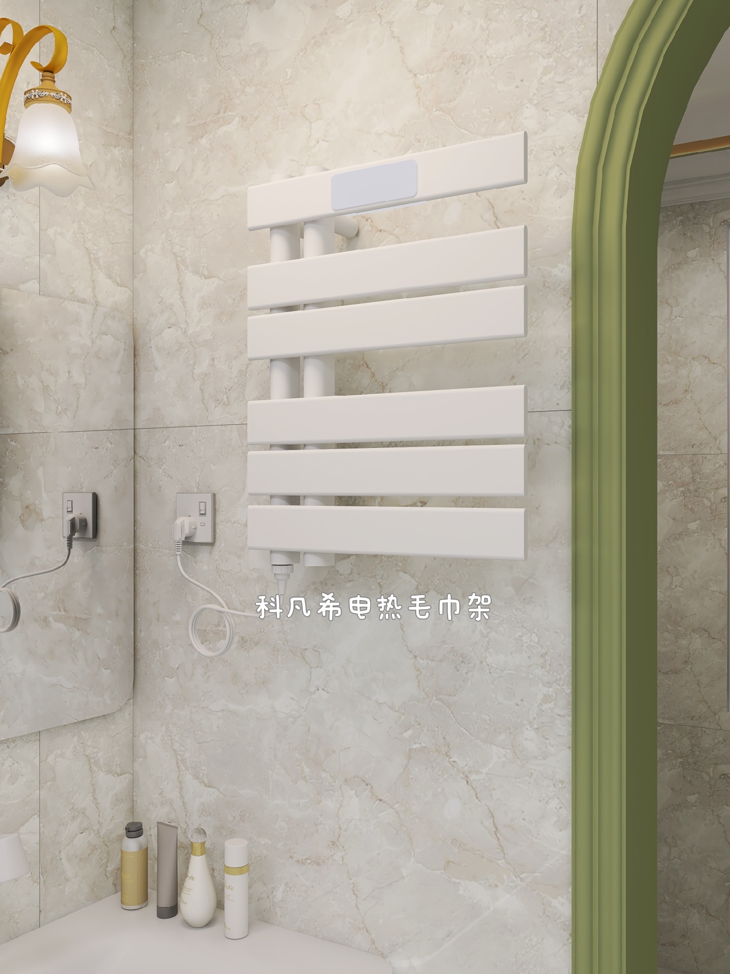 💚 浴室柜旁边安置一个电热毛巾架,平时毛巾可以挂在上面杀jun消毒~
