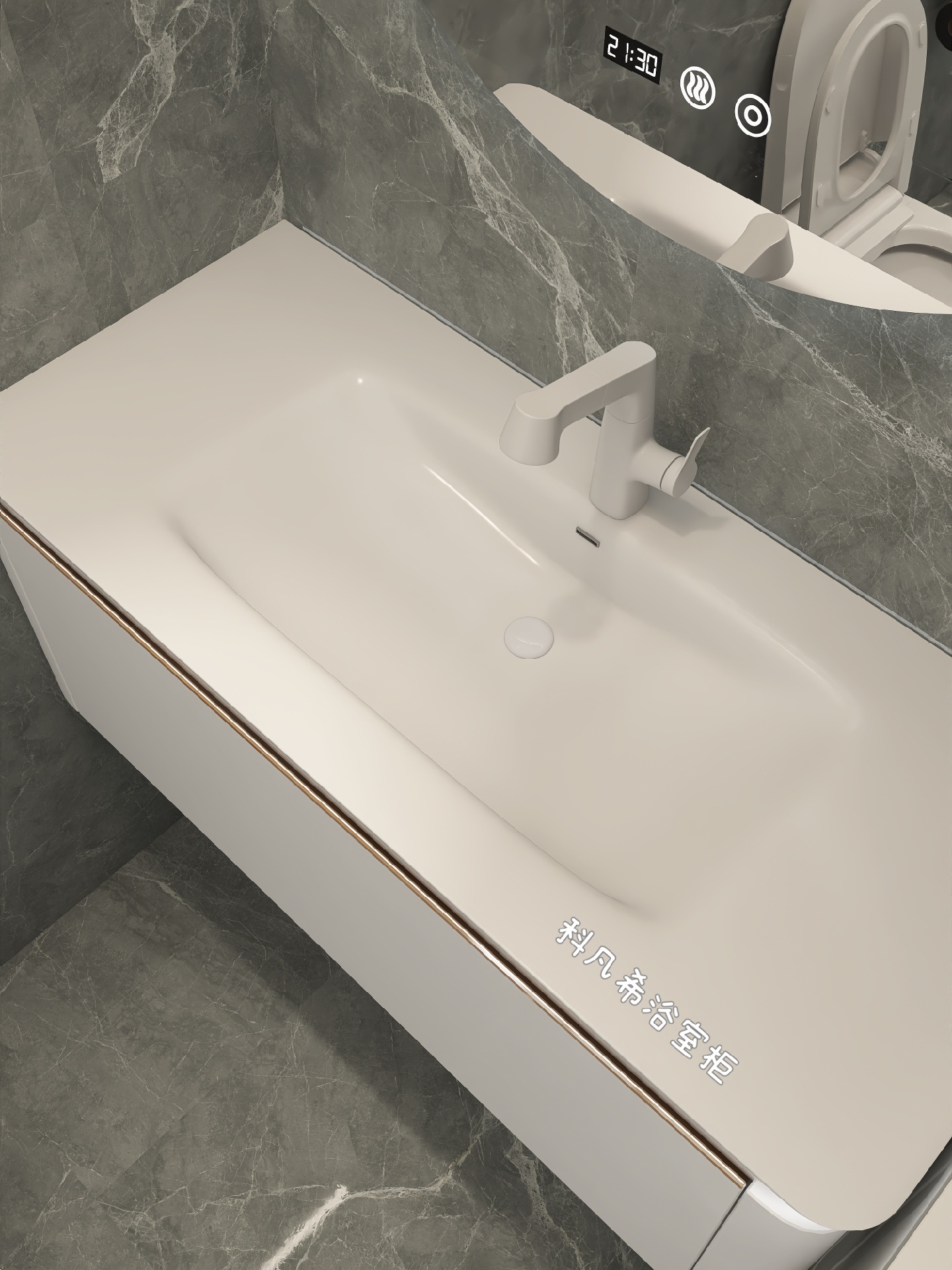 ◆ 这款浴室柜是实木制造的,非常有质感✨ 琦美石一体盆的,手感nice!水龙头可以升降或抽拉,下面的柜子空间很大!