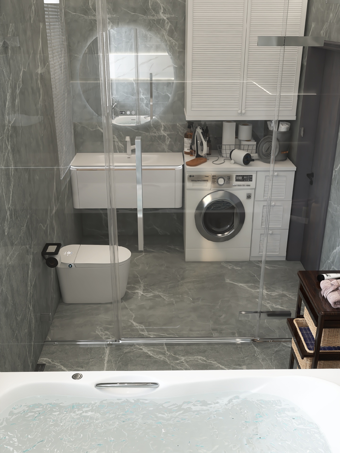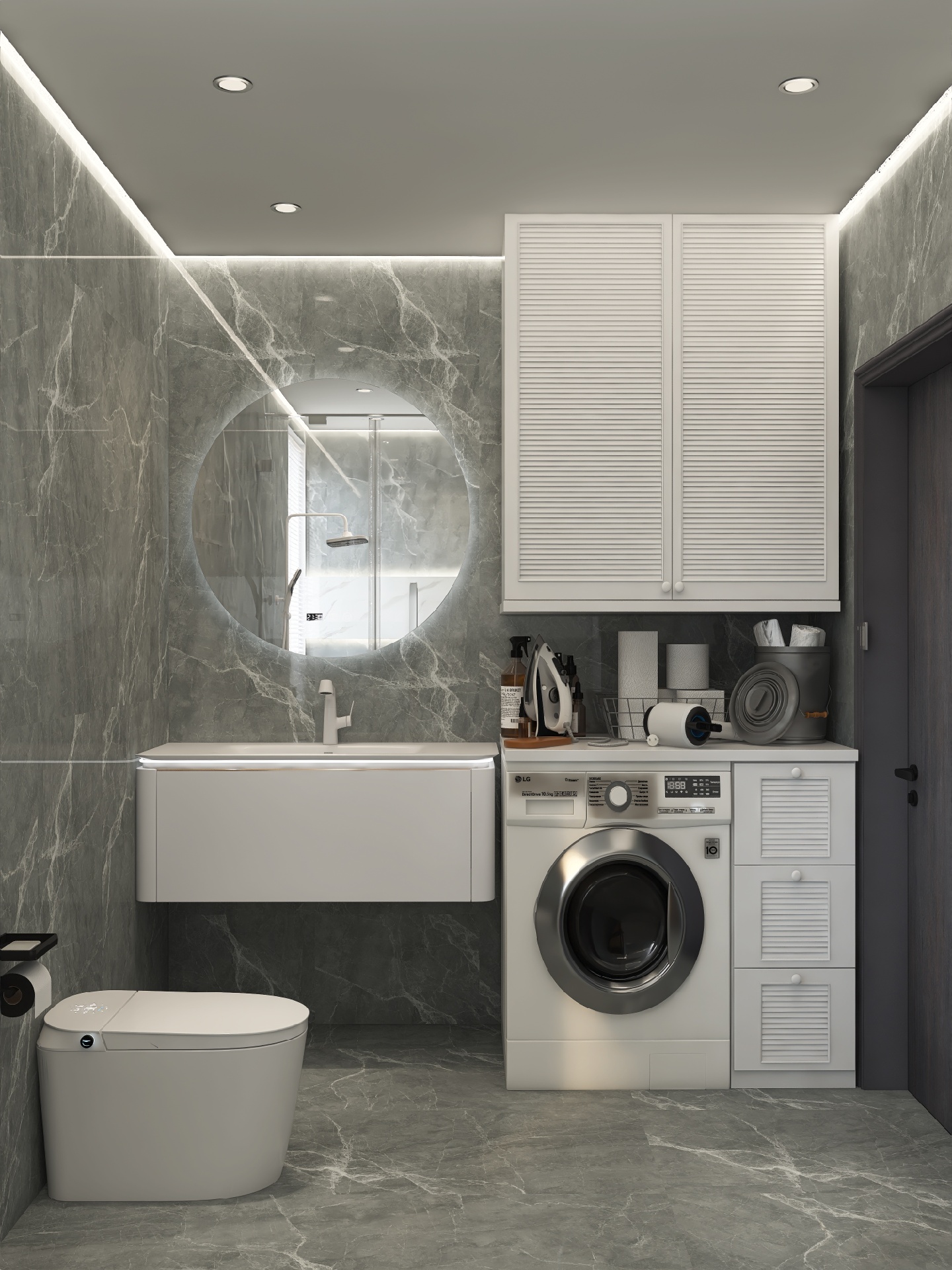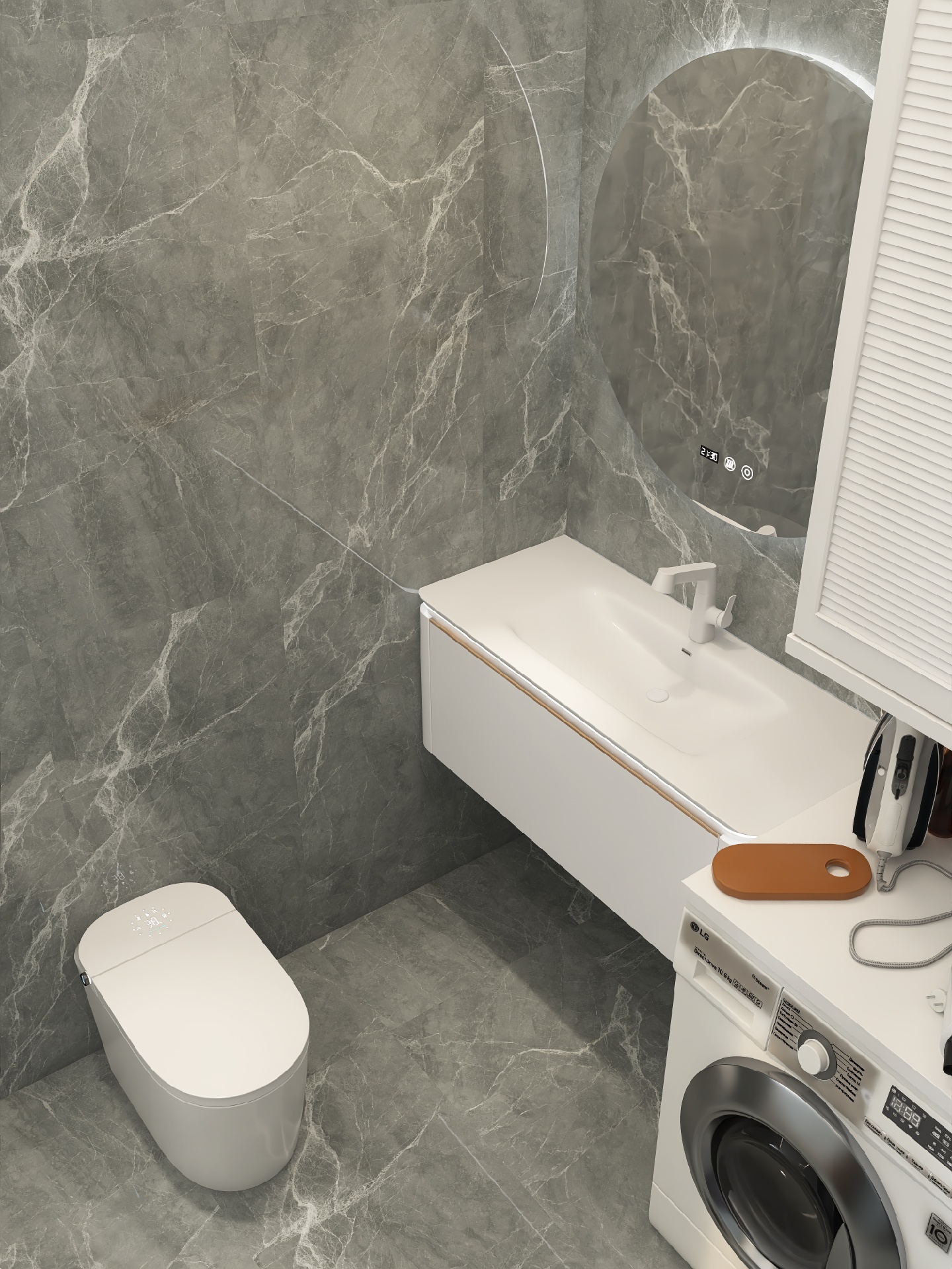 ◆ 整个浴室通铺灰色大理石瓷砖会单调吗🤔 ???