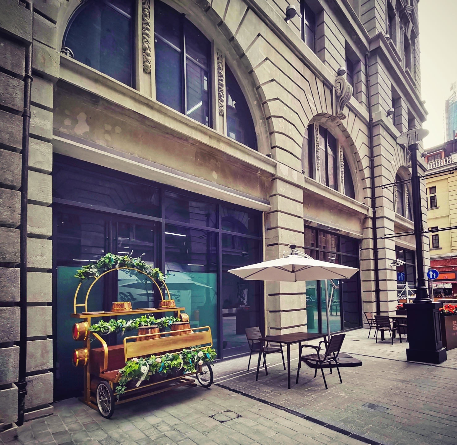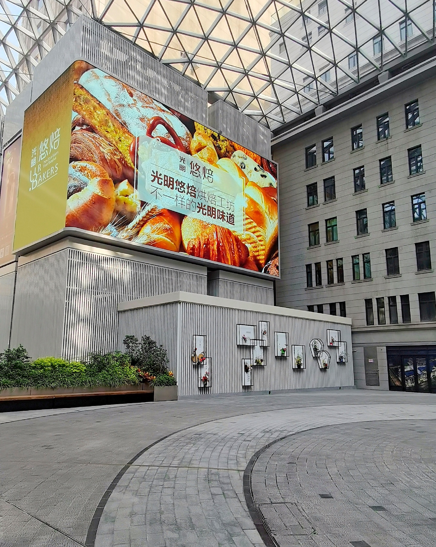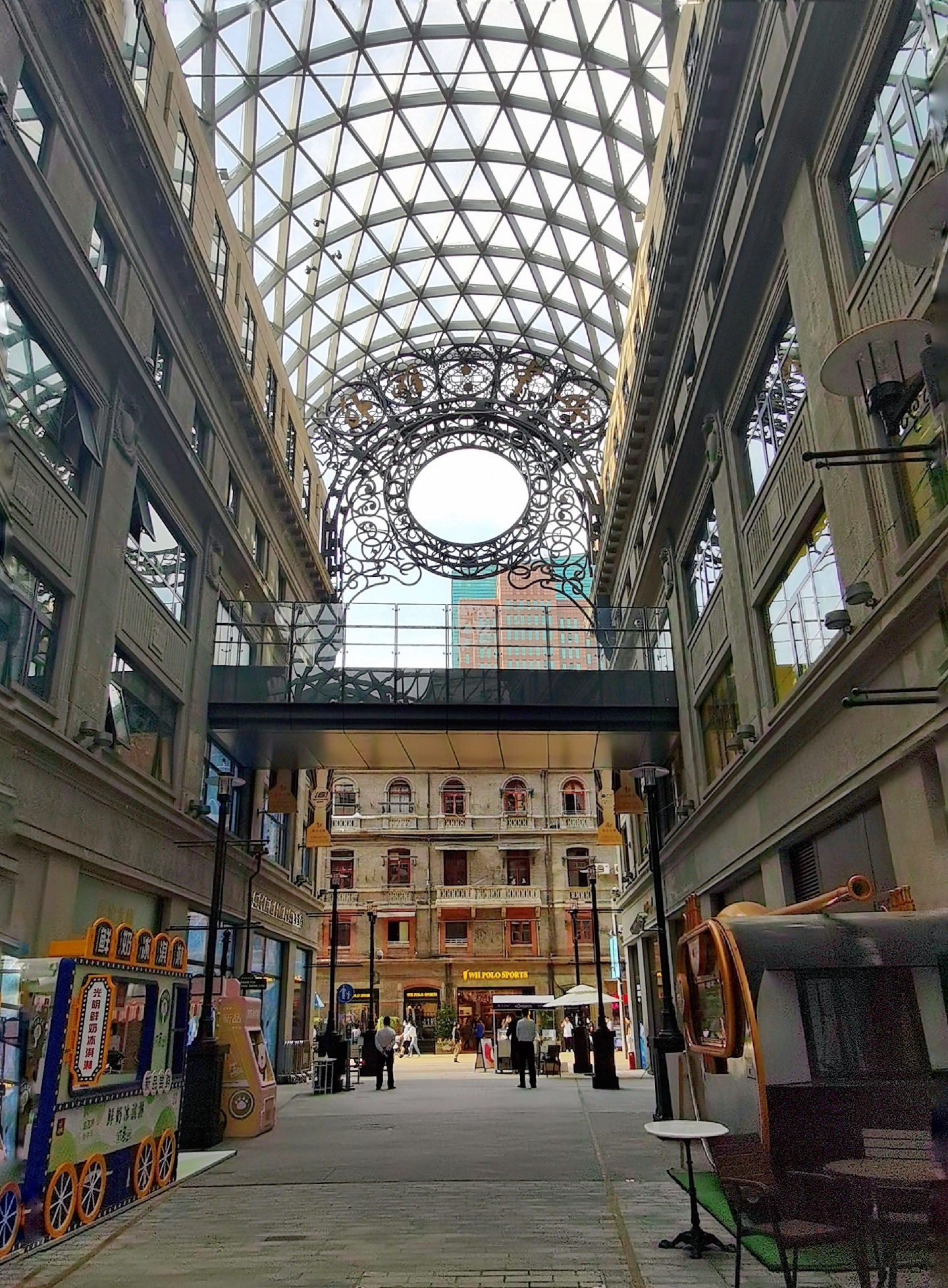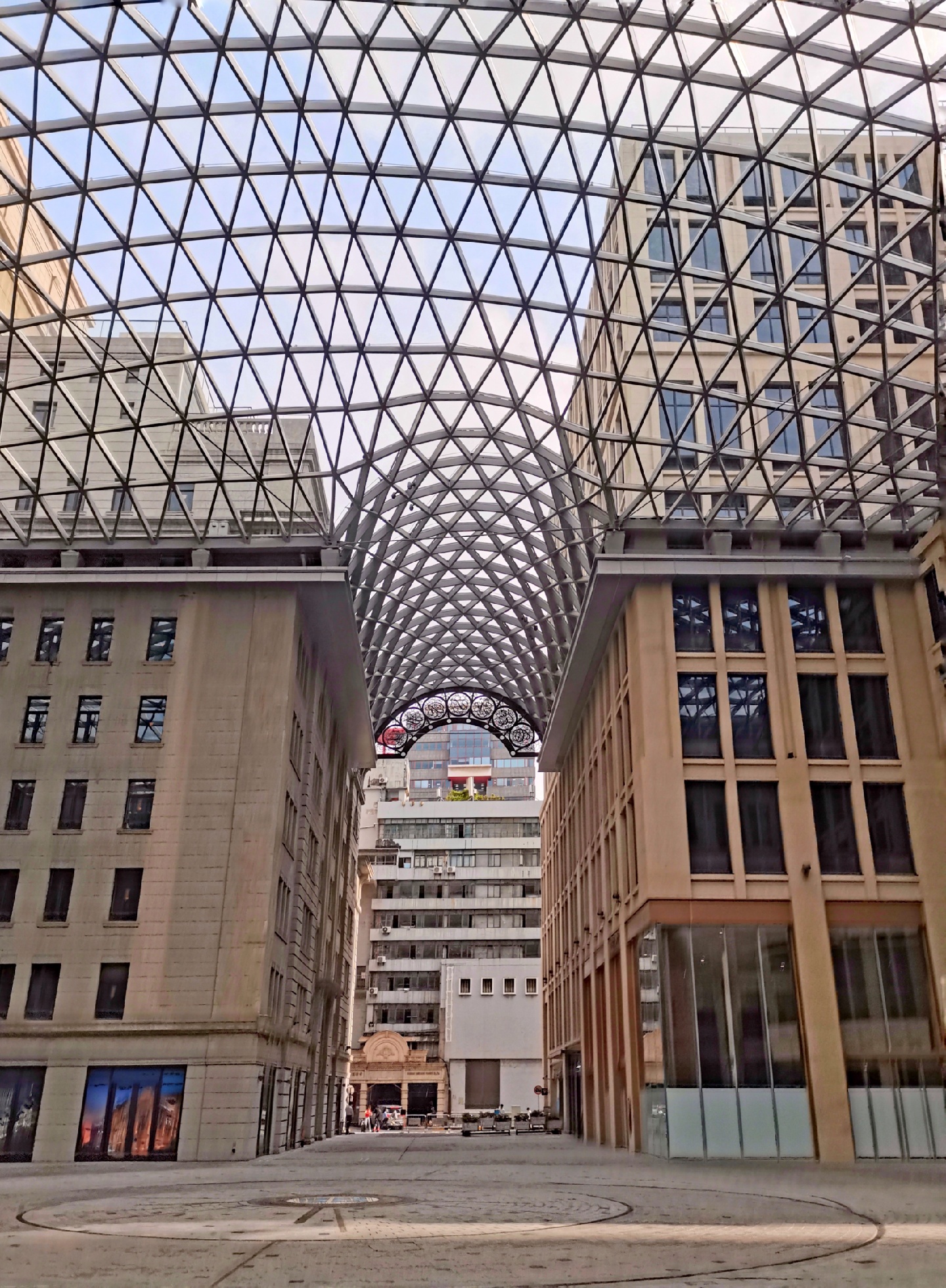 中央商场现已今非昔比,旧貌换了新颜,内庭由中央大楼、美伦大楼、新康大楼和华侨大楼这四幢历史保护建筑合围而成。仿米兰埃马努二世长廊的风格,漂亮的玻璃穹顶,各类餐厅、品牌店,加上内庭中央镶嵌的全息投影大屏幕,造就了时尚生活的休闲地。原来德大西餐厅的位置,现开着皮爷咖啡,大厅天栅顶上的白莲花吊灯清纯华美,滿是贵气。