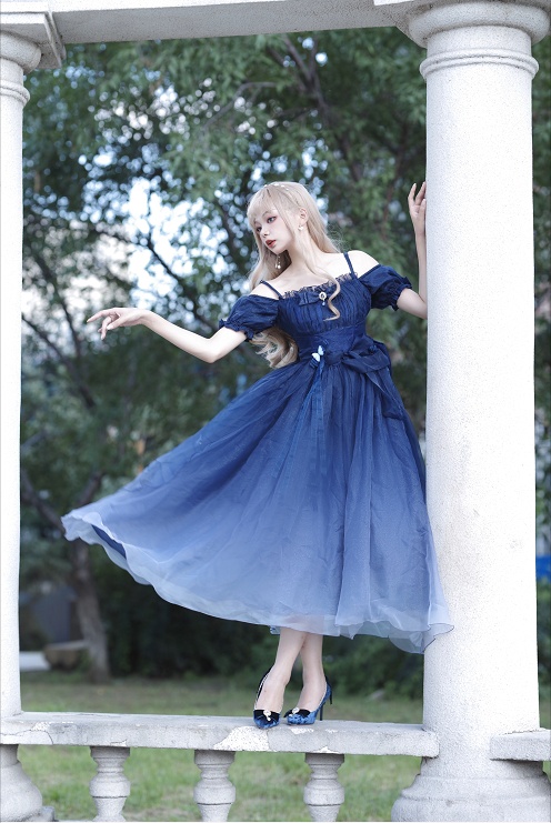 孤星海/塞勒涅之舞/绀色星空渐变礼服/仙气洛丽塔