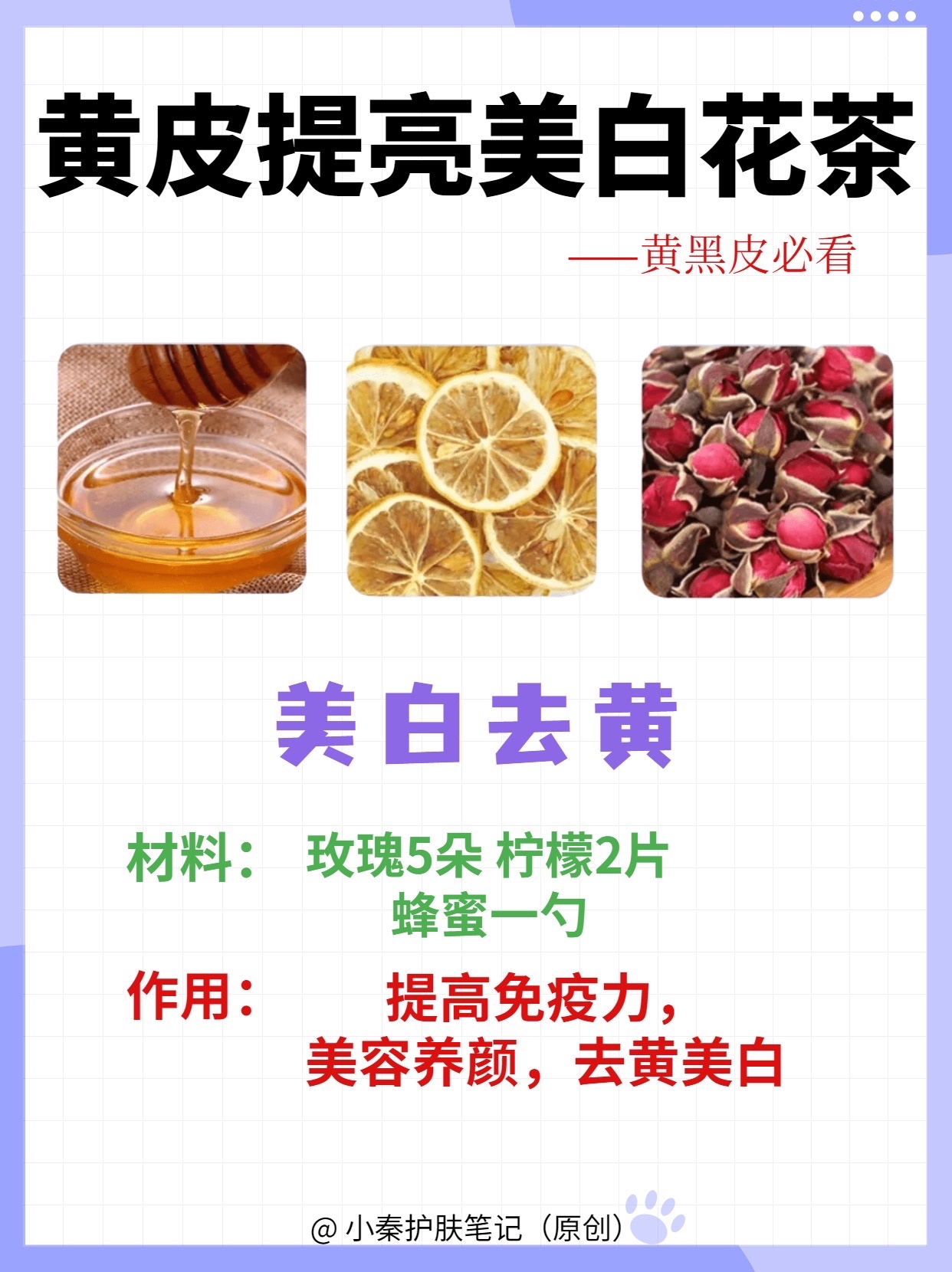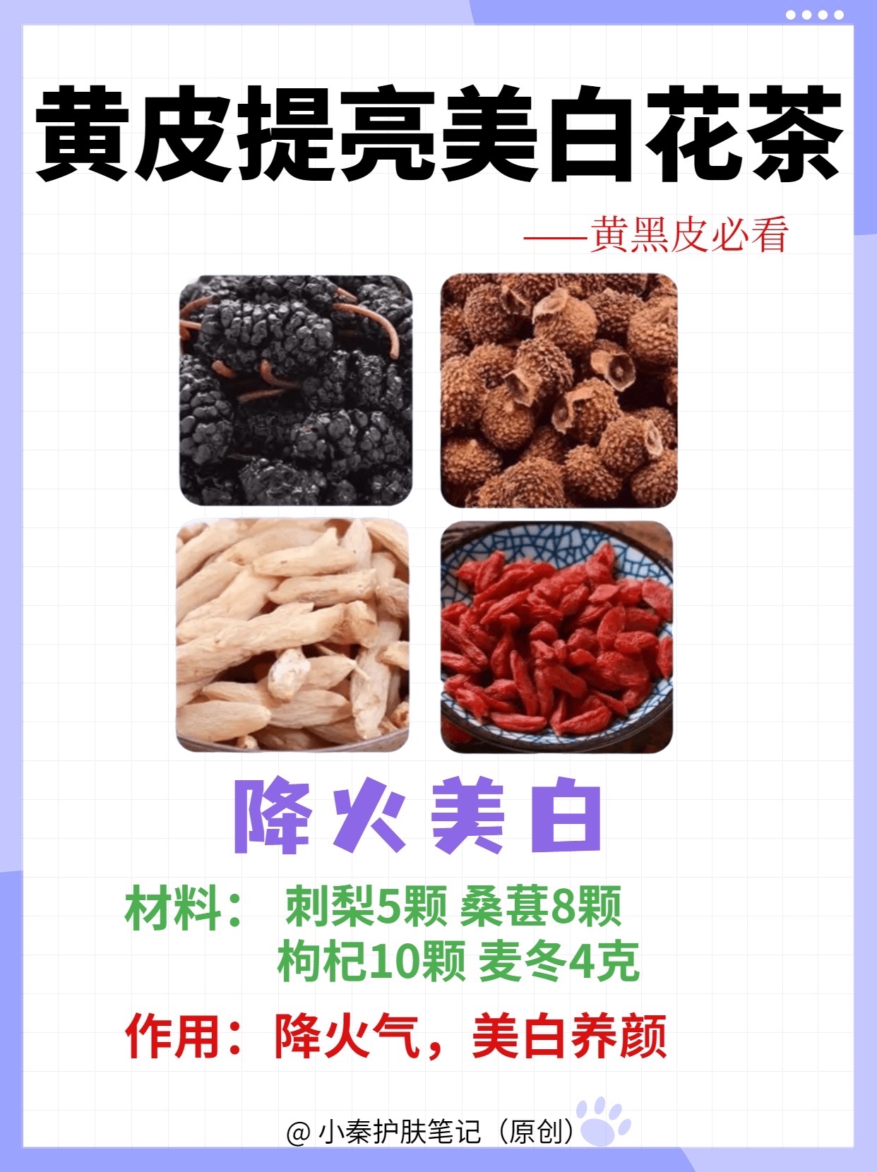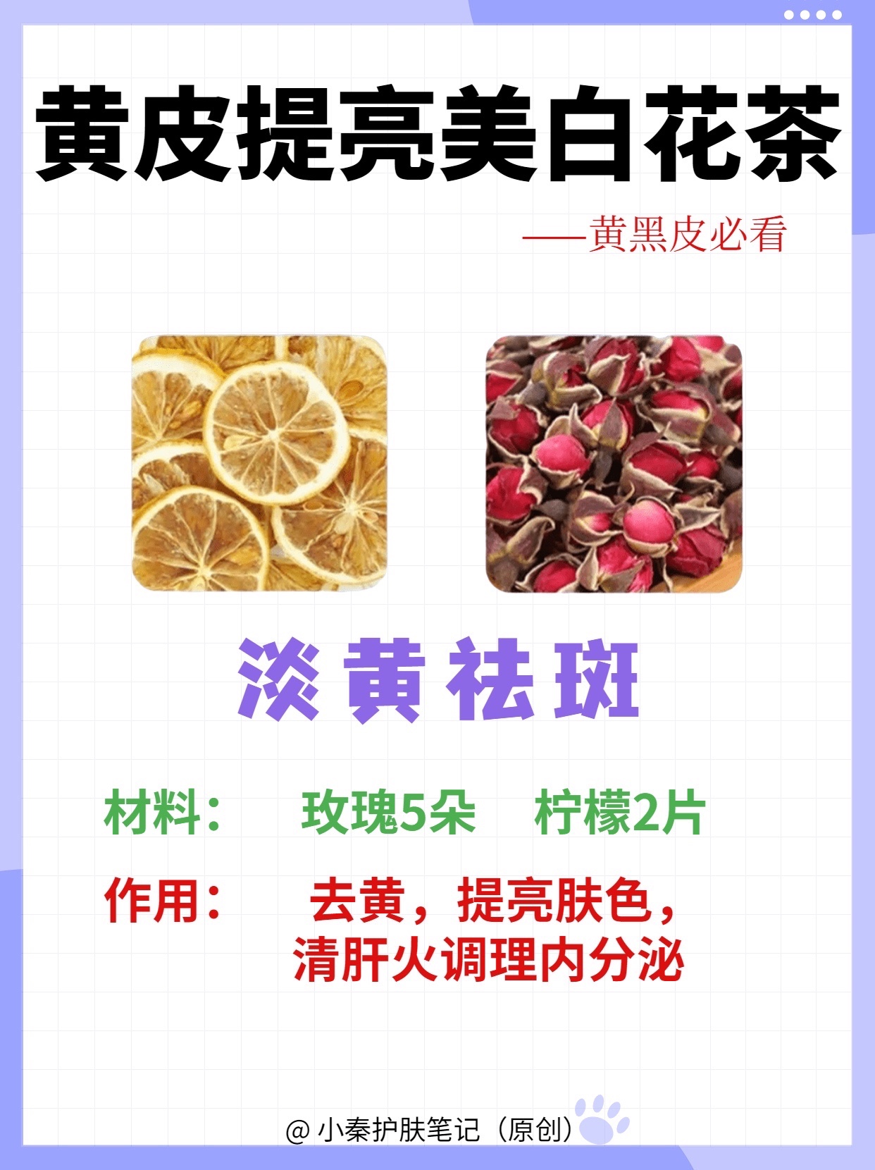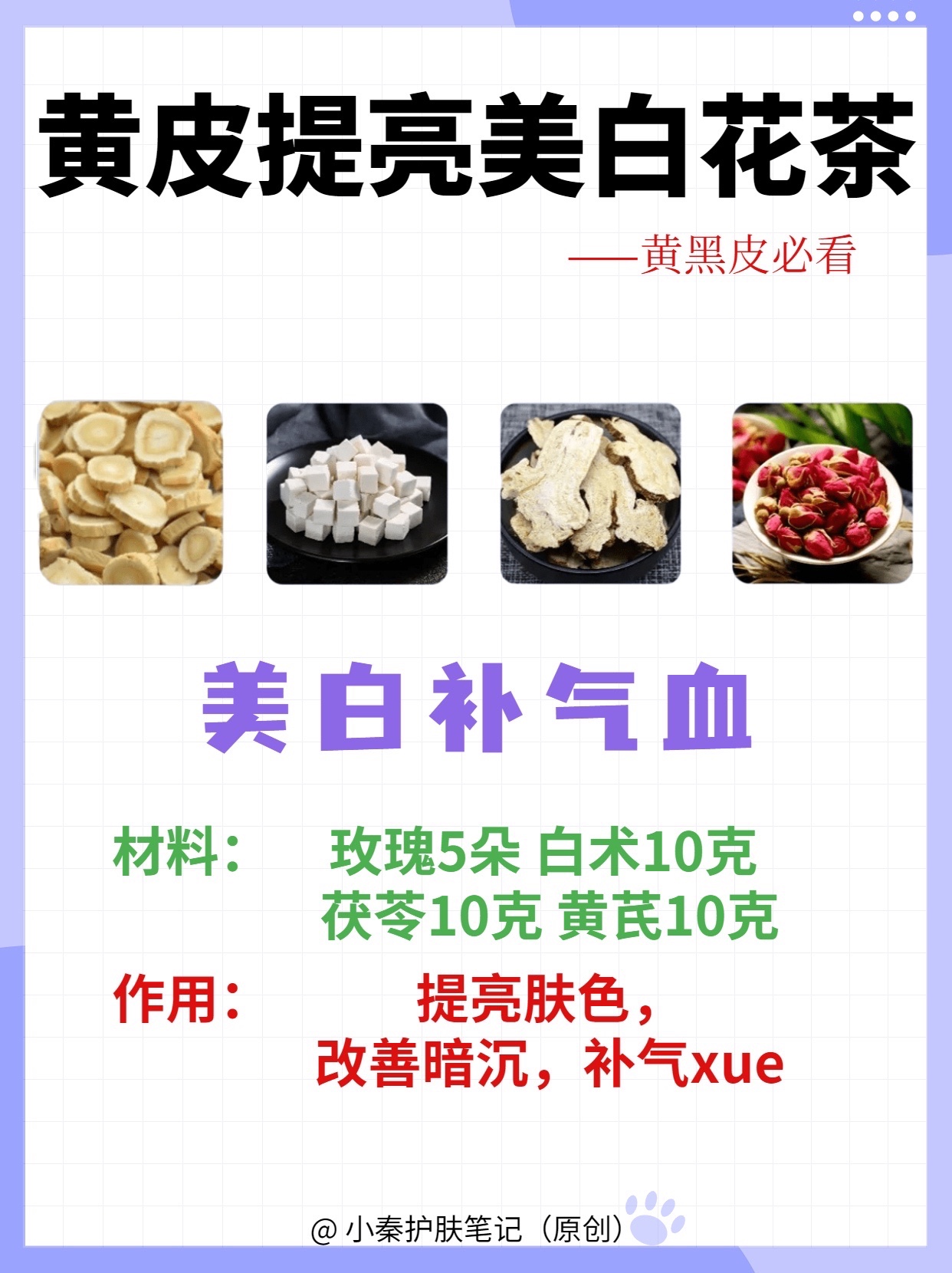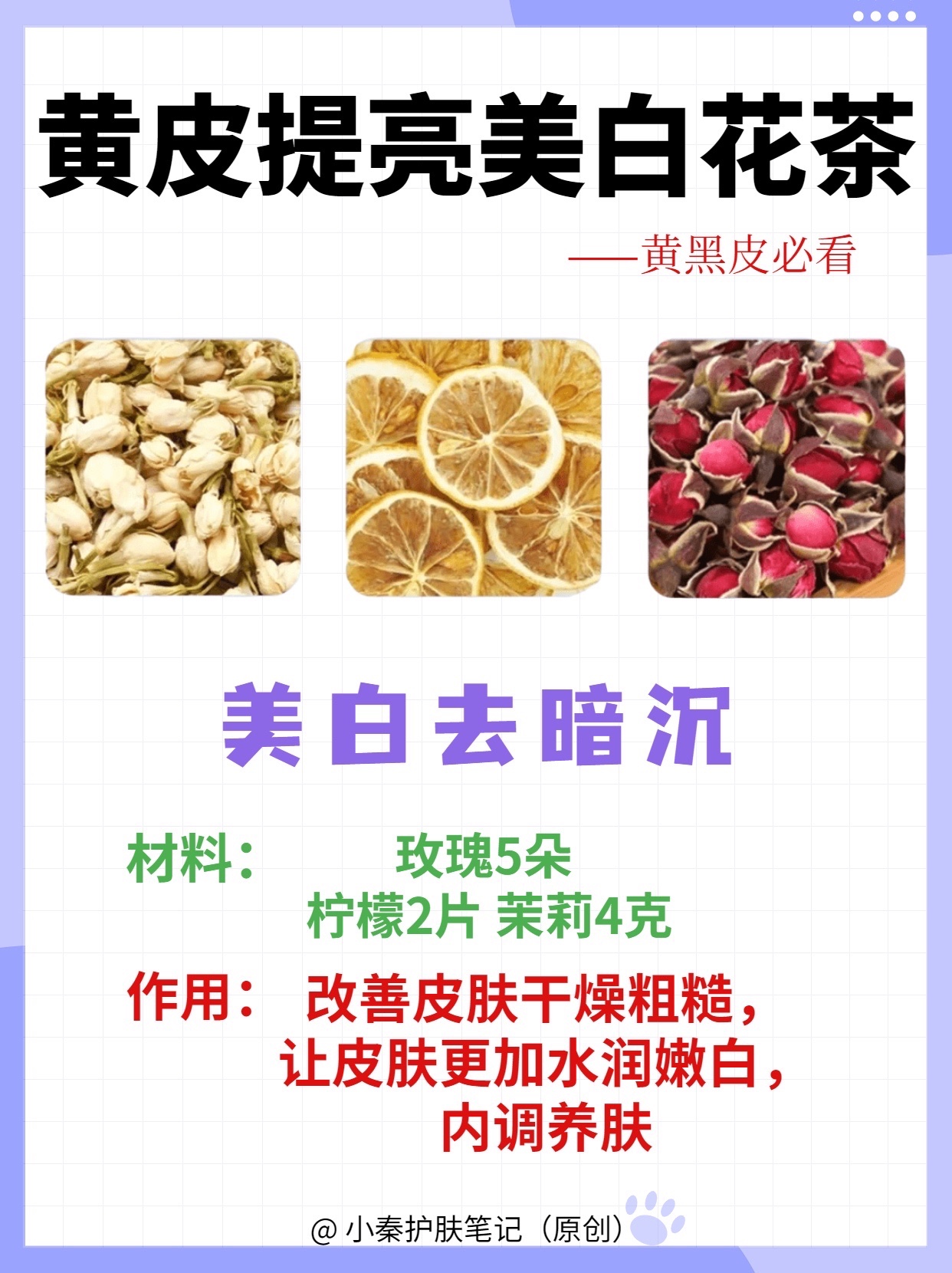 ⚠️黄皮想要提亮肤色,除了外养,内调也很重要图中6种花茶建议收藏