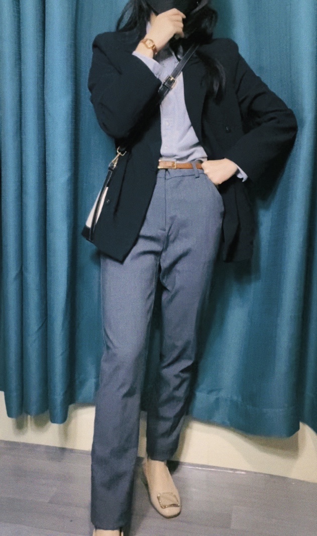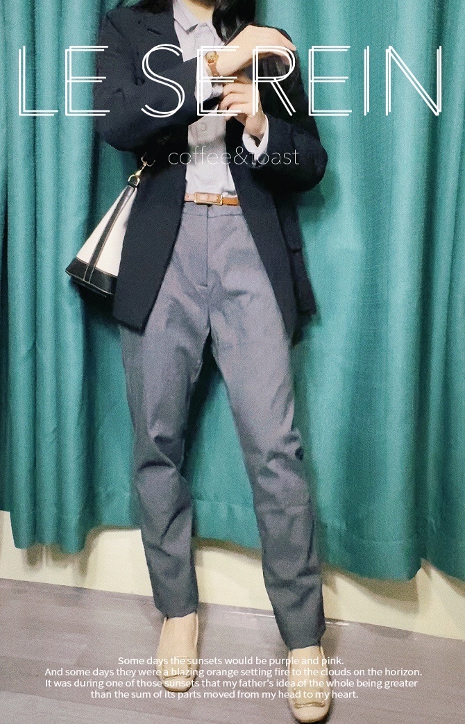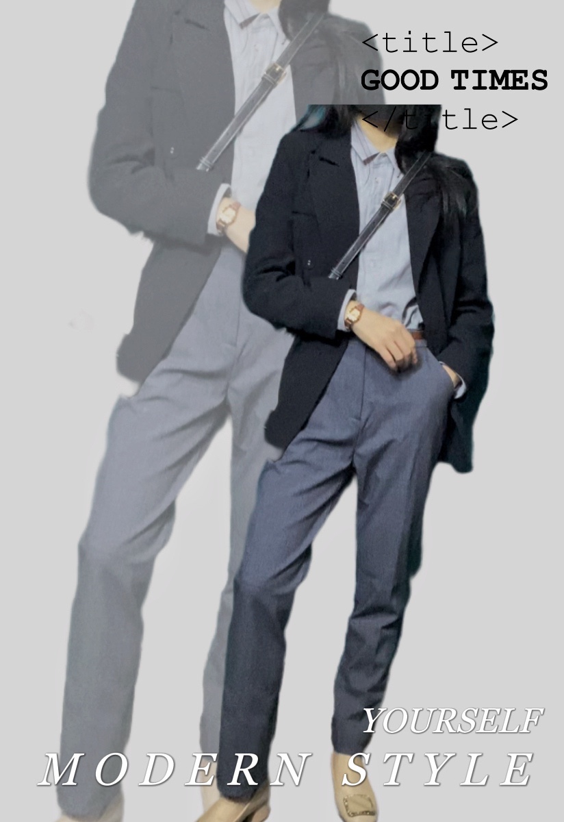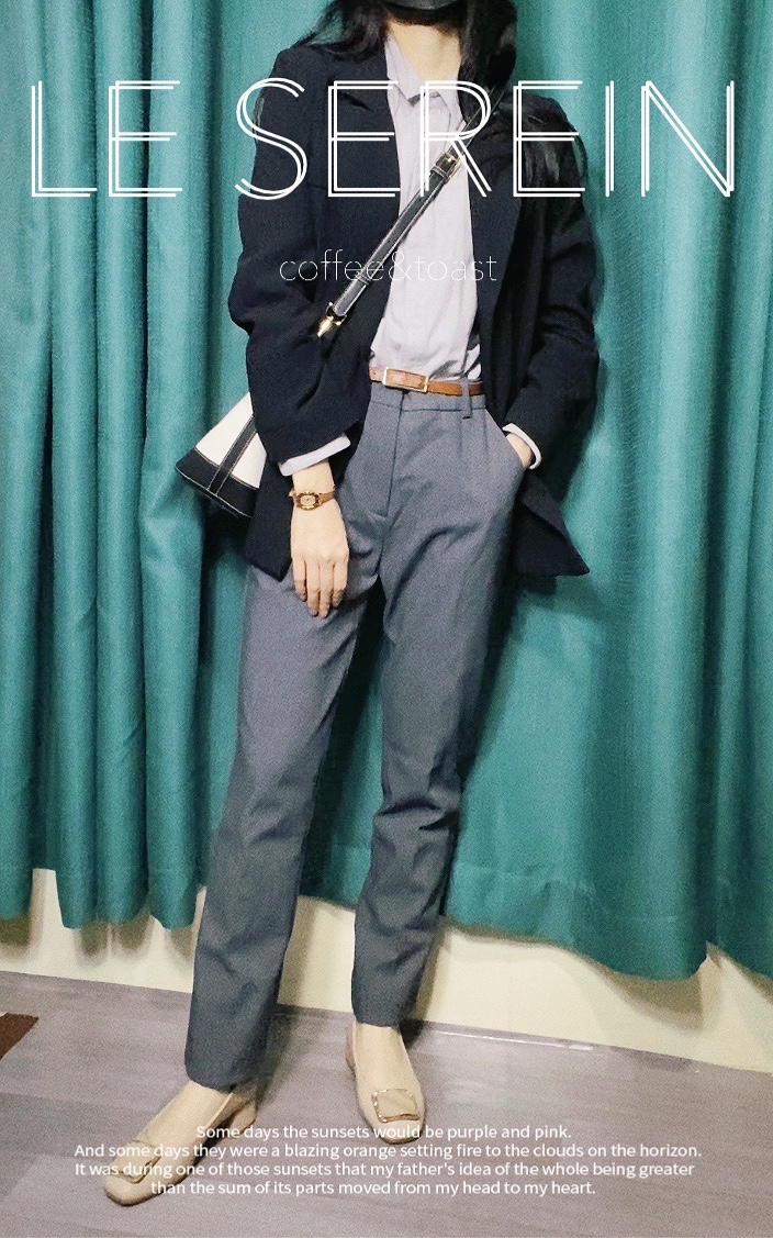 西装搭配西裤,一直都是经典中的经典,灰色打底衬衣,黑色西装,搭配深灰色质感西裤,复古又优雅,忙碌的办公,穿越来往的大厦,半晚的霓虹,街道上的车水马龙,都是忙碌的都市丽人。