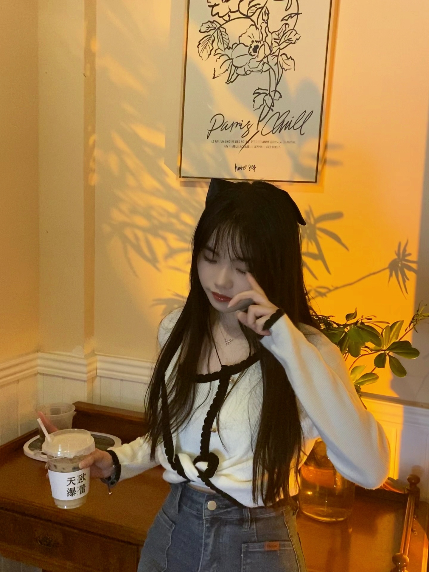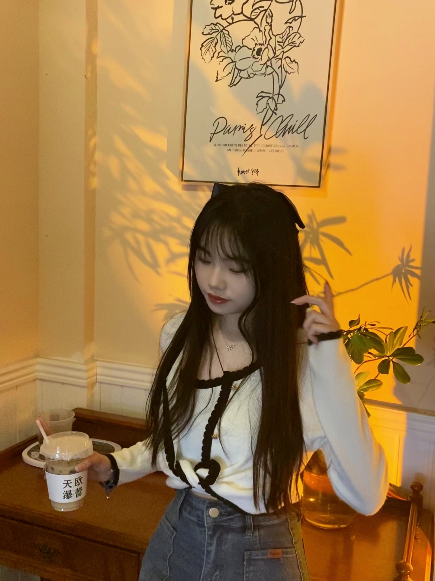 家人们,咱就是说奶茶店拍照,把奶茶举在一边,可以假装撩头发,摸头,动作随意点,拍你的人站离你一米远这样,手机稍微拿搞点就OK@美图秀秀 @家族小管家 @MT情报局 @MT挑战官