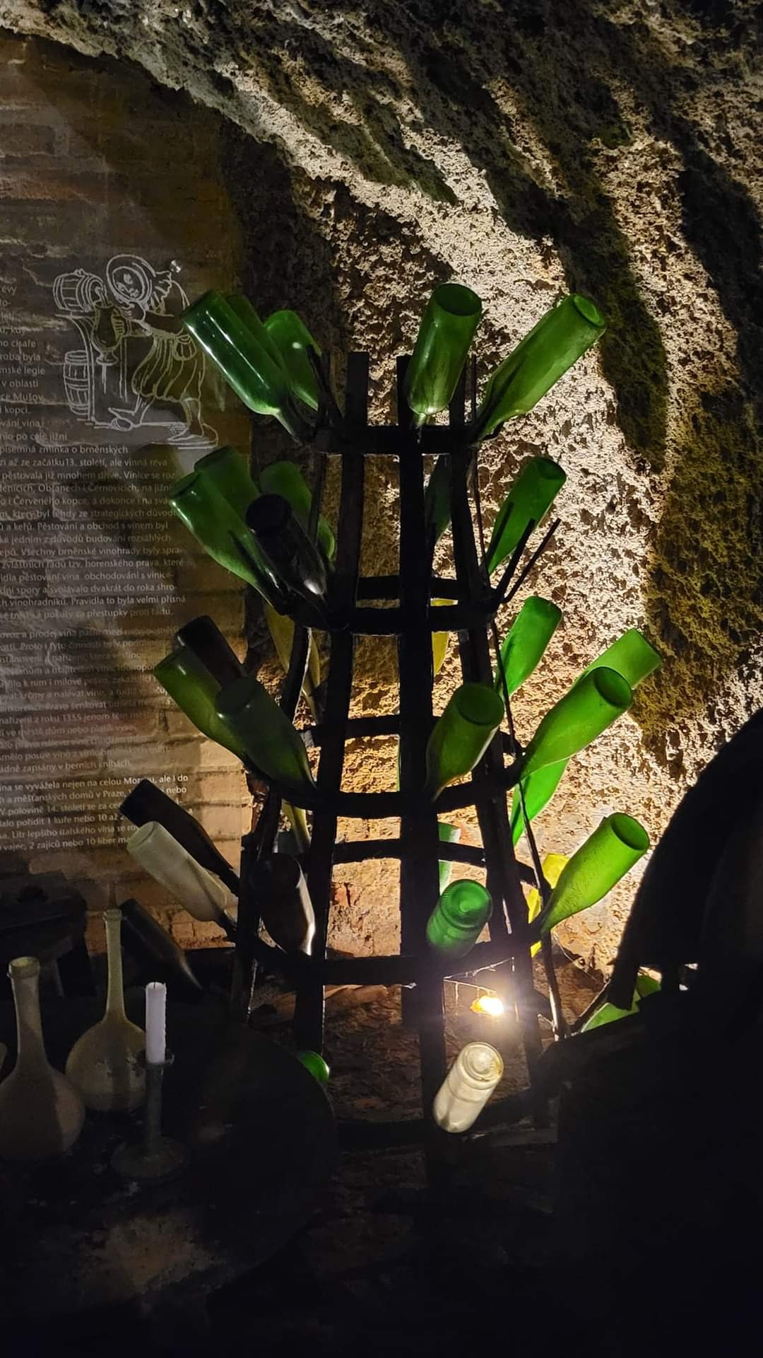 穿过古老地窖的神秘地下迷宫。最有趣的不在包心菜广场上,而是盘据在广场底下,由中古世纪地道、地窖所构成的神秘迷宫。 真是等不及要一探究竟,买了票才听懂地下迷宫不能自己参观,只能参加下一场的捷克语集体导览,不懂捷克语的我们则透过语音设备和大家一起参观。