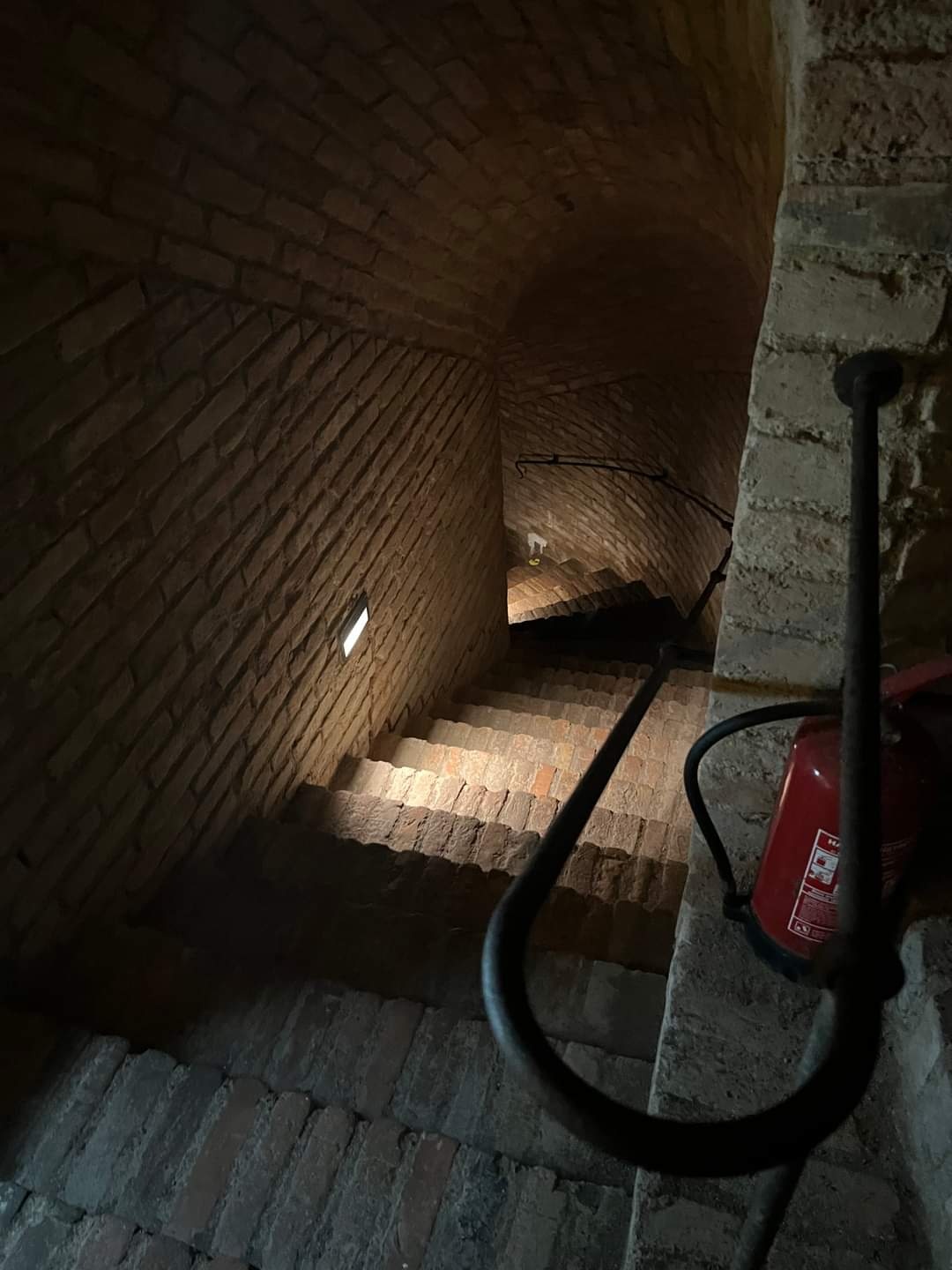 跟着导游往下走约两层楼(地下六到八米处),便开始我们的探险,地道及地窖很像我们的隧道,由红砖构成地面或拱顶,还算宽敞不用低头弯腰行走,但颇为幽暗,虽然有指标行进路线,但有上阶梯的,也有再往下盘旋行走的,还是集体导览好,不然真有人会在这地下迷宫迷路。
