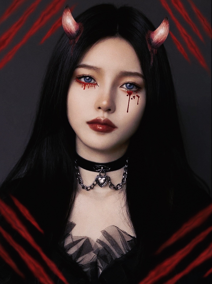 万圣节恶魔妆/低饱和/万圣节氛围感/自拍-美图社区-美图秀秀