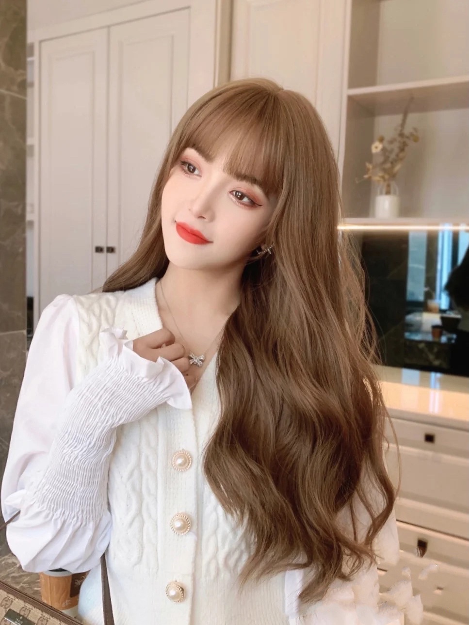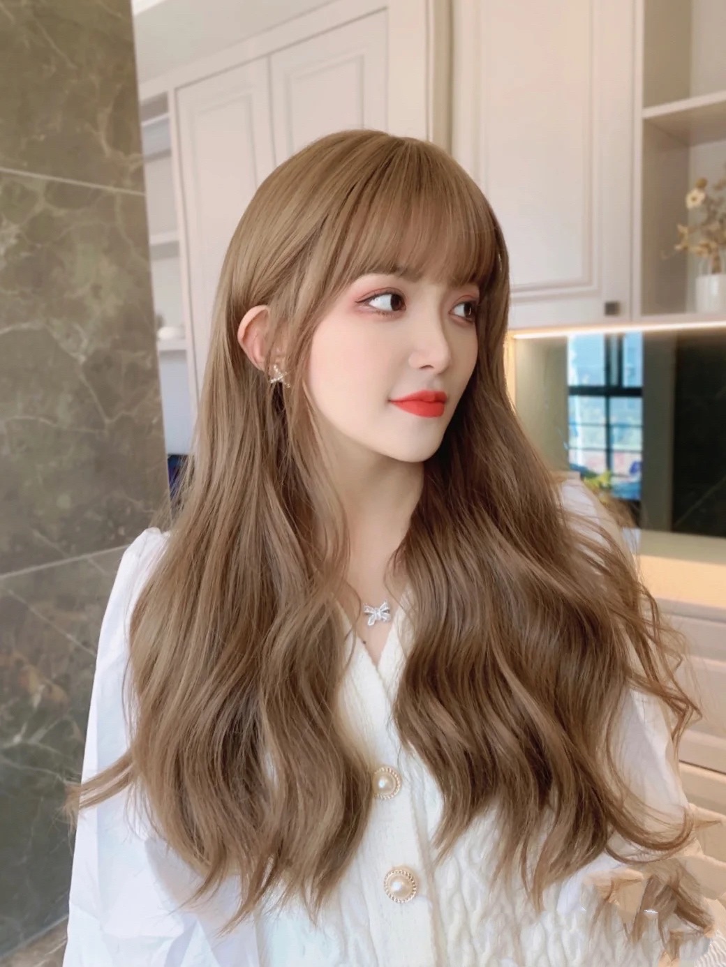 在亚麻色里面会有一些灰蒙蒙的感觉,有了更多的灵动感,很显质感~