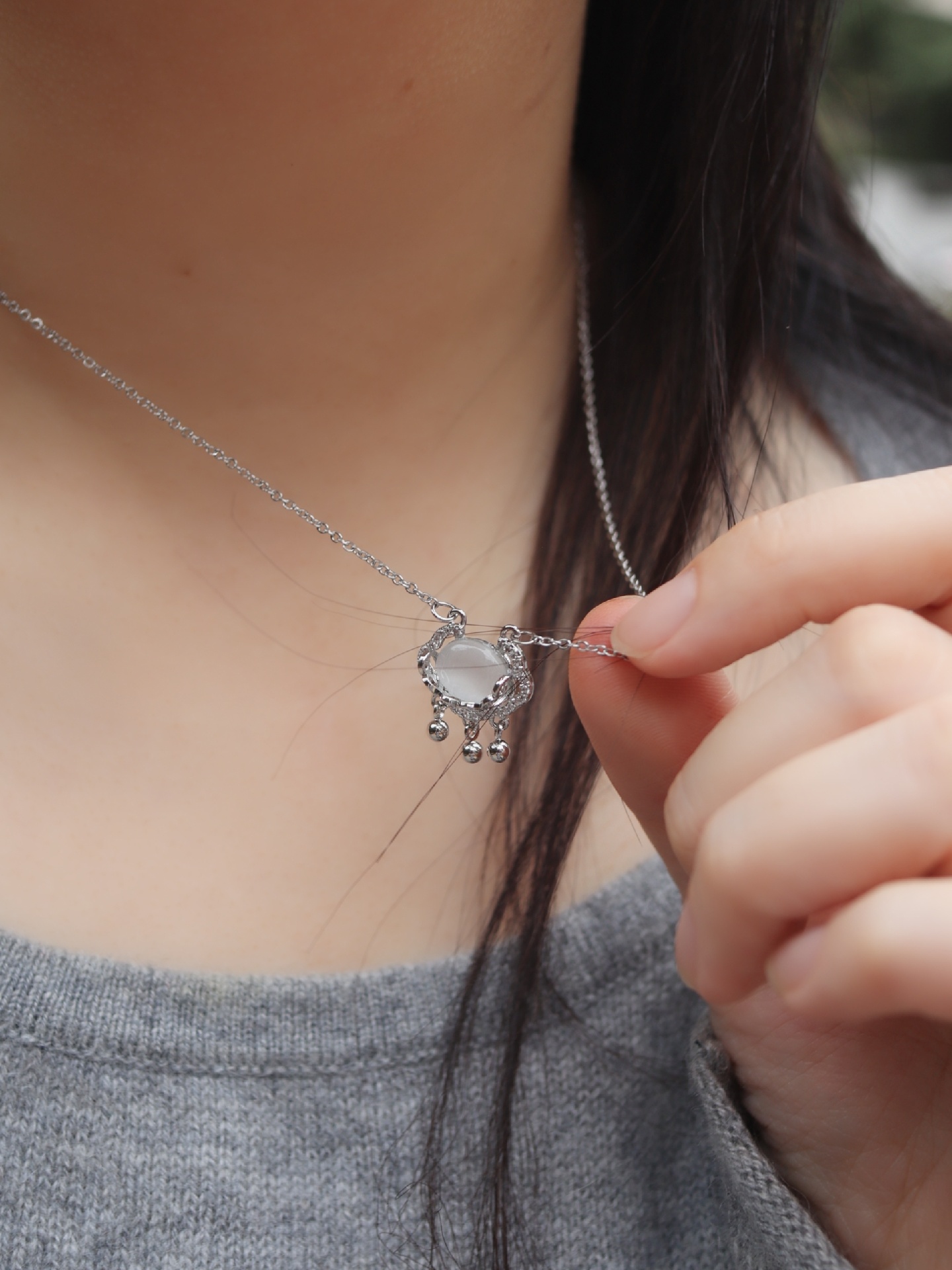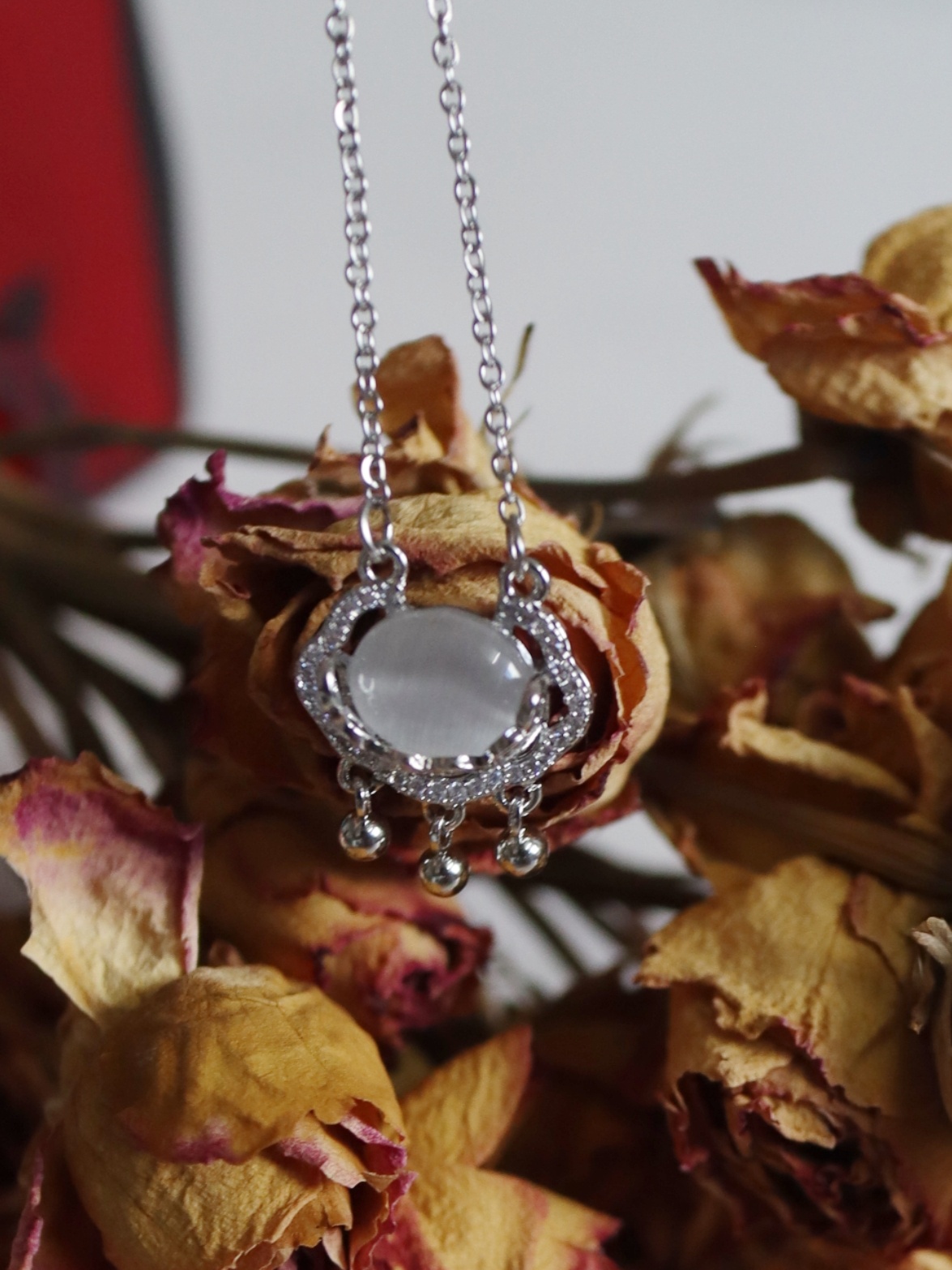 s925银和玉髓的搭配,不易掉色哦~新中式的设计加上很有清冷感的玉髓,古风美人那味一下就出来了!