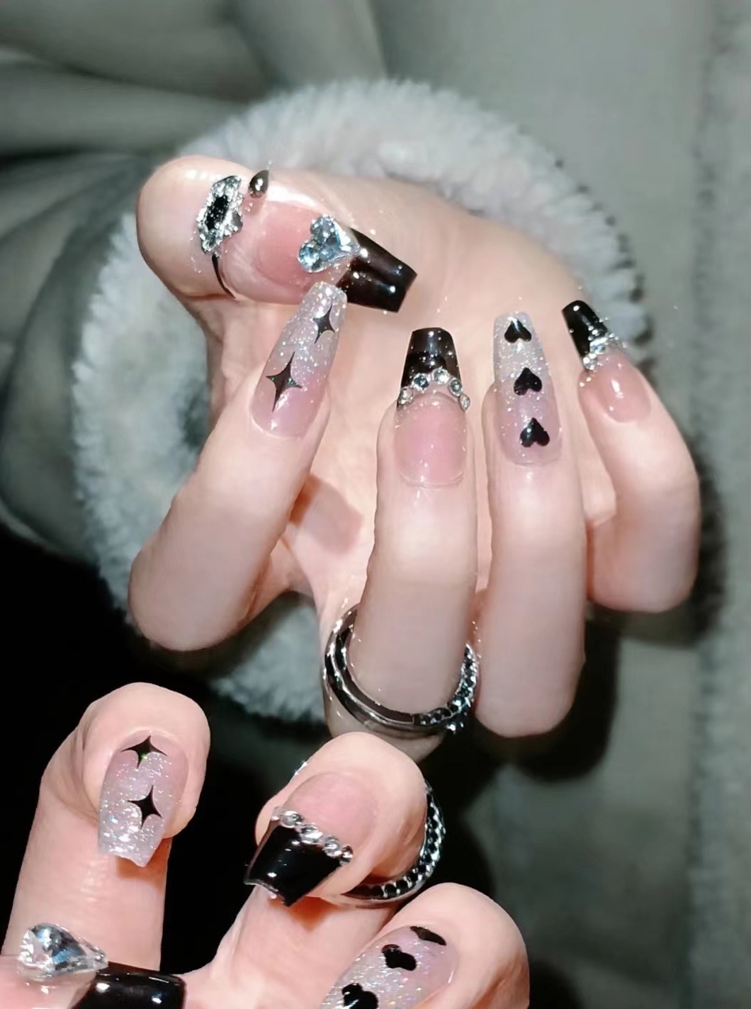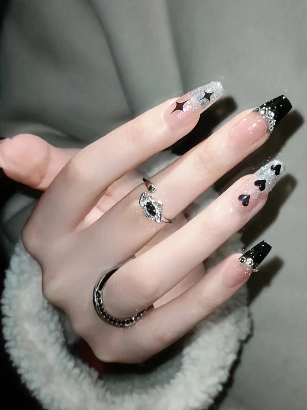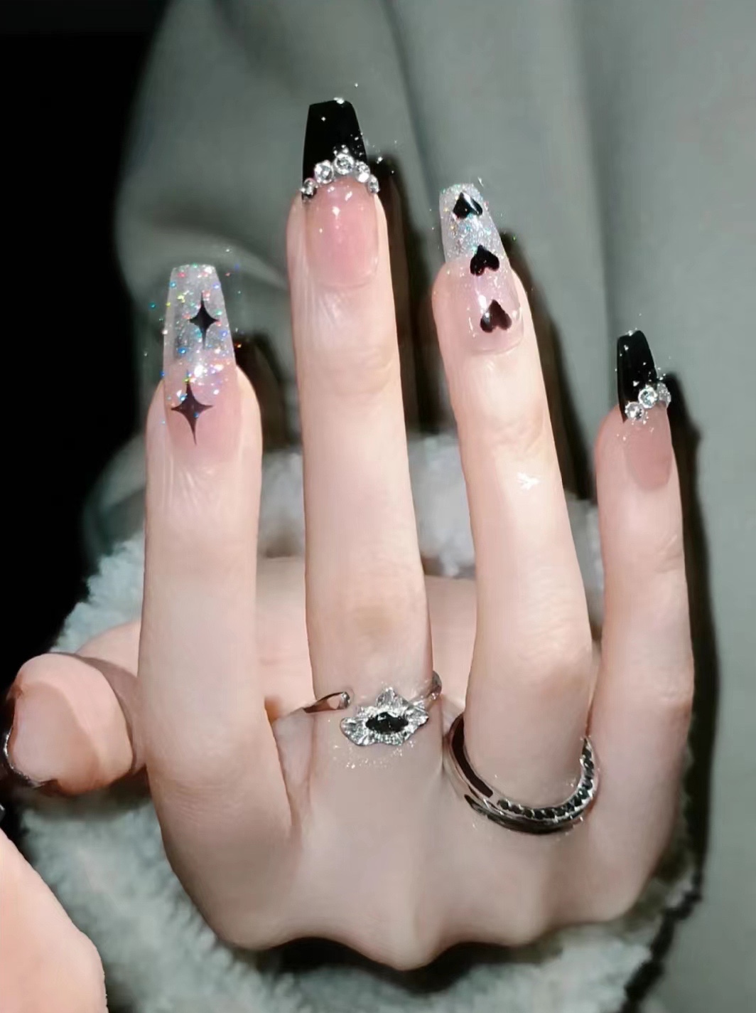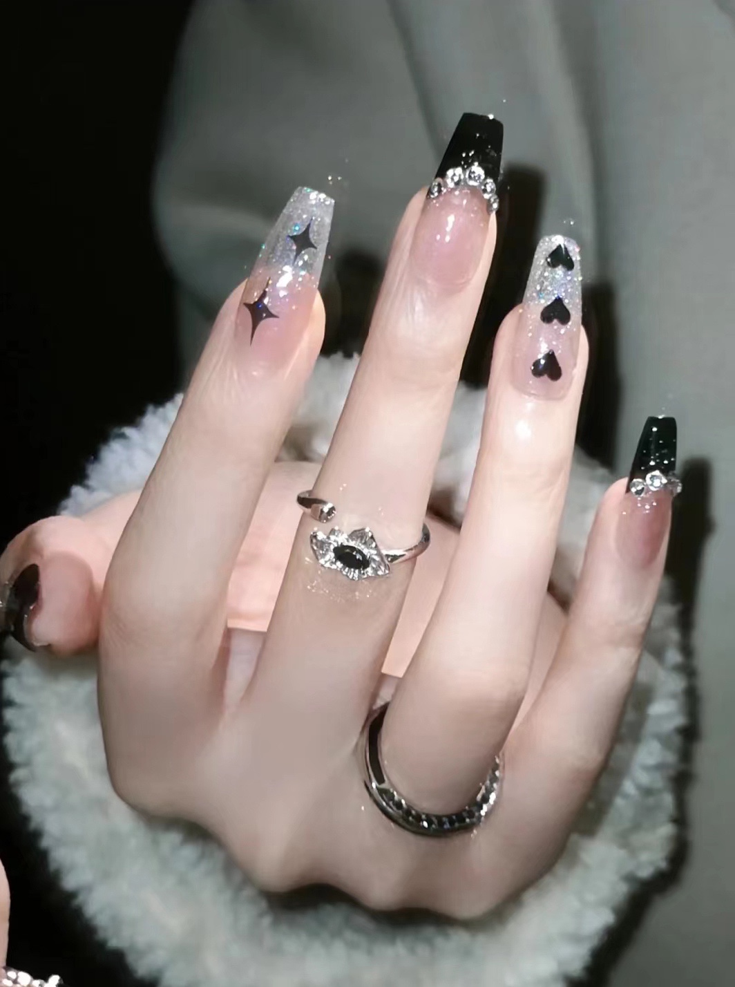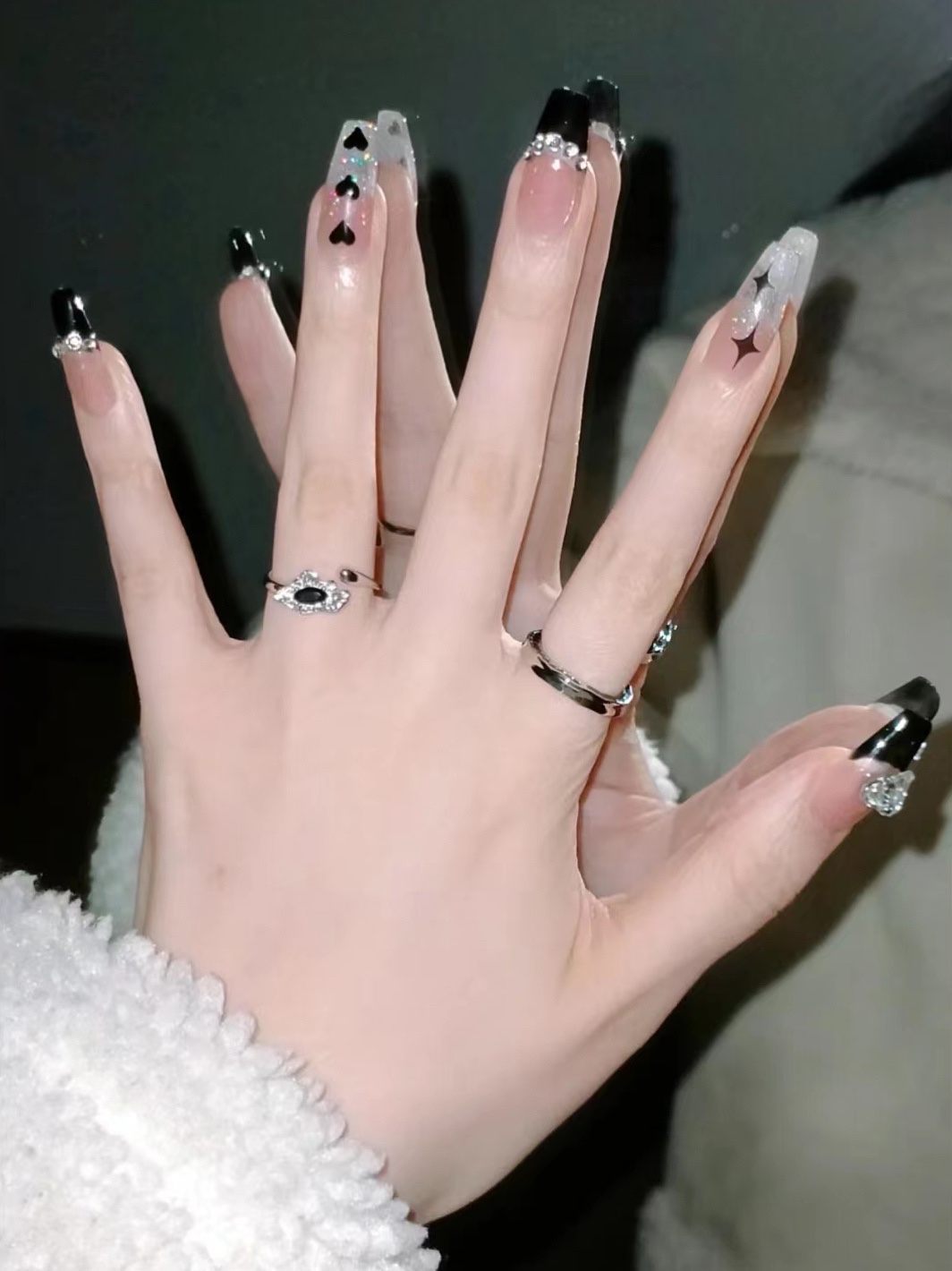 暗黑碎星美甲,甜酷风,喜欢长指甲的姐妹,一定要去做。