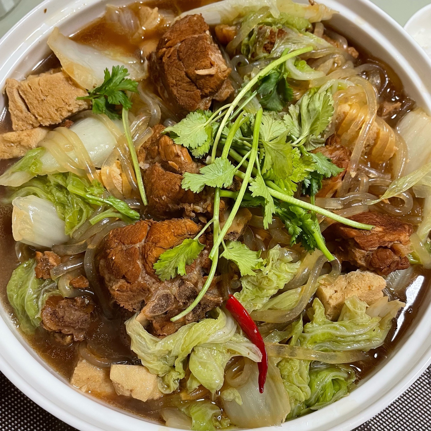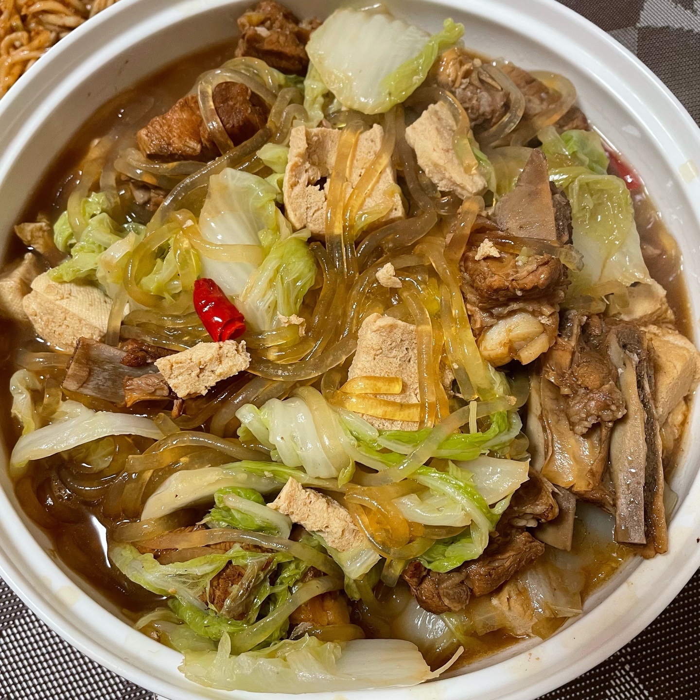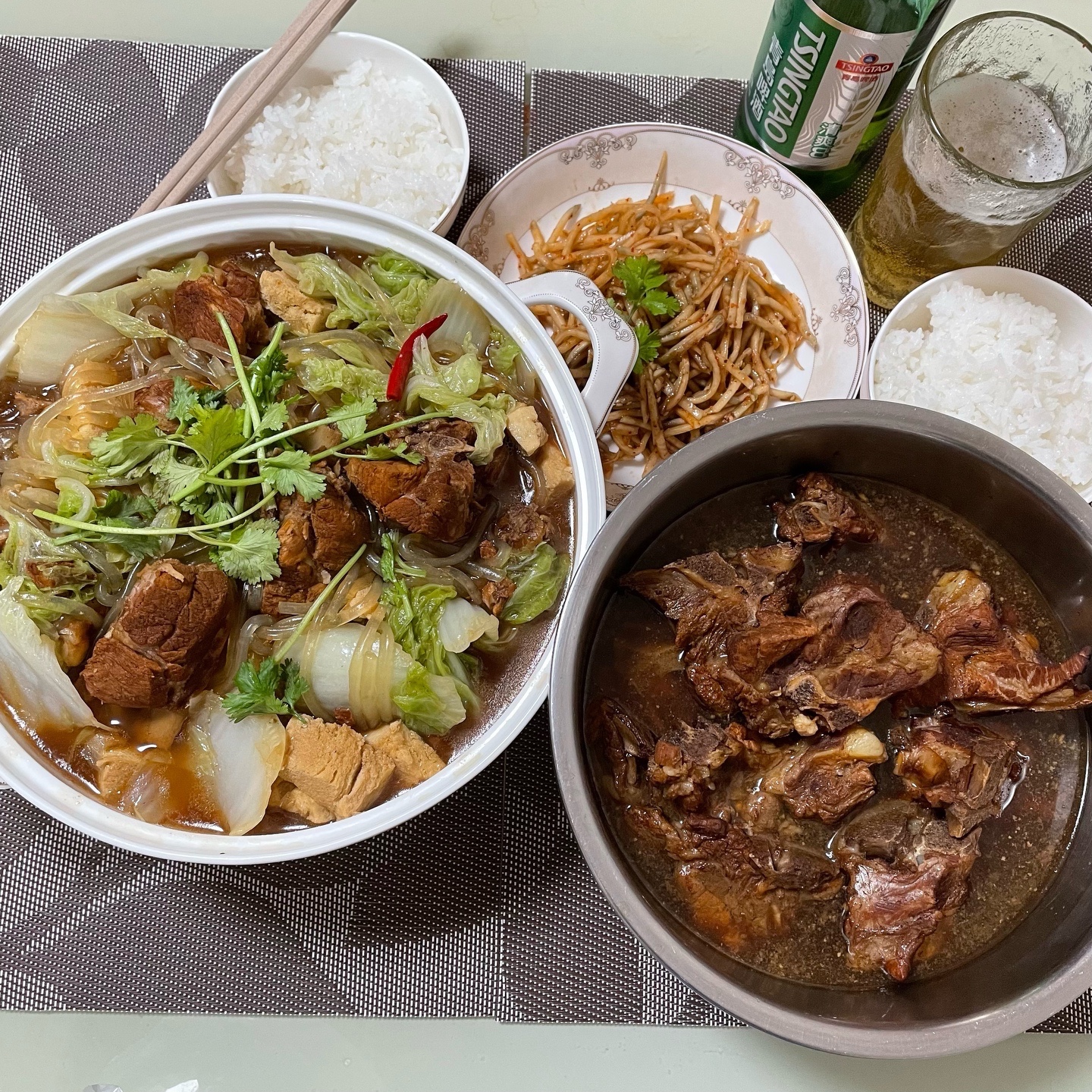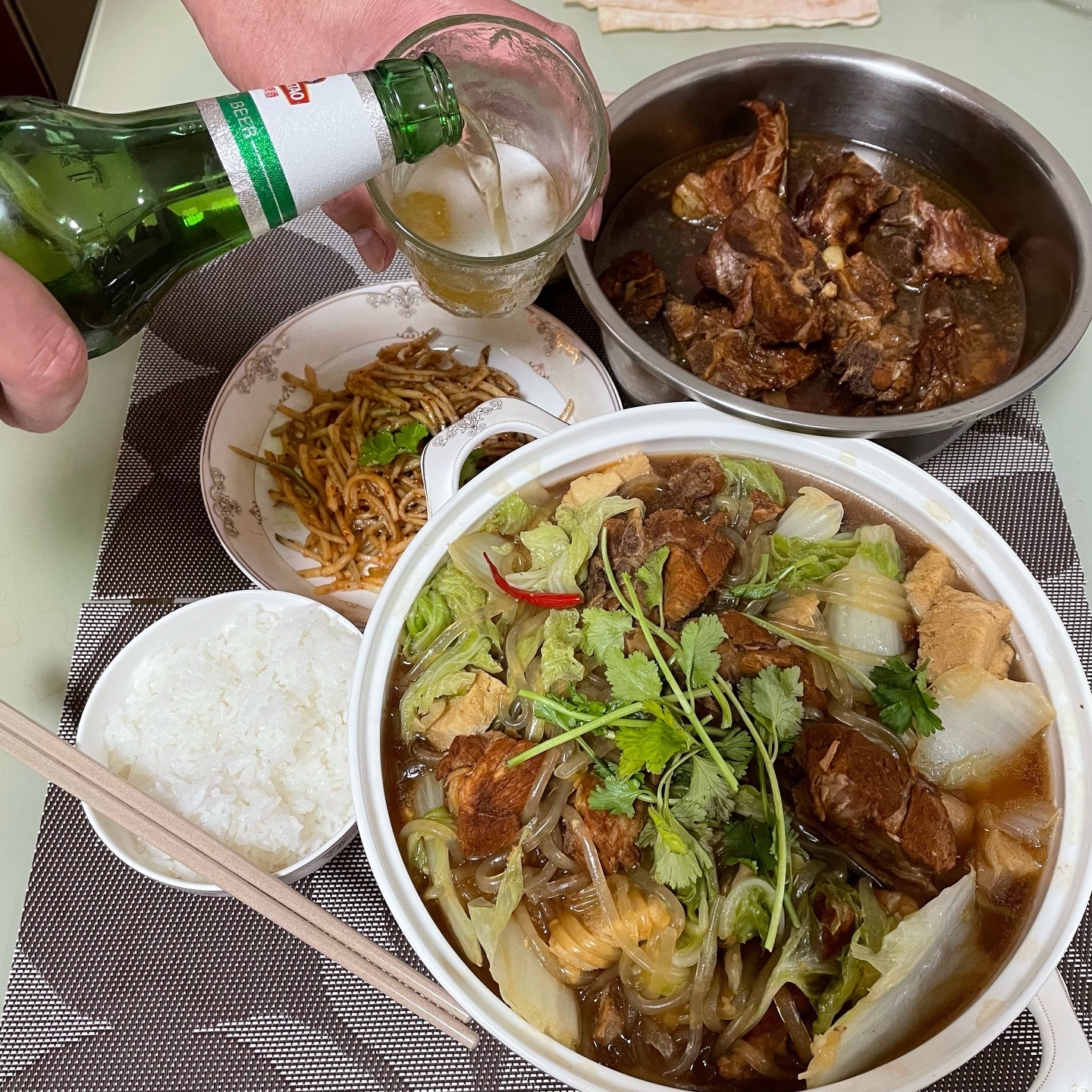 💁🏻♀️自制芥菜丝+排骨炖冻豆腐大白菜土豆粉条儿+🍚+冰镇🍺