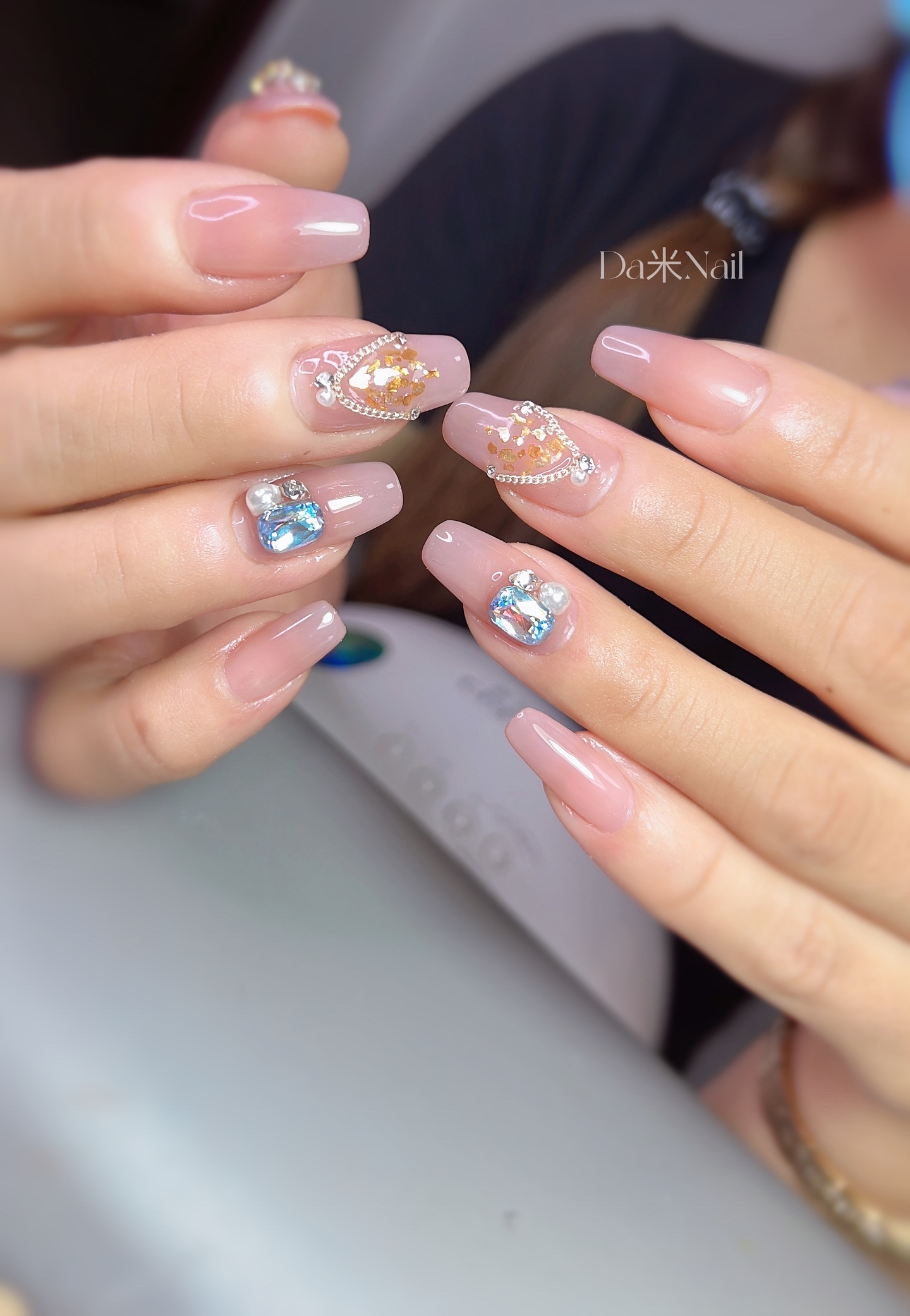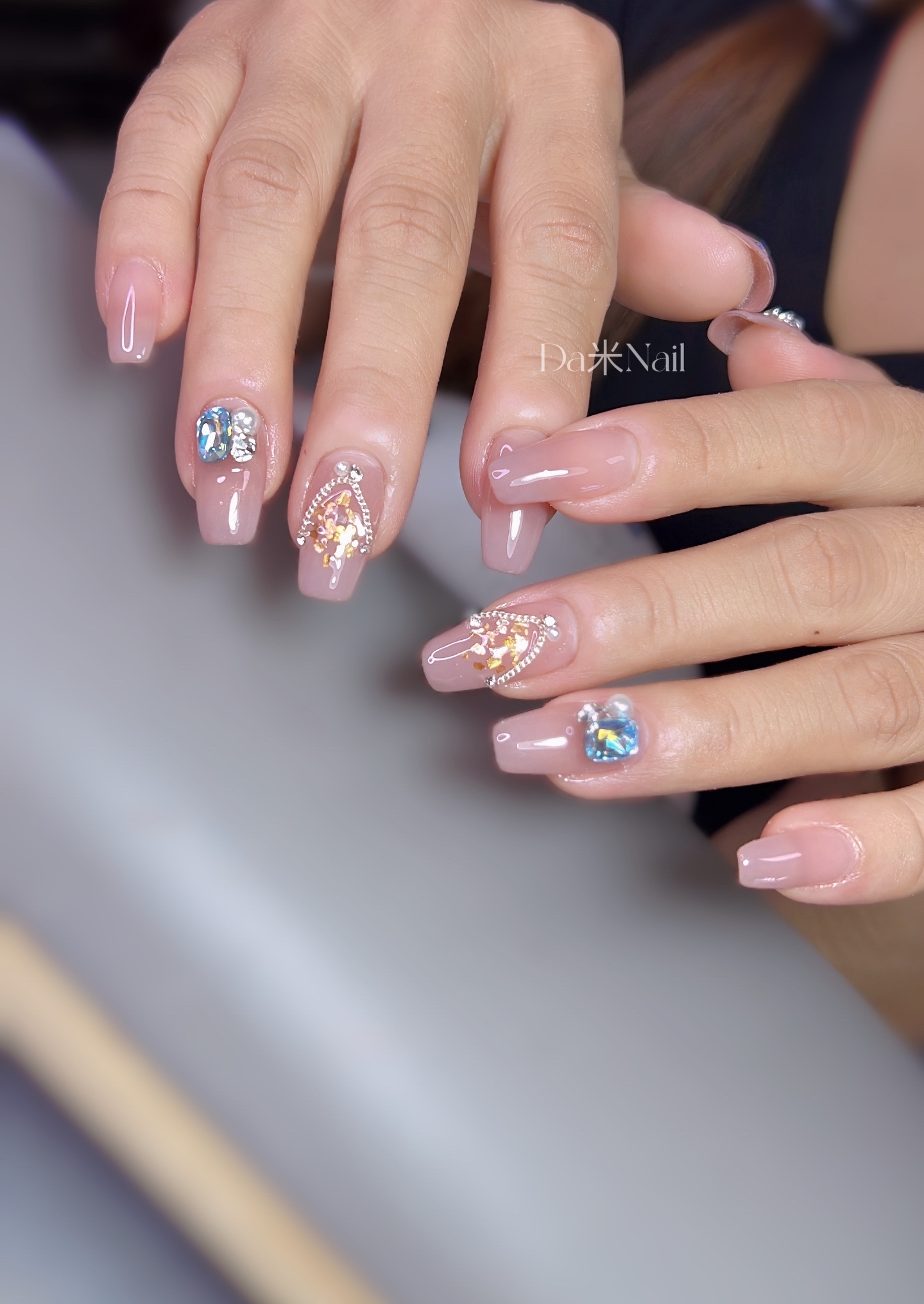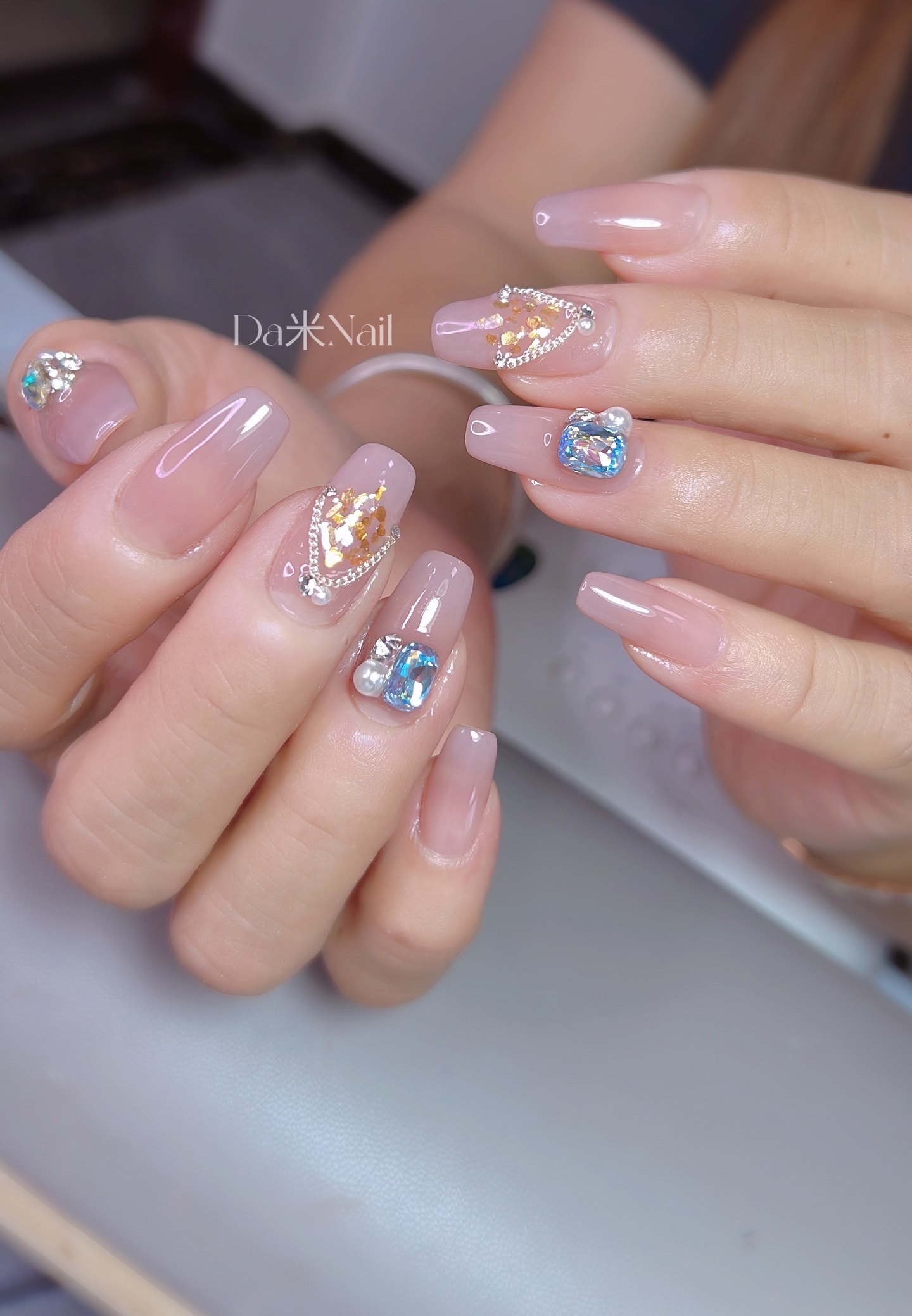 今日份美甲💅🏻透粉色➕皮粉色渐变搭配云母片造型撞色堆钻也-美图社区-美图秀秀