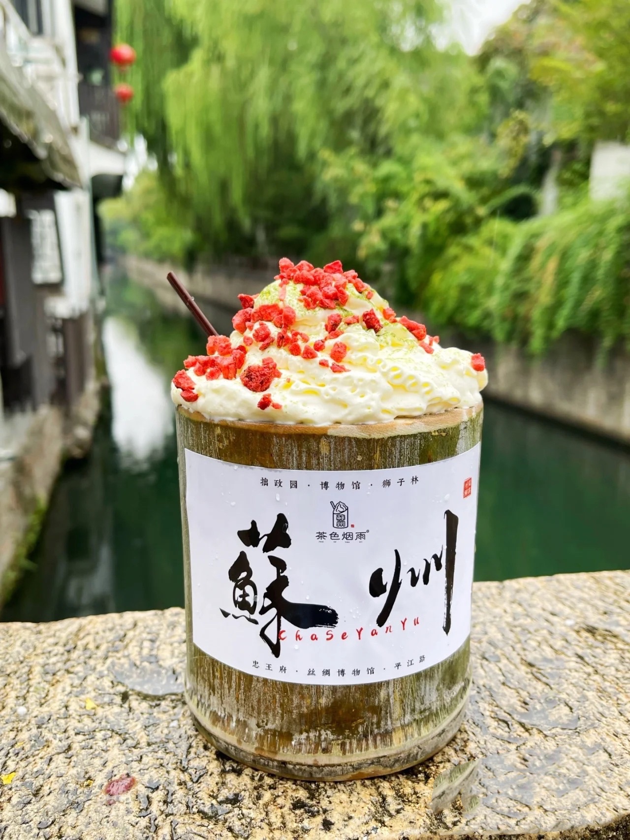 为了图2⃣️我费尽周折来到苏州,打卡了茶色烟雨竹筒茶,真的是太有代表性了,只可惜我十一去的人挤人的感觉,