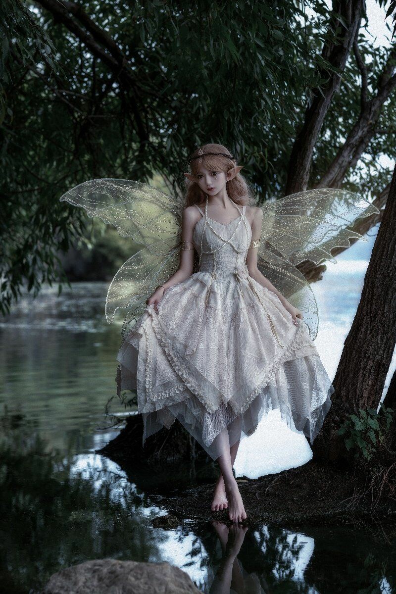 守护山神的少女这条小裙子也太温柔了吧,新出的模特图,像是山里的精灵一样