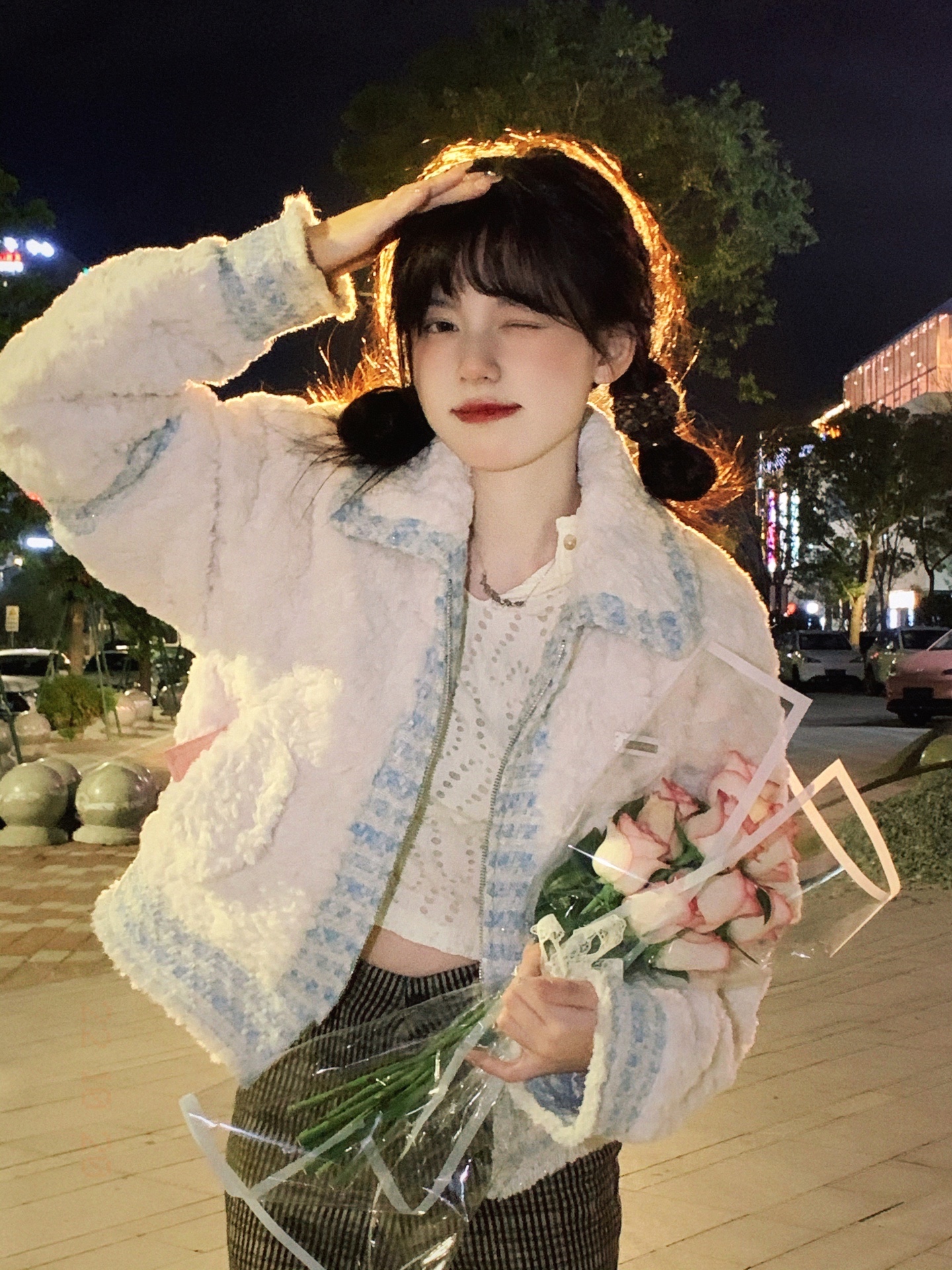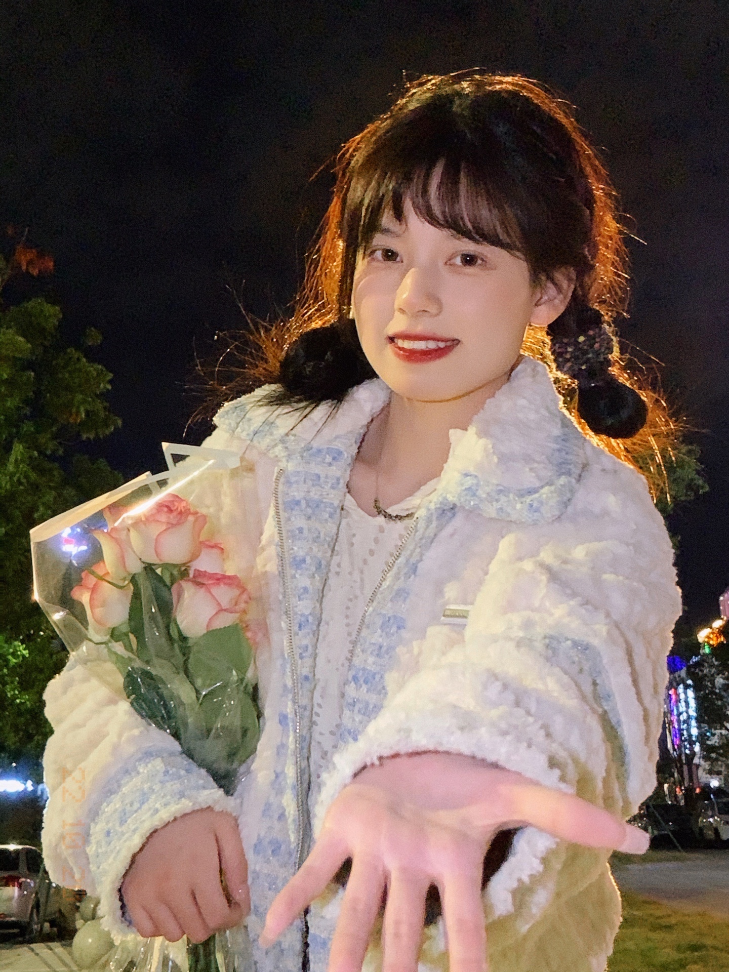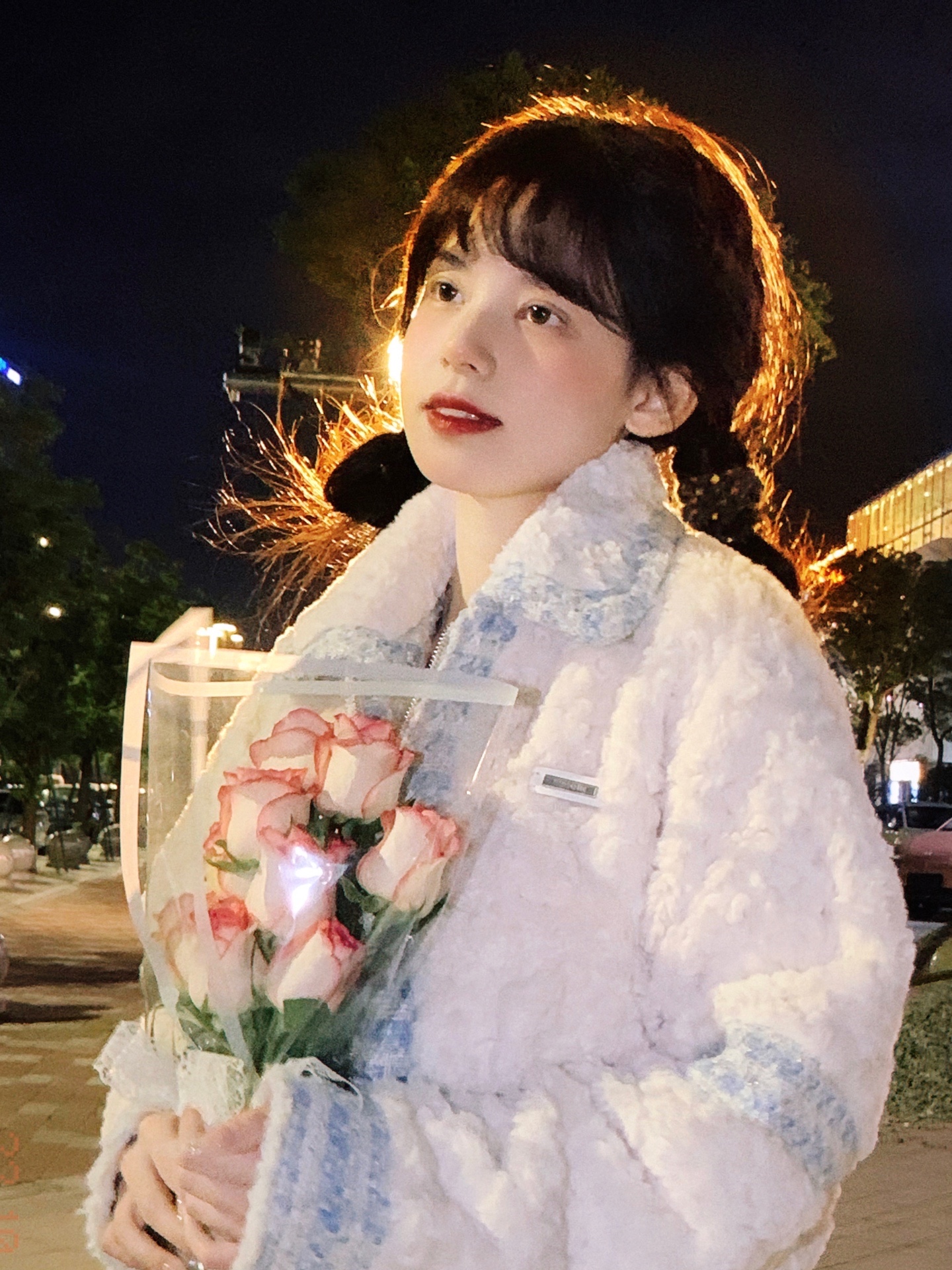 夜晚路灯下拍照很有神明少女的感觉