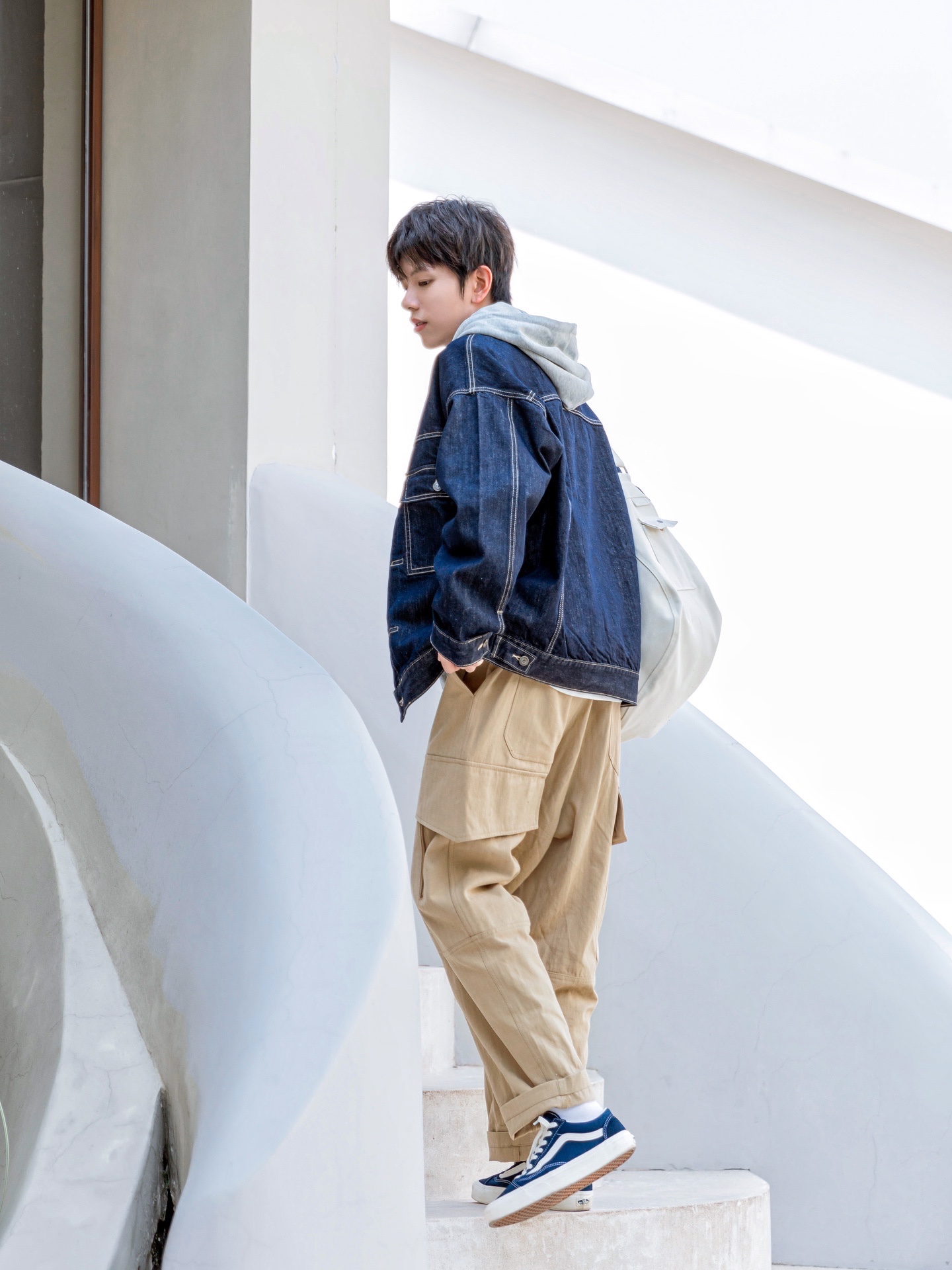 🔹今天这套少年感日系穿搭,真的就是“万能叠穿公式”!牛仔外套,叠穿连帽卫衣,搭配一条卡其色工装裤,再来一双滑板鞋,简简单单,层次分明,男朋友这么穿,真的可以看他一整天!真的好适合男生秋季穿搭!满满的少年感穿搭!