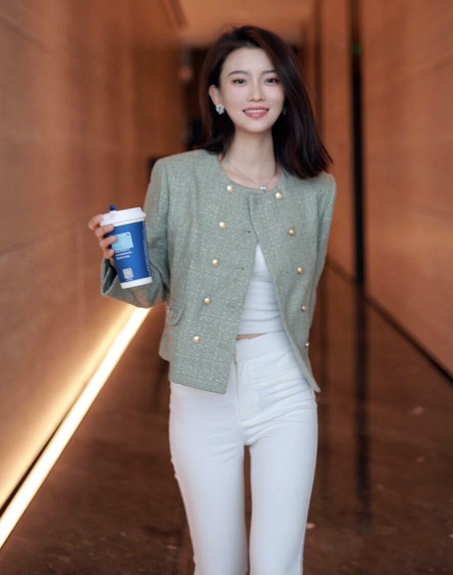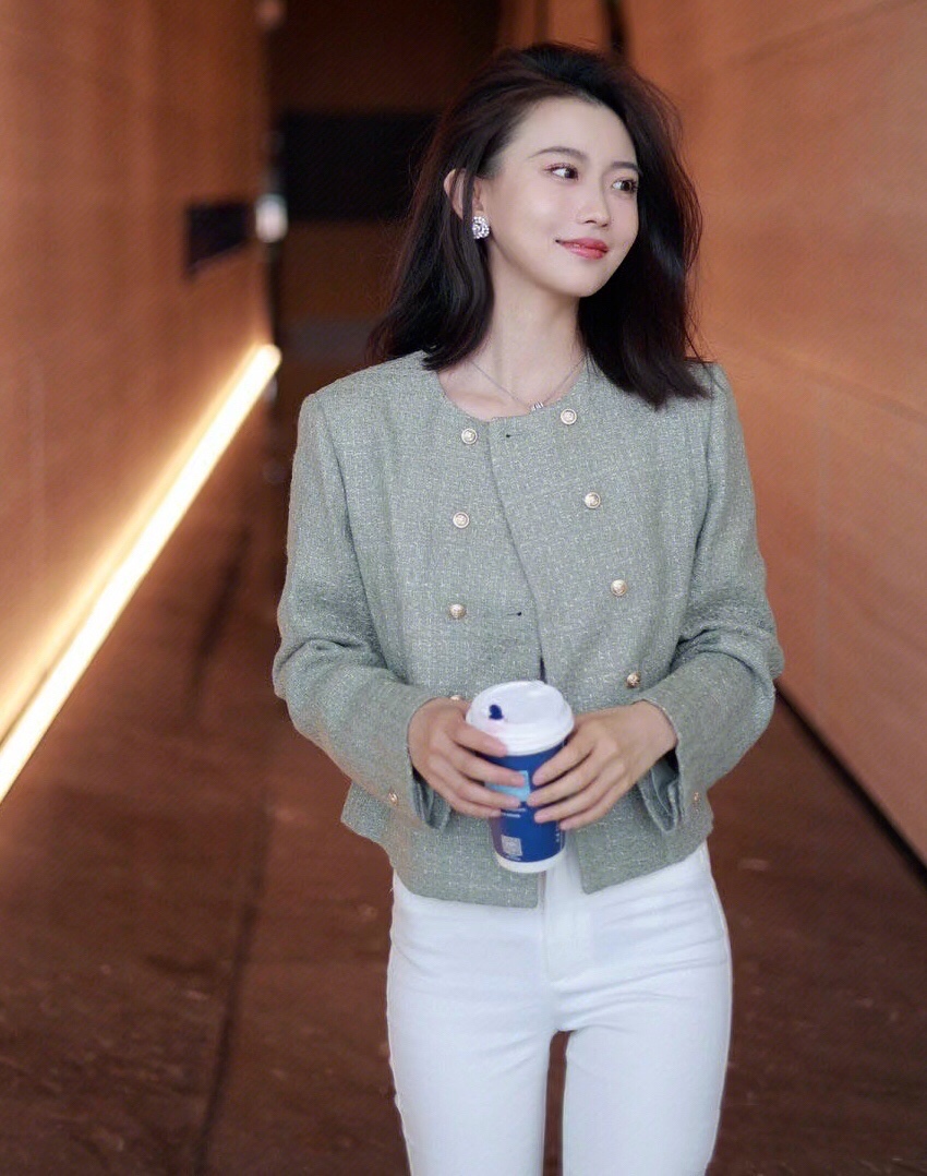 这身温柔舒适的小香风短外套,搭配减龄时髦的白色牛仔裤穿搭,简单时尚又显气质。
