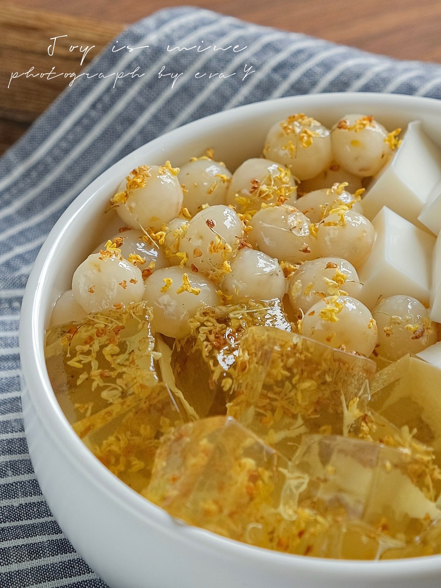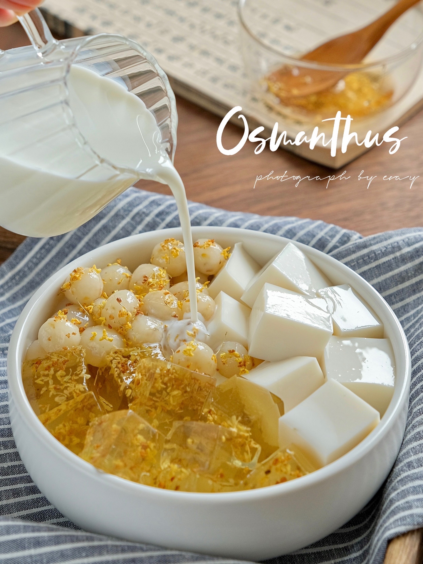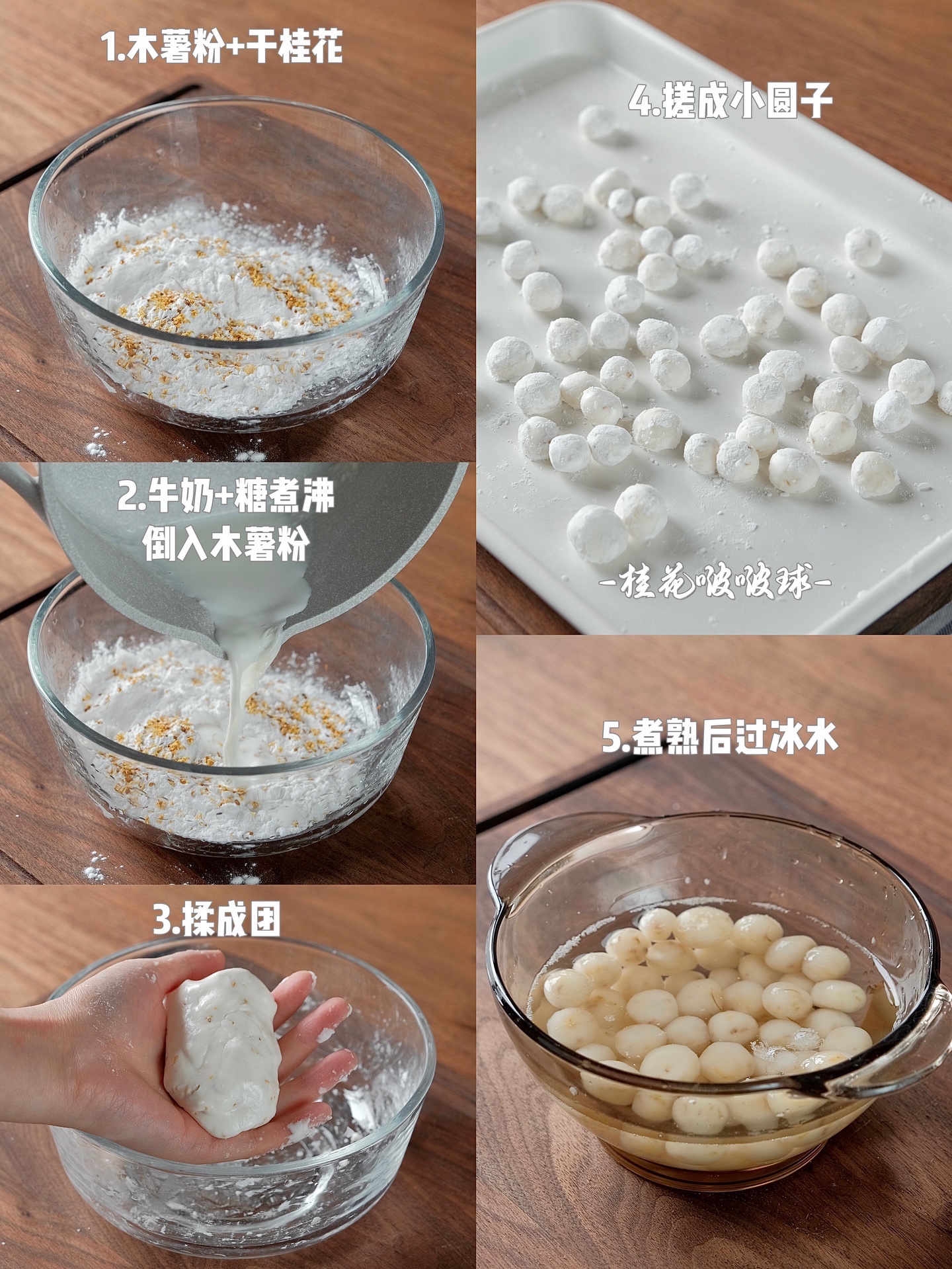 木薯粉50g、牛奶45g、糖10g、干桂花适量