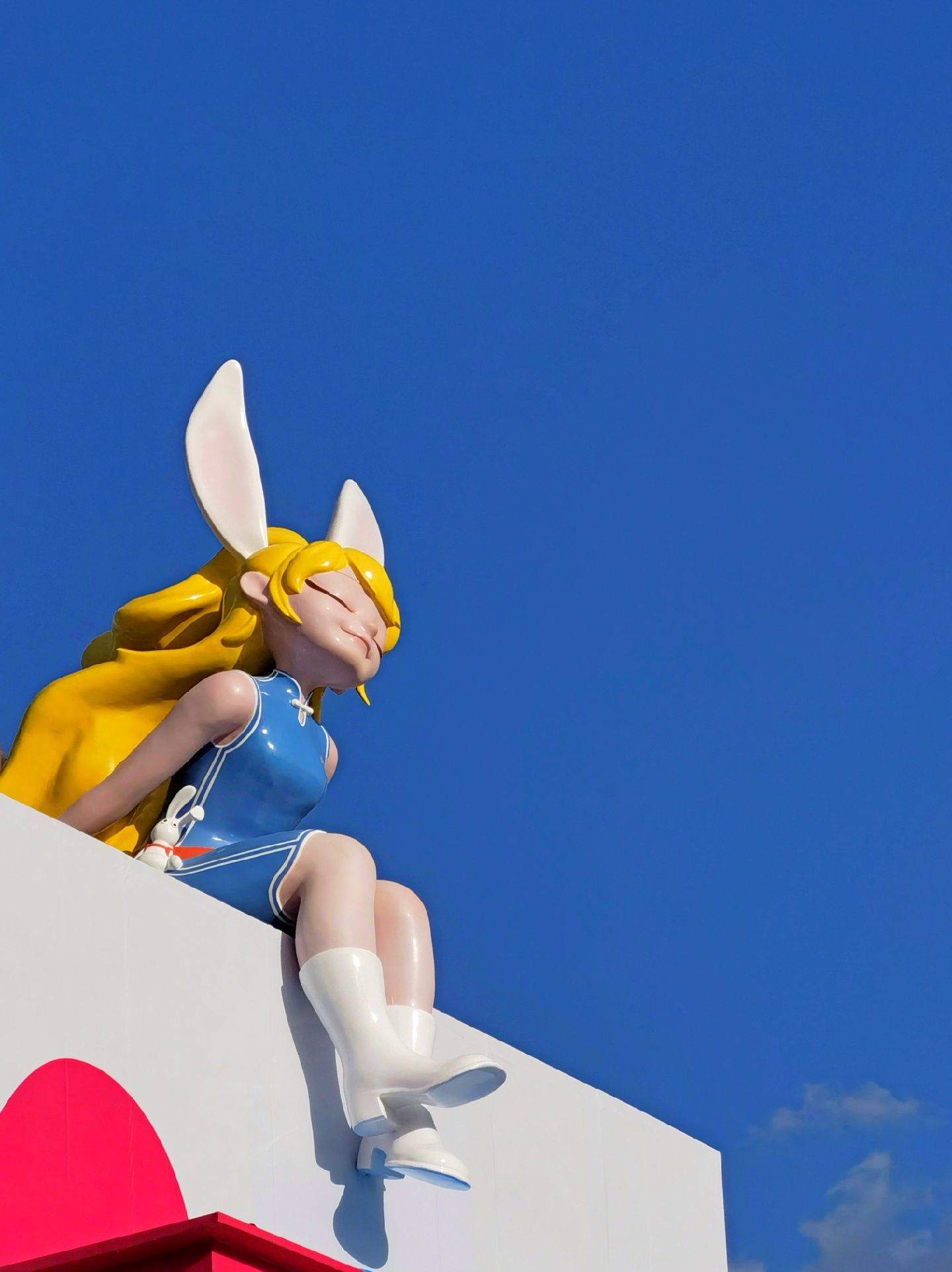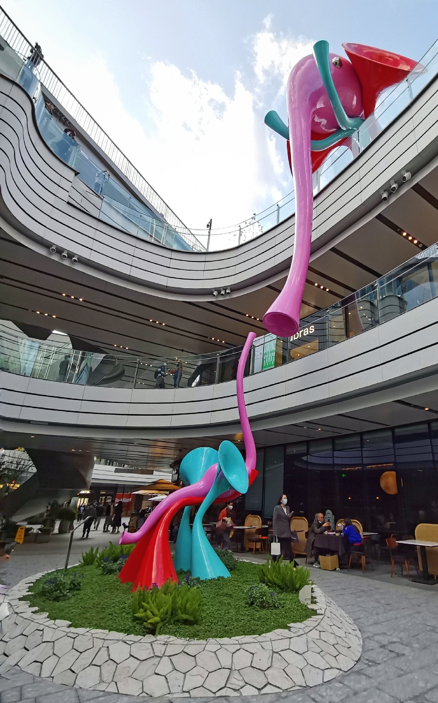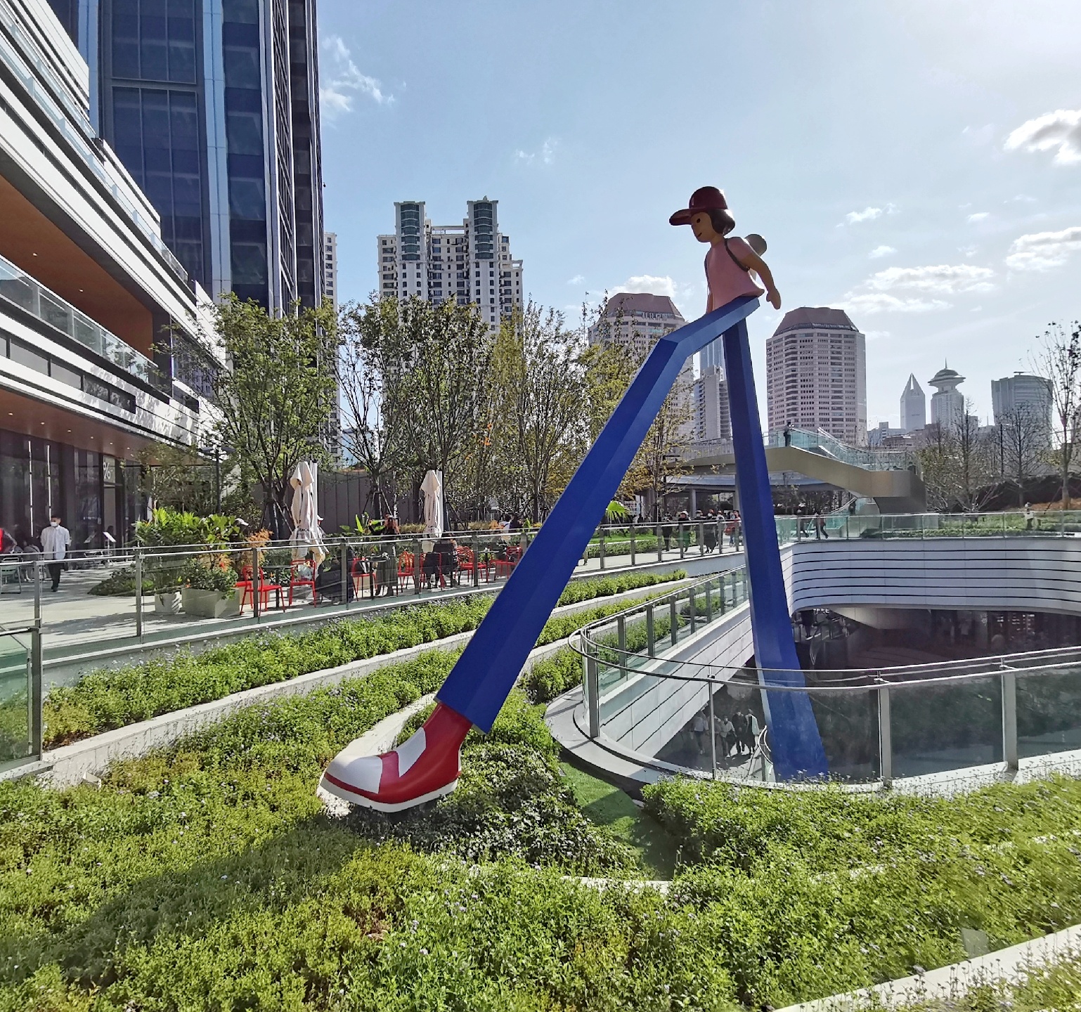 上海苏河湾万象天地分东里和西里,新颖的半露天设计,空中花园种满花花草草,视野开阔。最出片是户外三个卡通雕塑作品,肩背小书包迈着六亲不认步伐的长腿妹子,仰望天空的爱丽丝美少女,五彩缤纷的亲子大象,动感十足,可爱美好。好的设计真的可以让城市更添彩!