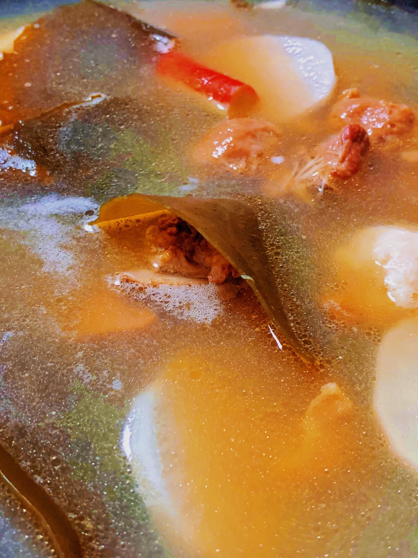 🤗🤗🤗底汤准备:炖料放了猪蹄、排骨做底,海带头、松茸菌除腥增鲜,熬制1.5小时。