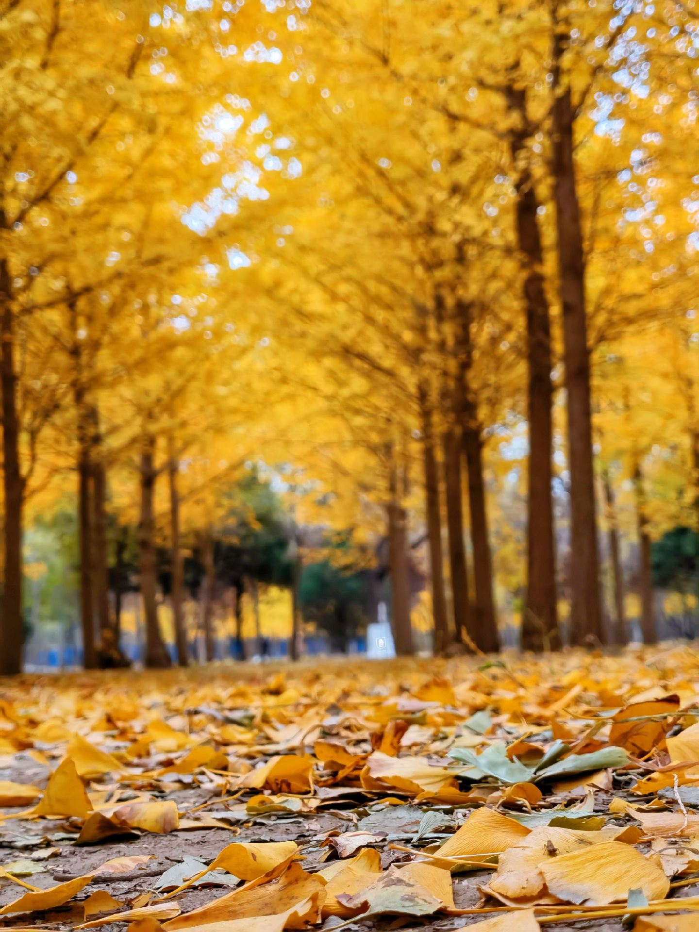 目前银杏林的银杏已经基本上都黄了,少数几颗有一点绿!