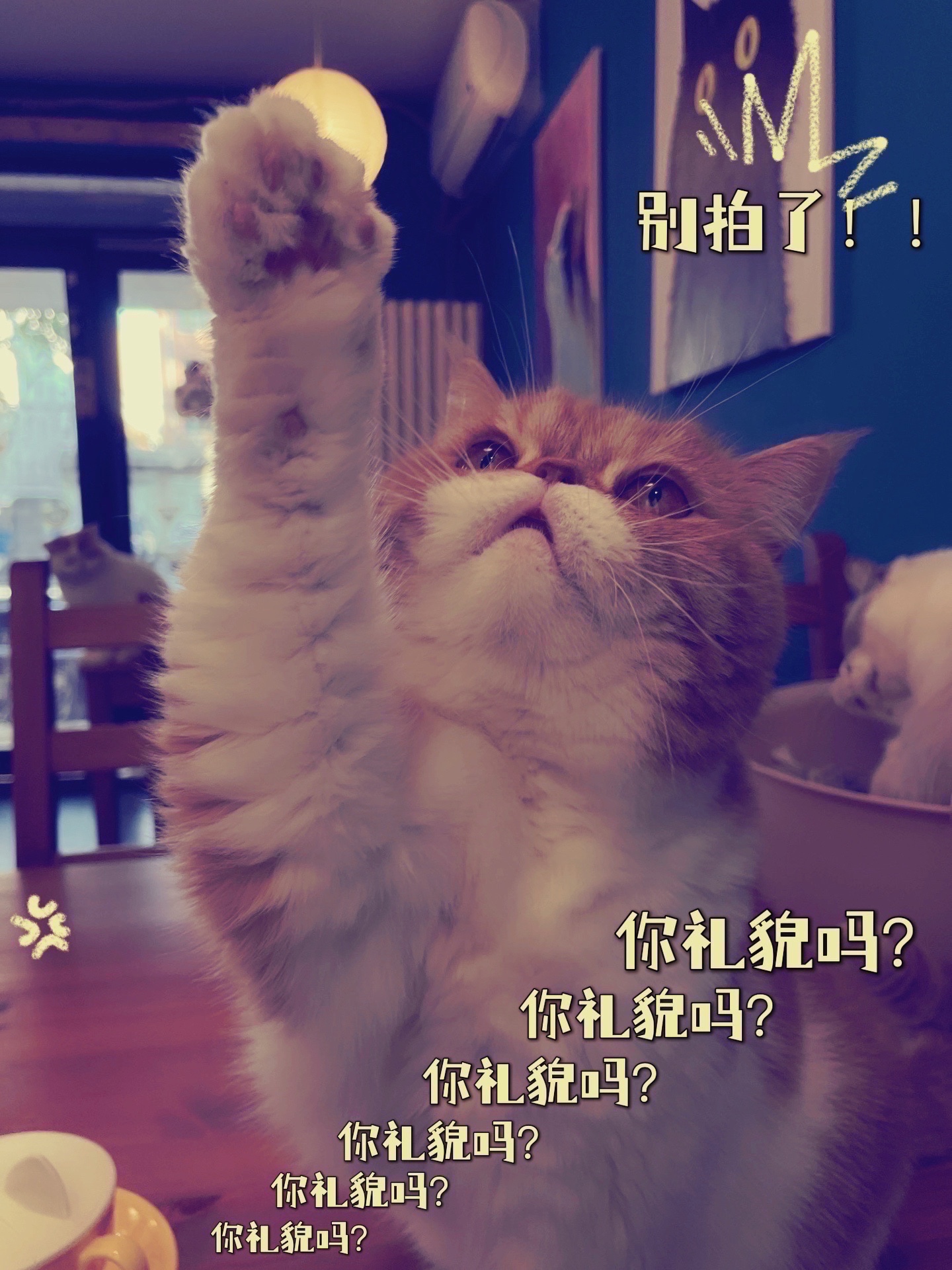 拍出猫的各种神态照片,然后倒入美图秀秀的美化图片