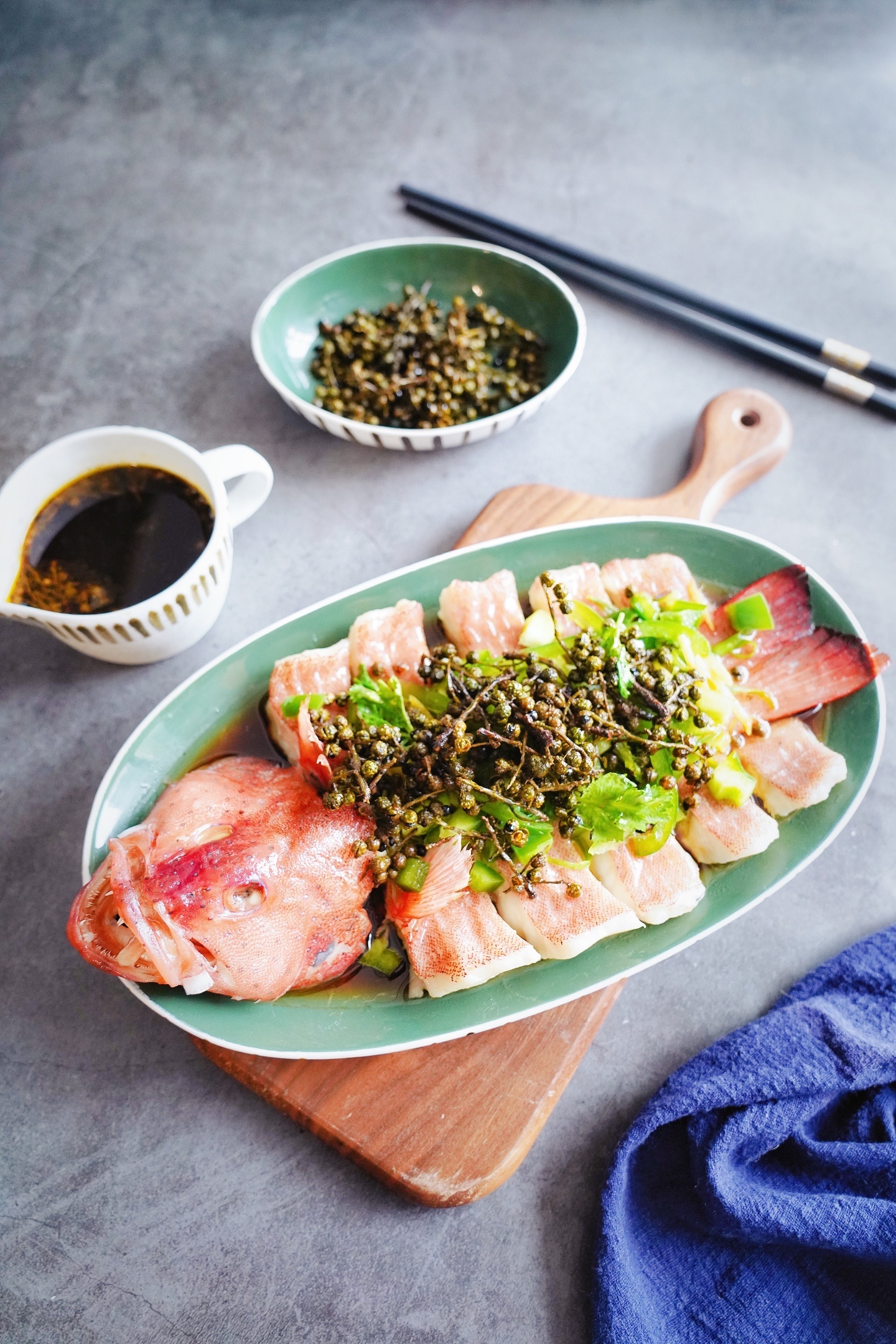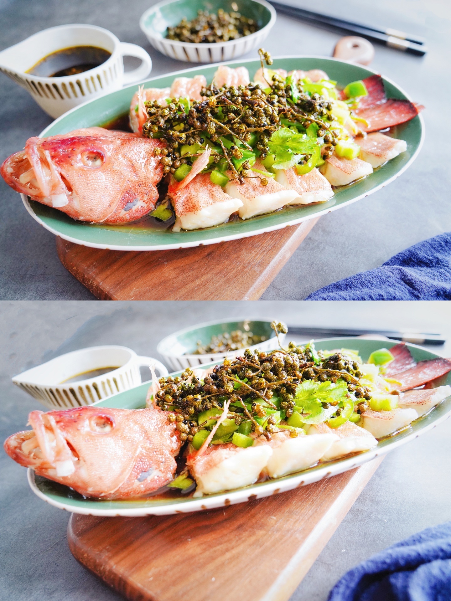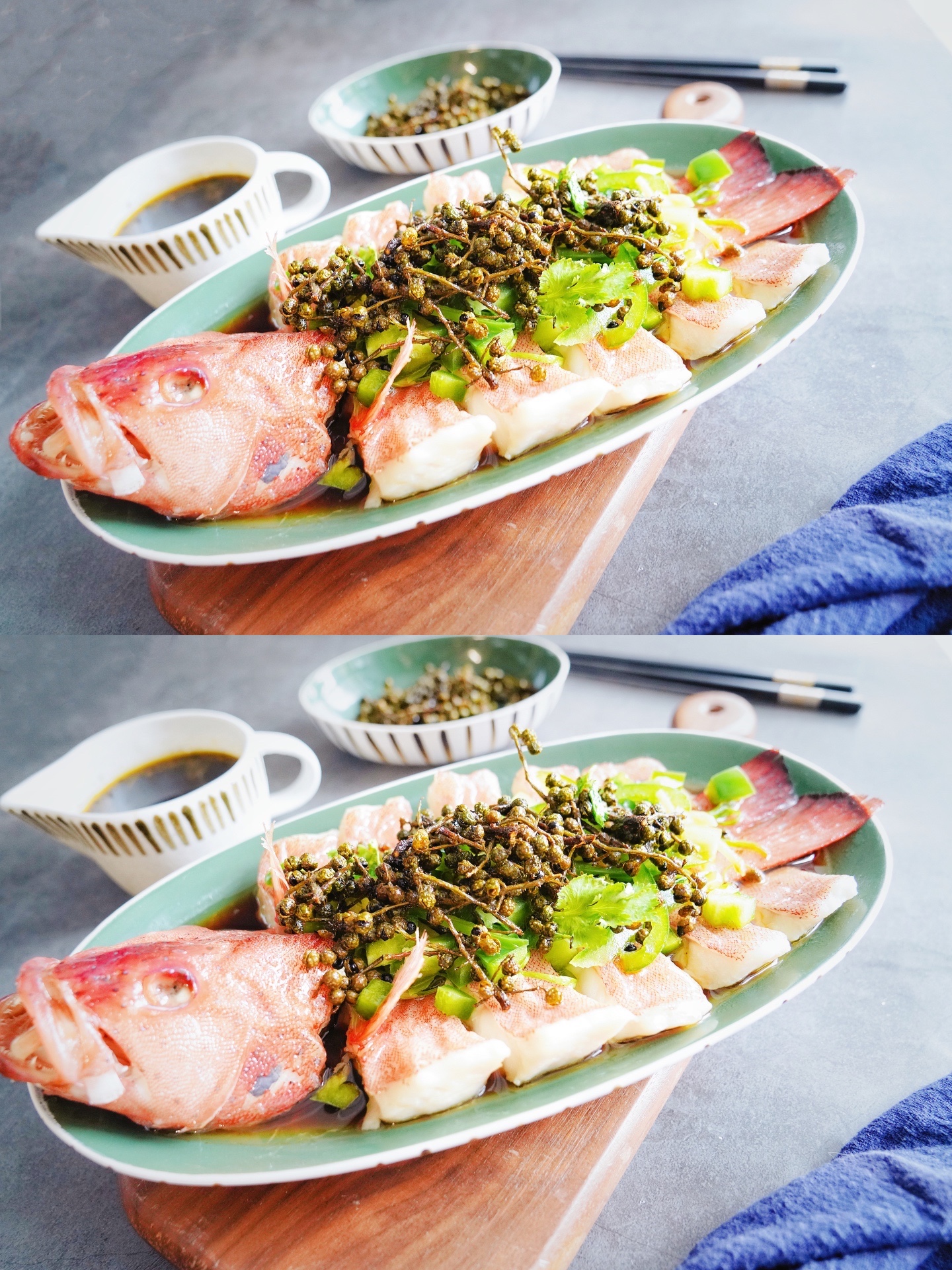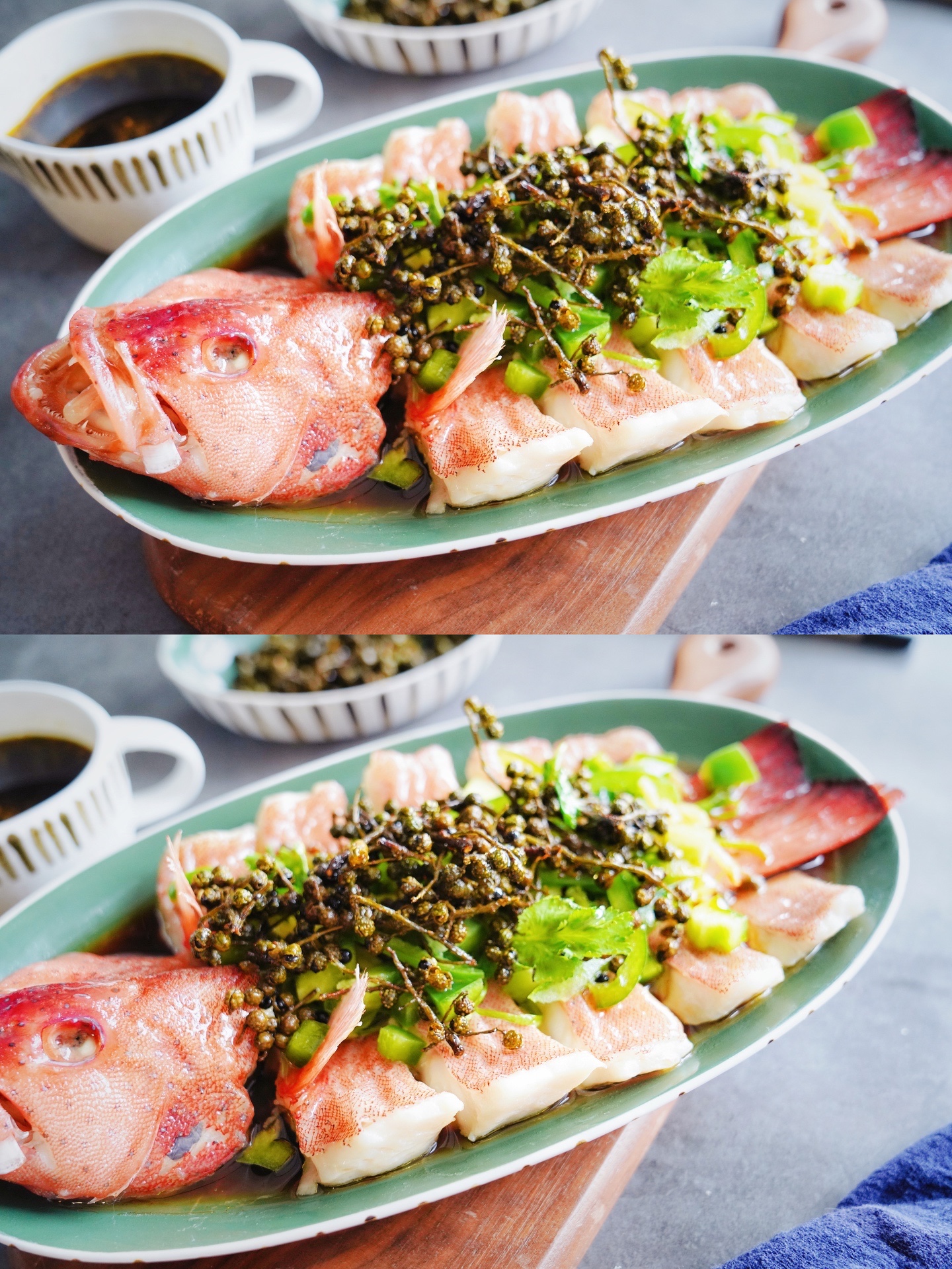 在这次活动中,有幸认识了东星斑鱼。老虎斑、龙胆石斑鱼,就没有见过东星斑,这也是我人生第一次吃东星斑。正好冰箱冷藏室里有青花椒,材料有了就差东星斑了,于是我去某宝上买了一条,一条正好是一斤装的,现在遇上双十一活动,优惠下来一条还要158元,有点小贵呢!