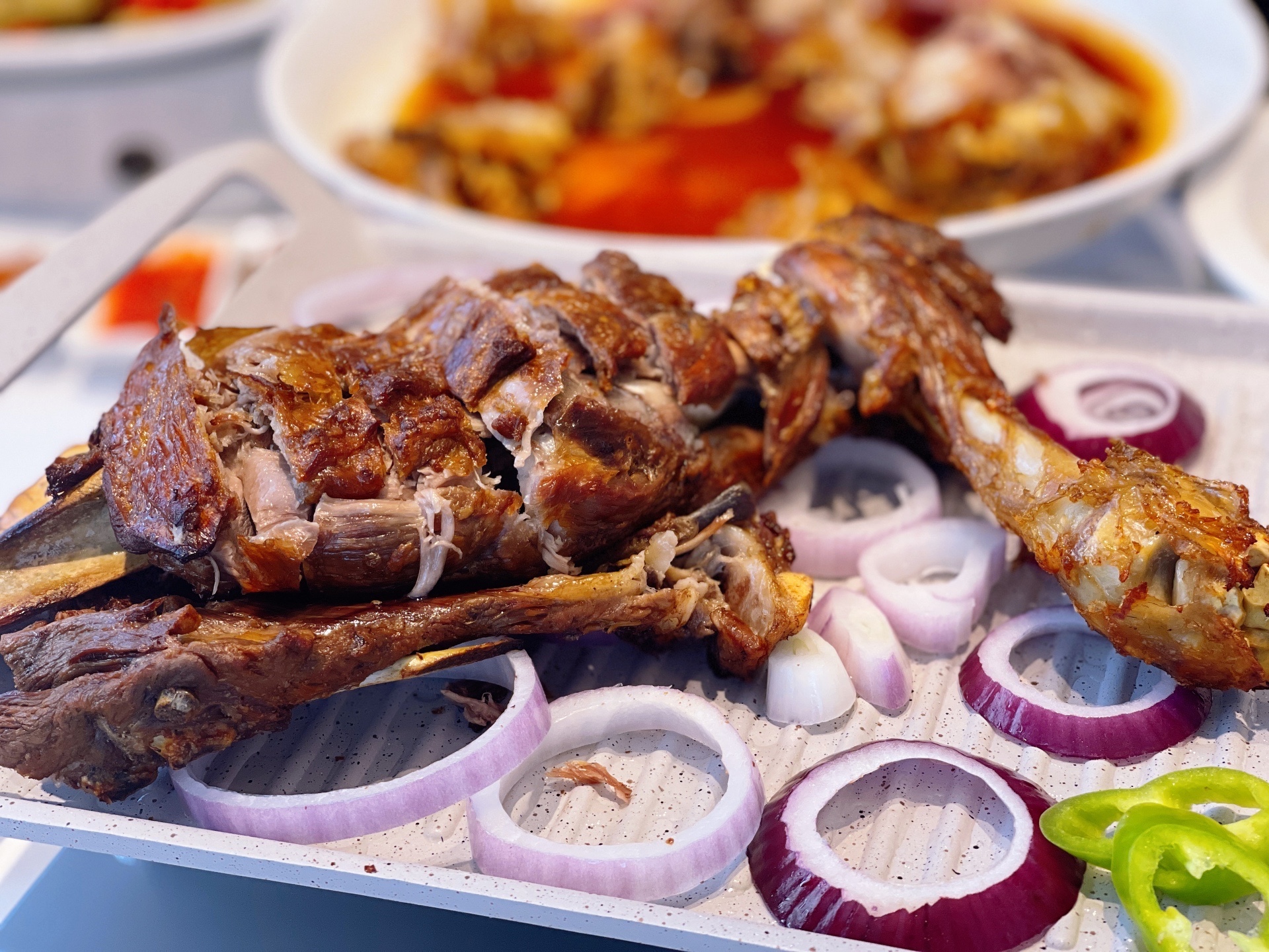 到西贝还得好好吃肉🥩羊肉选用内蒙古锡林郭勒草原自然放养 6-8个月的羔羊🐑牛肉甄选精壮的内蒙古西门塔尔牛 特植农田谷物饲料喂养 烤羊腿和牛肋排都能过足肉瘾😋