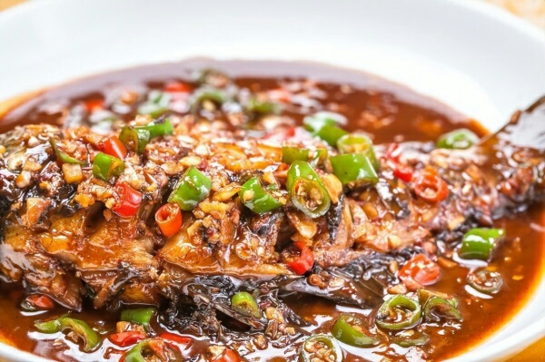 5、把煎好的鱼放入汤中,大火煮开转中小火焖煮20分钟。烧熟后将鱼取出盛盘,锅内剩余汤汁加水淀粉水勾芡,淋在鱼身上,撒葱花点缀就可以上桌享用啦。