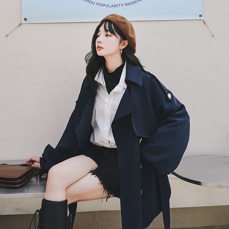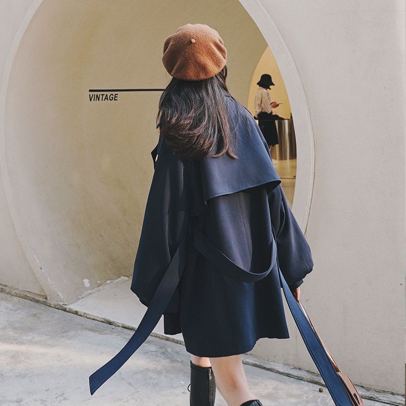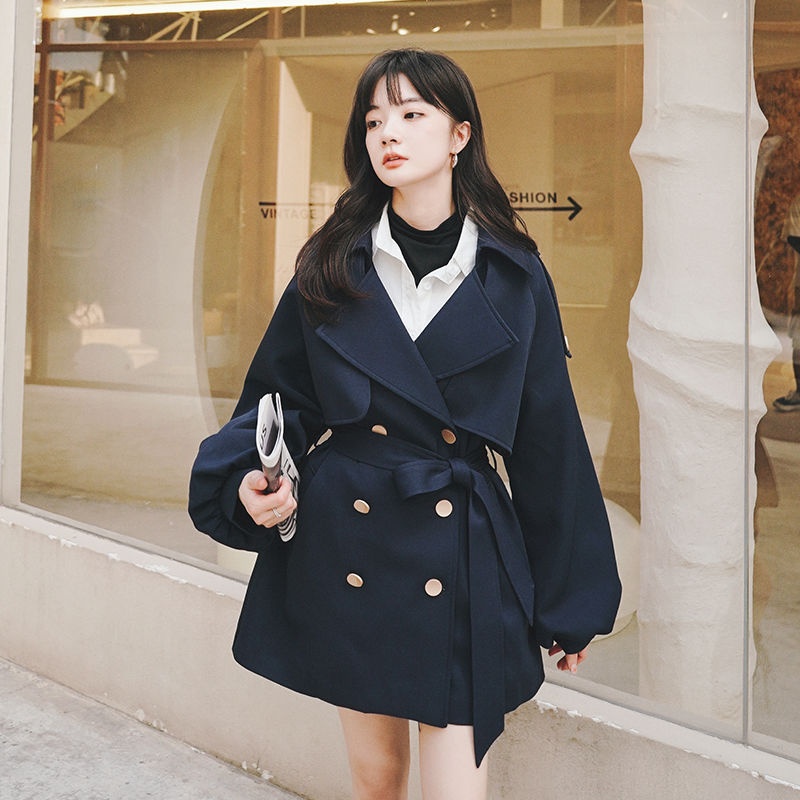 高级感斗篷式版型淑女短款风衣外套,极强的造型感和穿搭感,搭配黑色长靴,上身非常有feel,尤其是小个子女生穿搭!