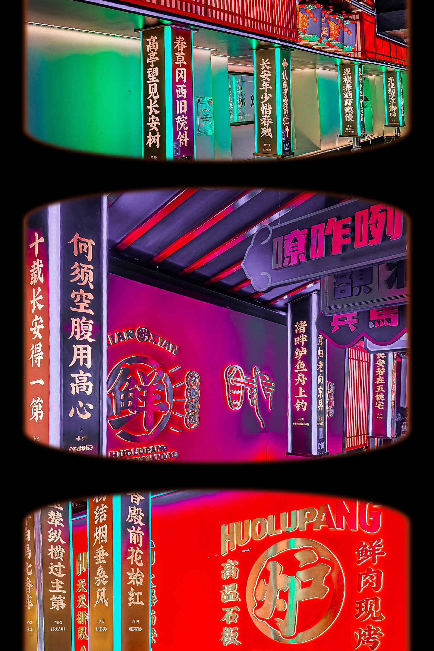 🍀环境: 装修简约特色,壁画、立柱文字接地气,氛围呼吸灯效果很不错,整体布局紧凑,整洁度ok