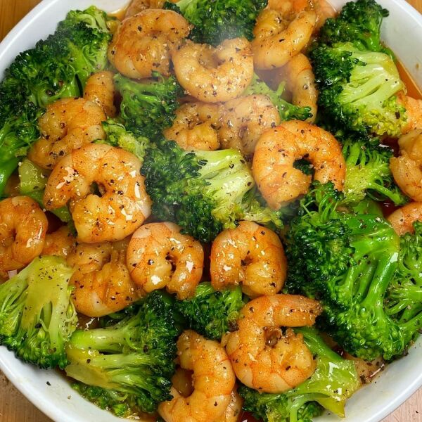 4、锅里加入油,油热加入虾仁炒至变色,加入西蓝花翻炒均匀,加入一勺蚝油,少许胡椒粉翻炒片刻,美味即成,全家都爱吃。
